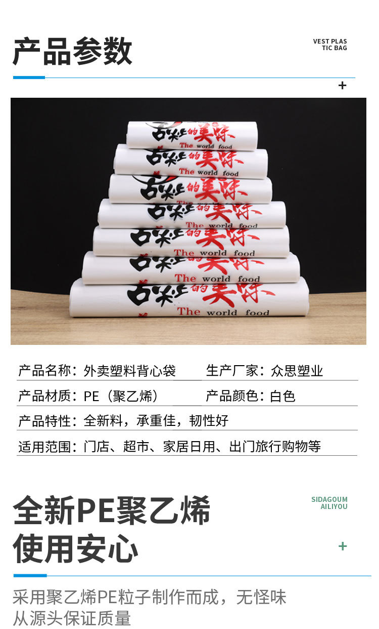 테이크 아웃 포장 가방 도매 두꺼운 혀 맛있는 일회용 비닐 봉투 휴대용 케이터링 과일 바베큐 조끼 가방