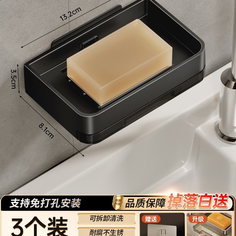 비누 상자 벽걸이 형 화장실 펀치 프리 더블 레이어 비누 배수 상자 가정용 욕실 벽 비누 보관 랙스토어 가기