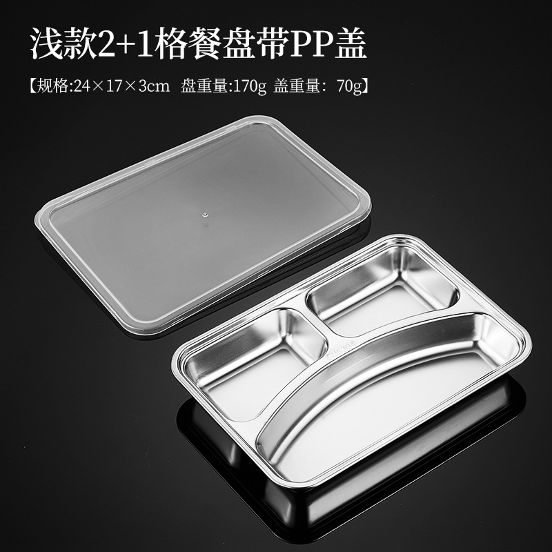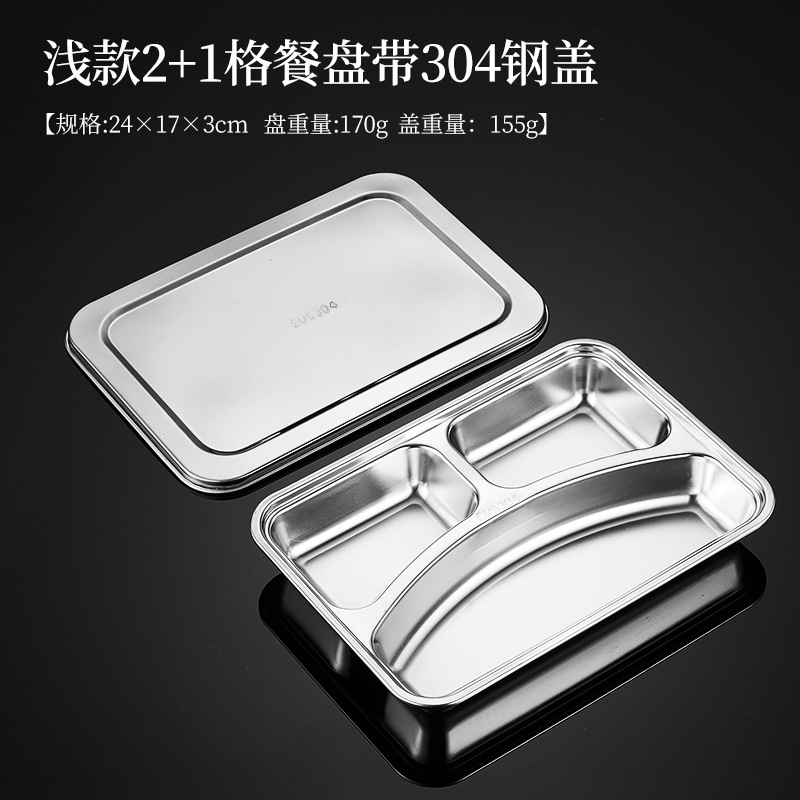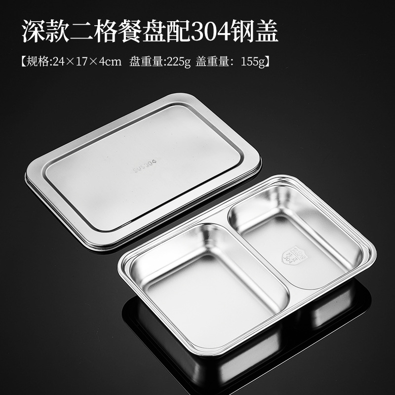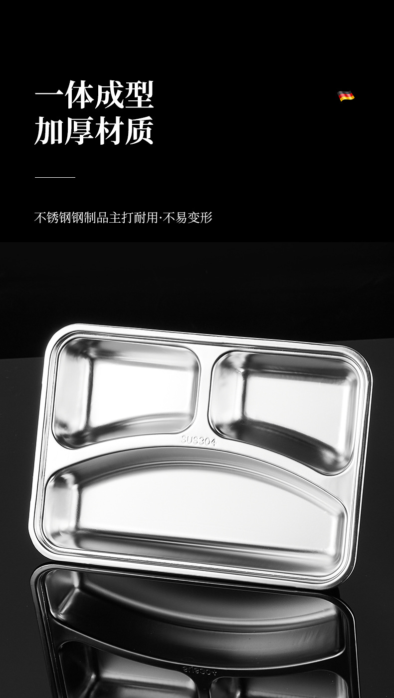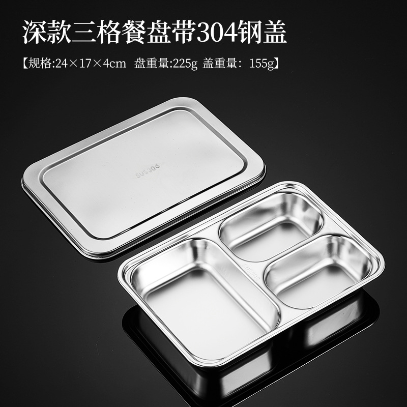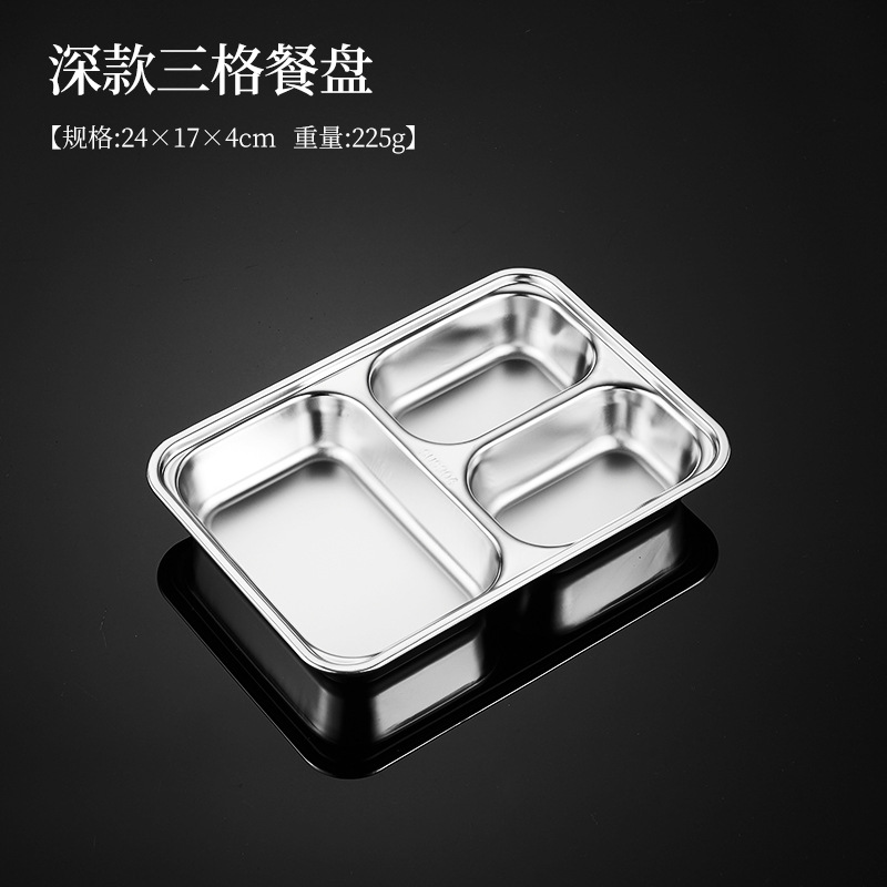 304 스테인레스 스틸 어린이 디너 플레이트 유치원 학생 매점 분할 식품 접시 상업용 광장 3 칸 도시락스토어 가기