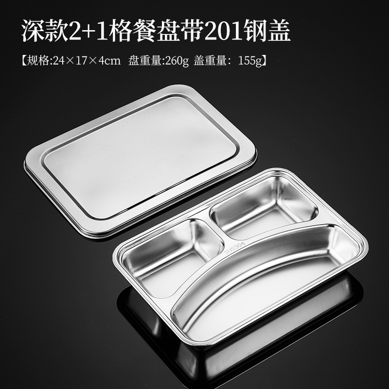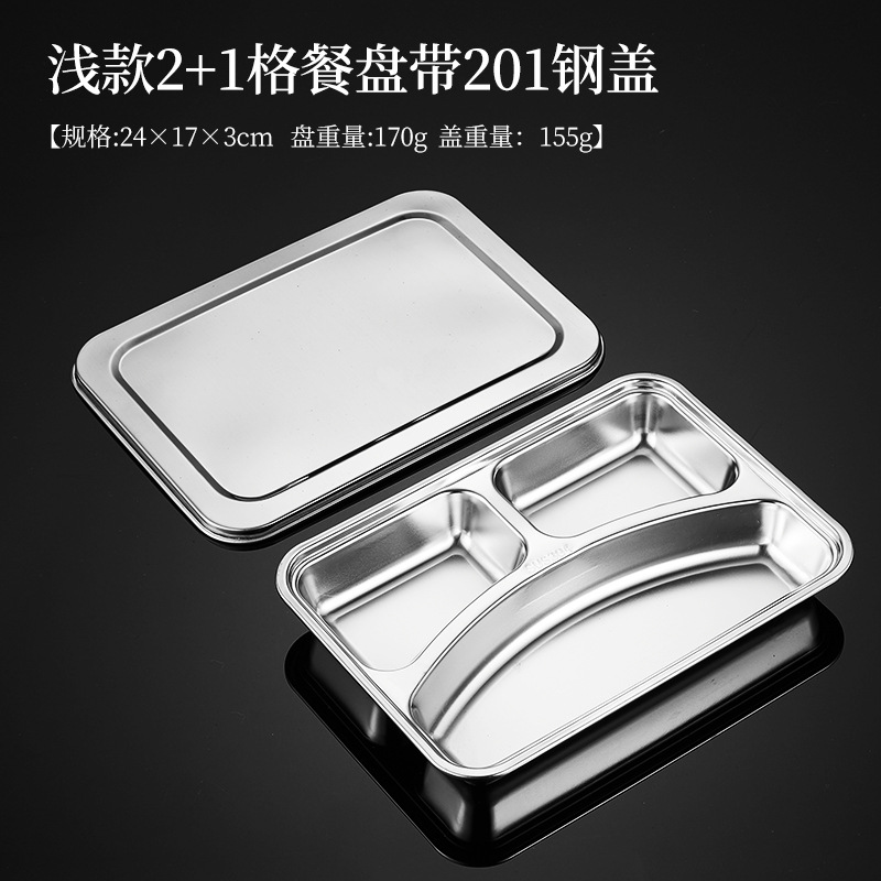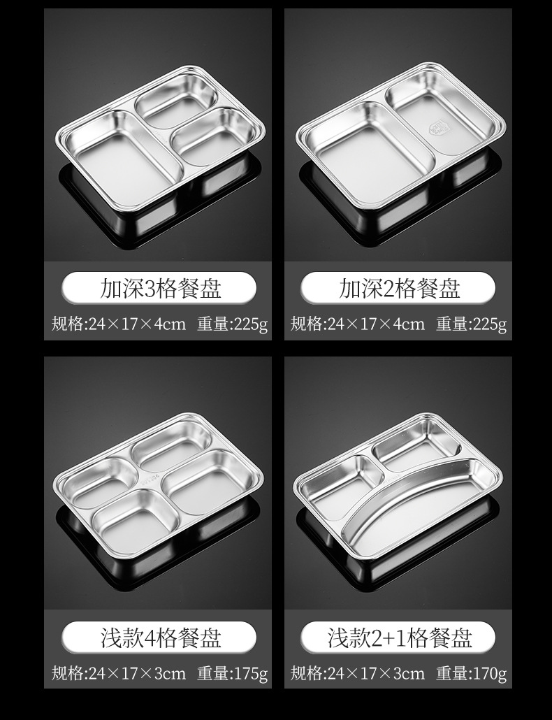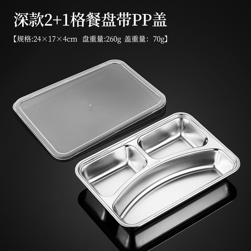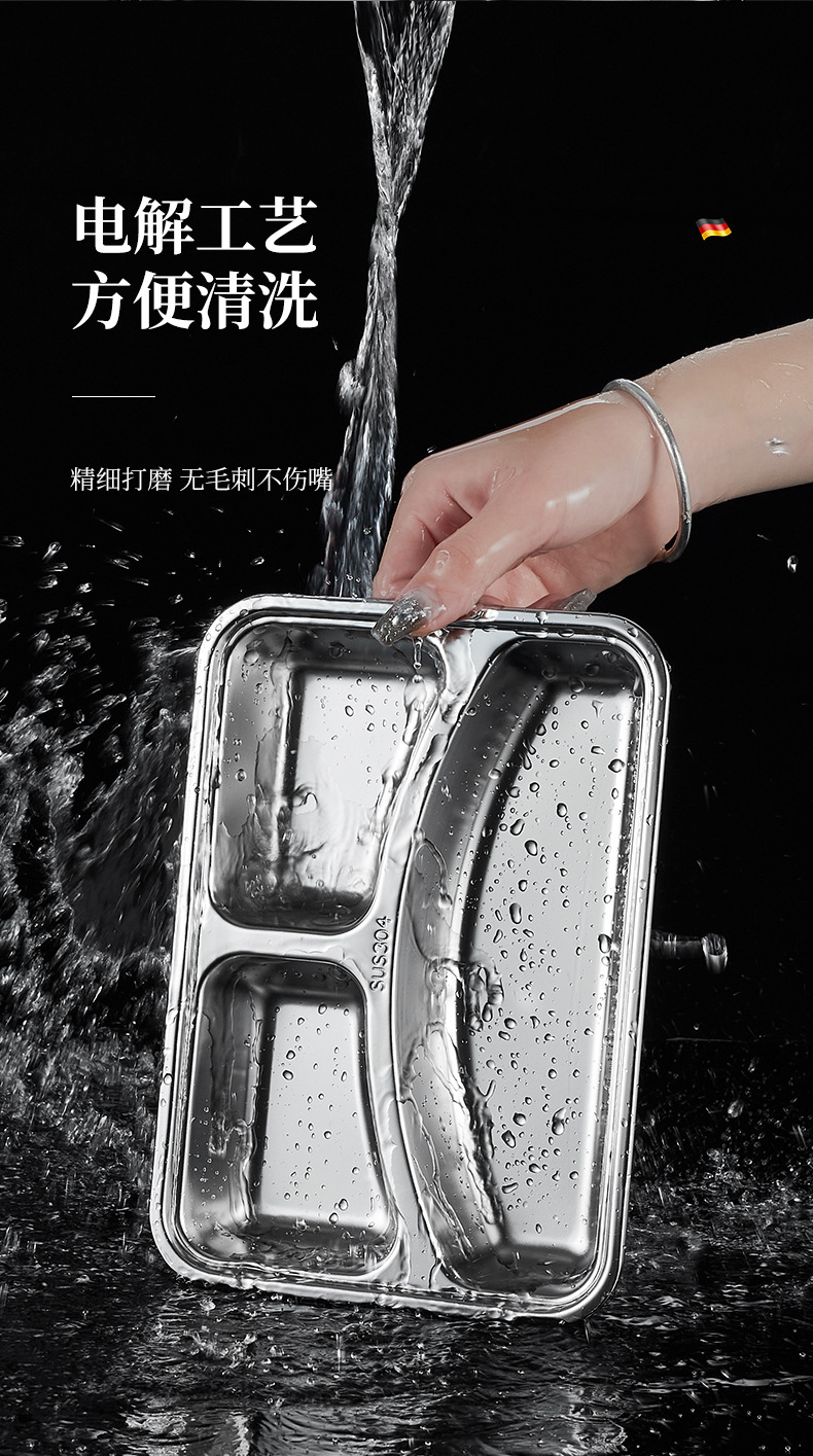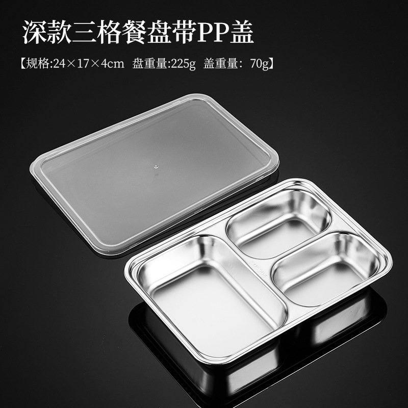 304 스테인레스 스틸 어린이 디너 플레이트 유치원 학생 매점 분할 식품 접시 상업용 광장 3 칸 도시락스토어 가기