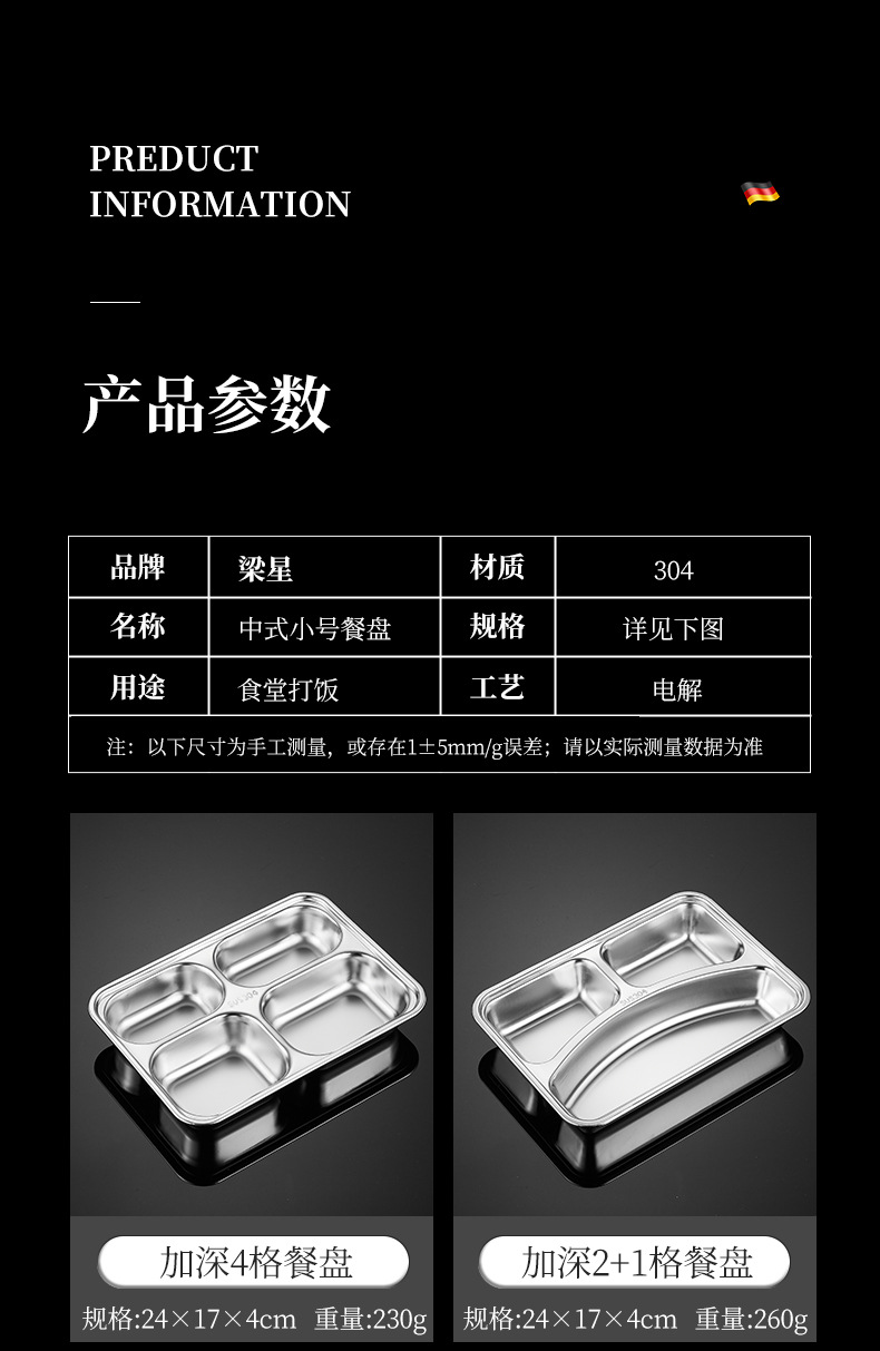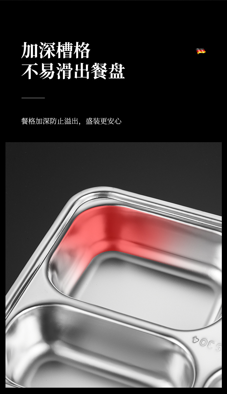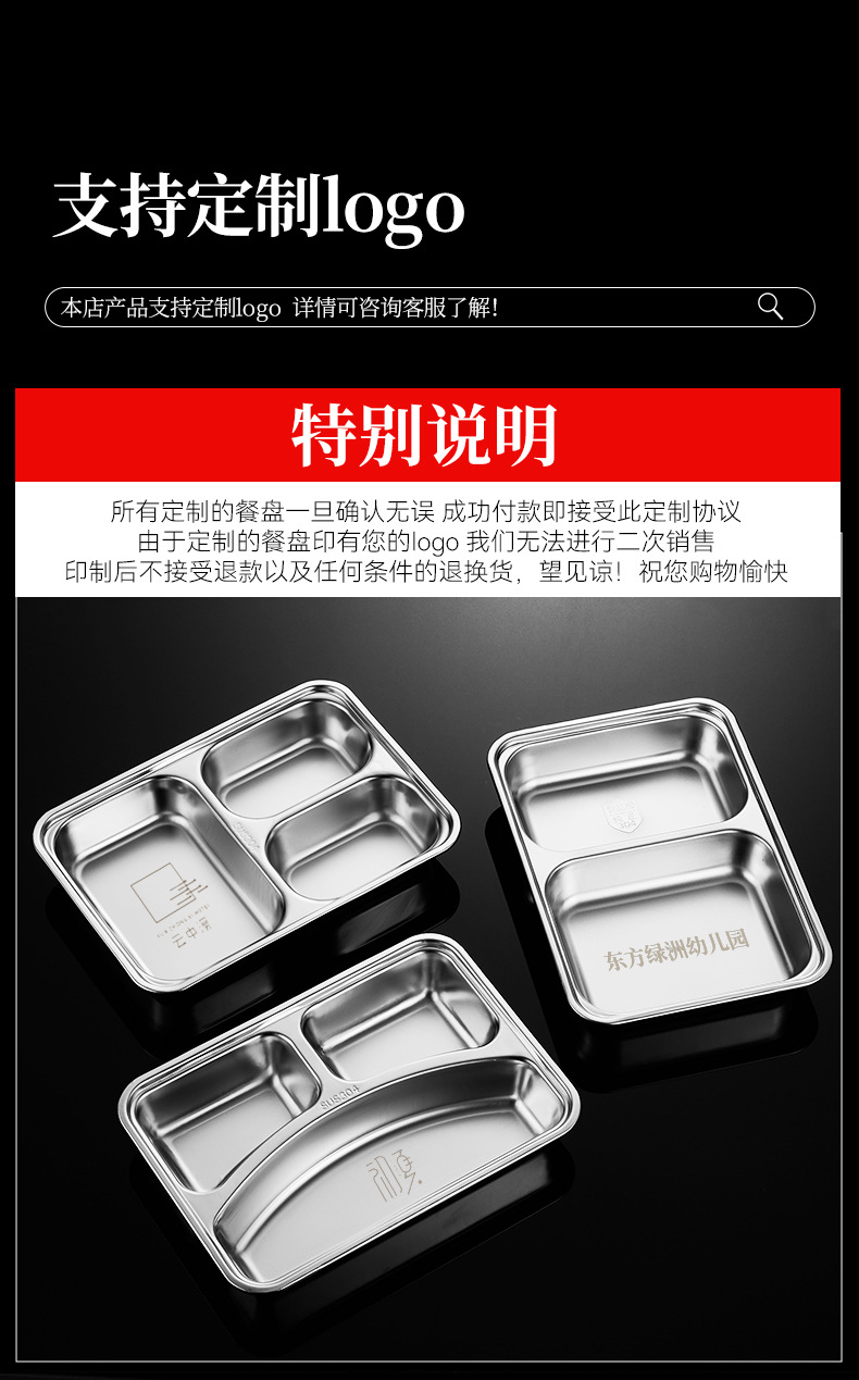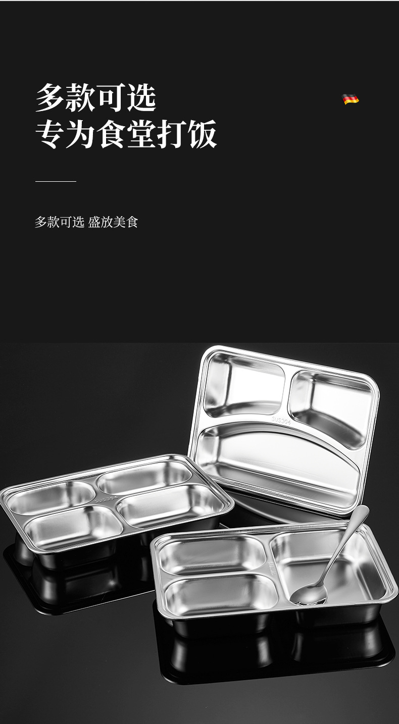 304 스테인레스 스틸 어린이 디너 플레이트 유치원 학생 매점 분할 식품 접시 상업용 광장 3 칸 도시락스토어 가기