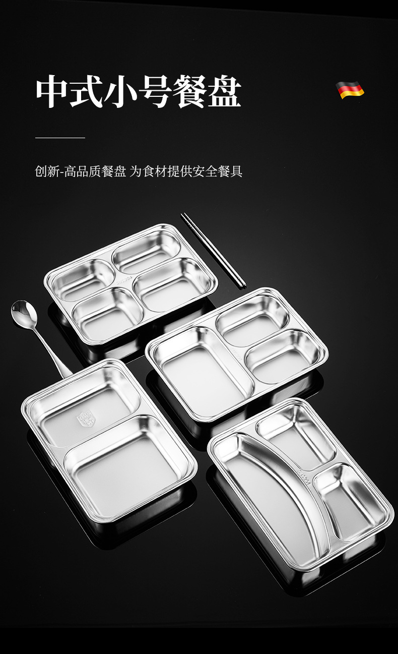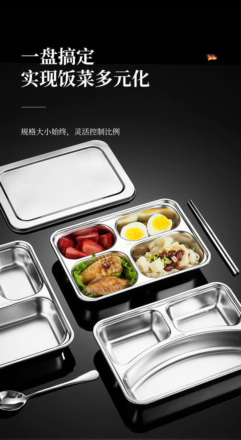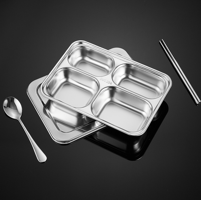304 스테인레스 스틸 어린이 디너 플레이트 유치원 학생 매점 분할 식품 접시 상업용 광장 3 칸 도시락