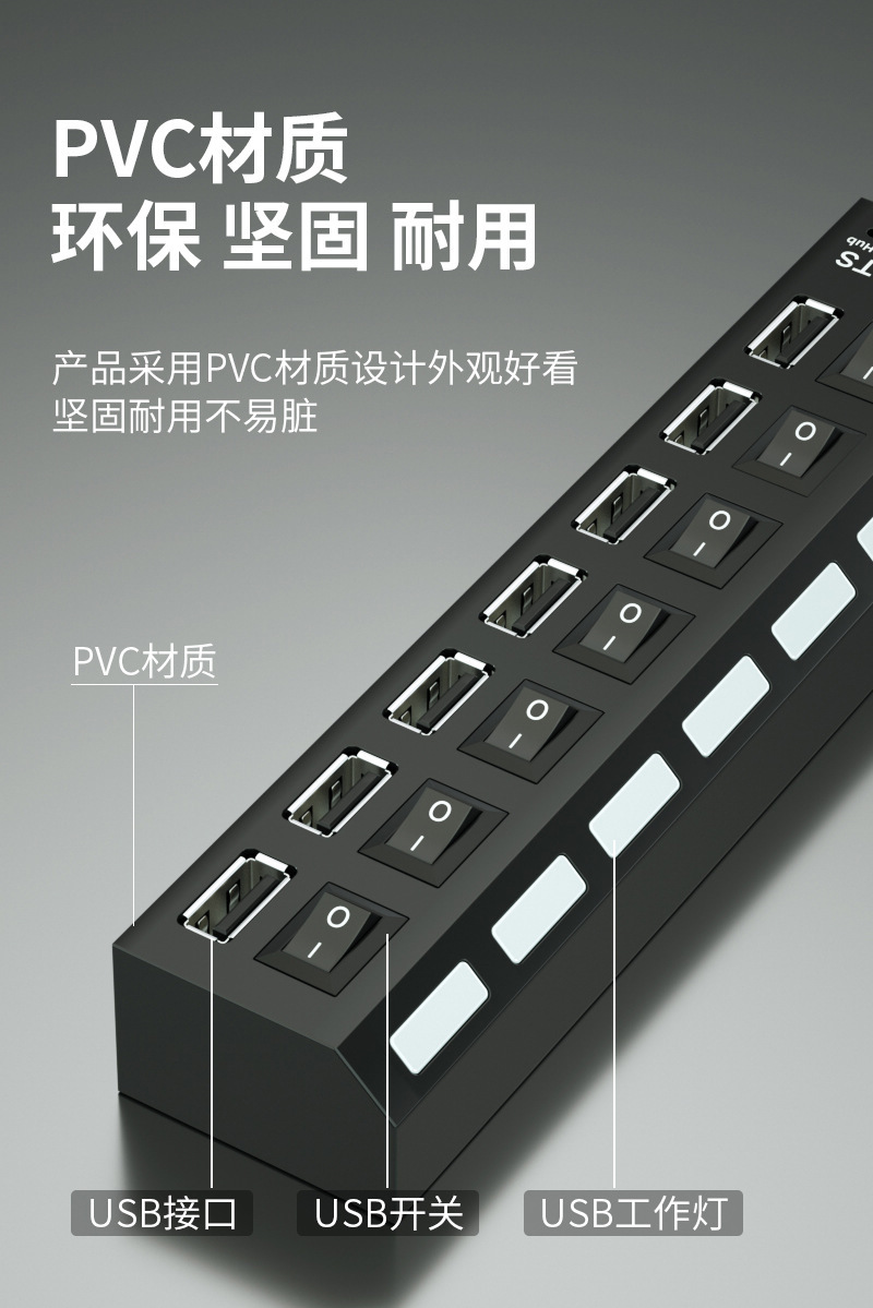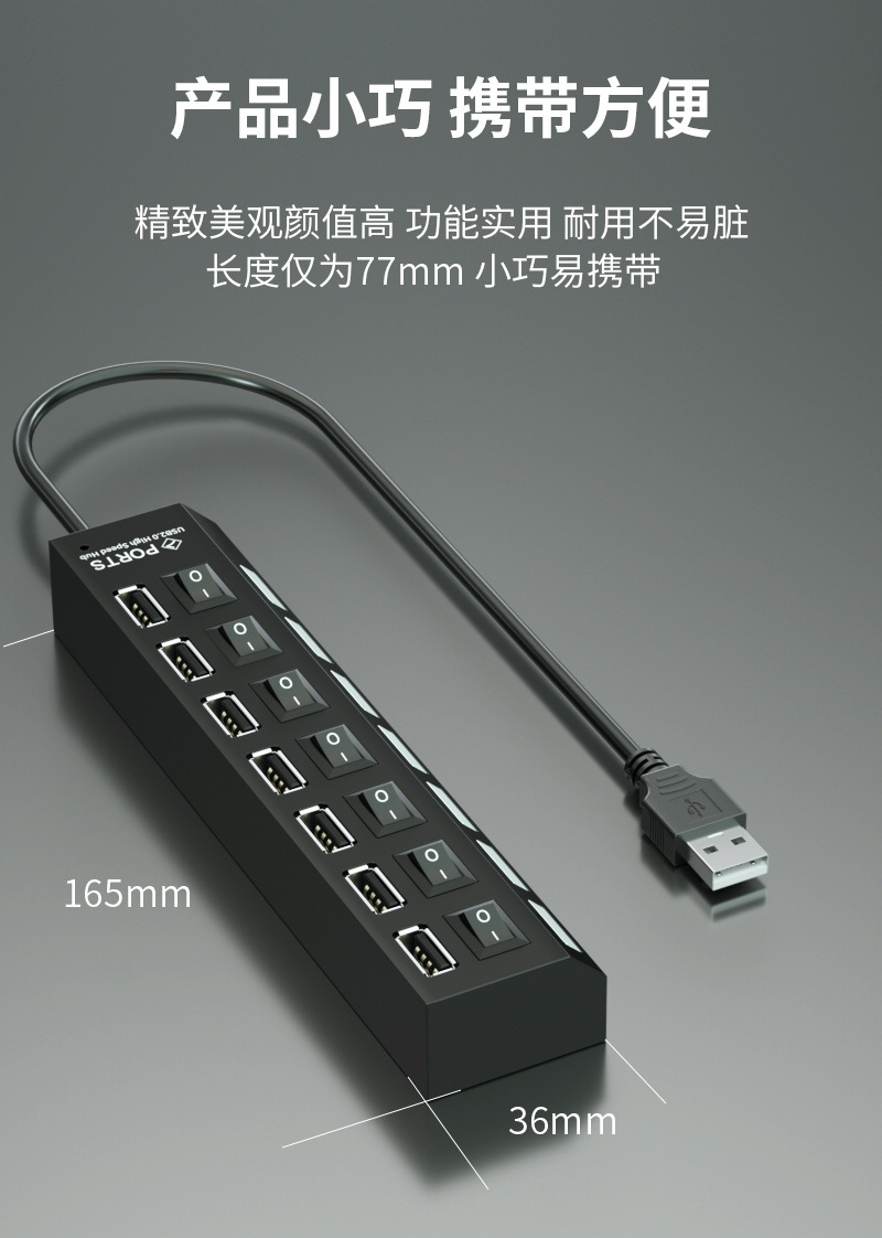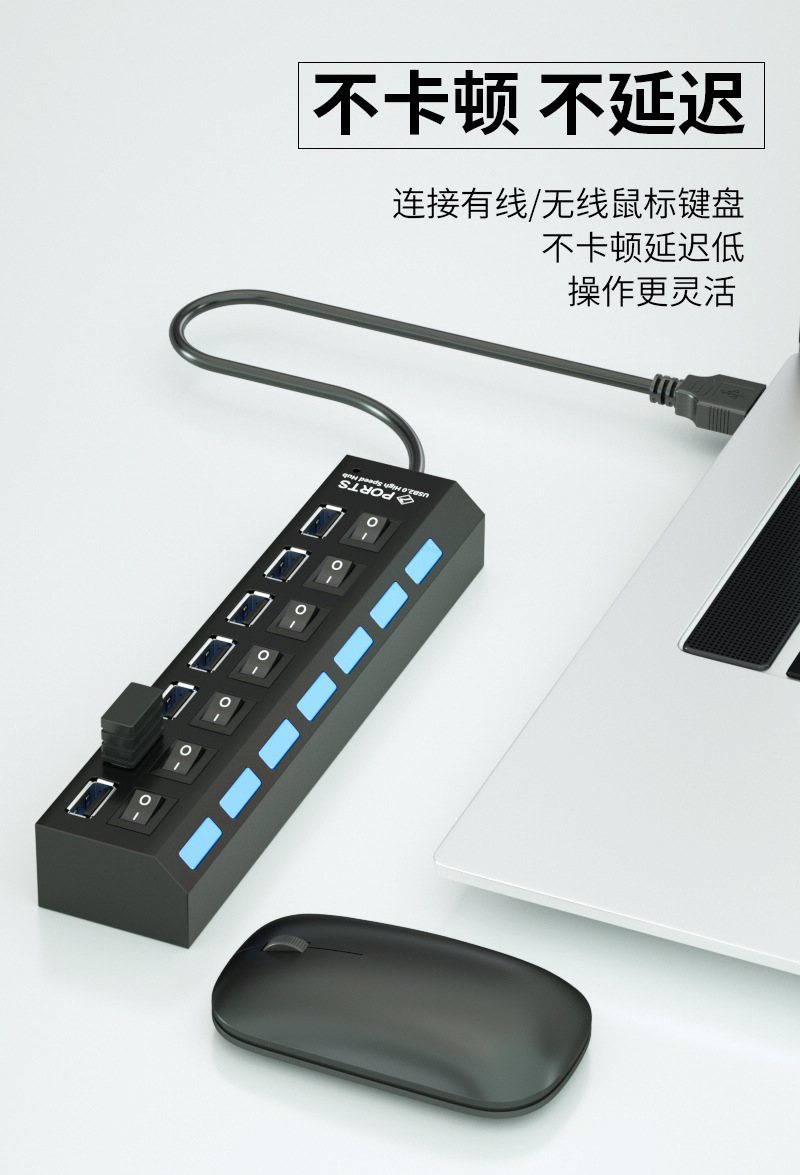 독립적 인 스위치 USB 허브 확장 스플리터 USB 익스텐더가있는 7 포트 USB 컴퓨터 스플리터 2.0 허브스토어 가기