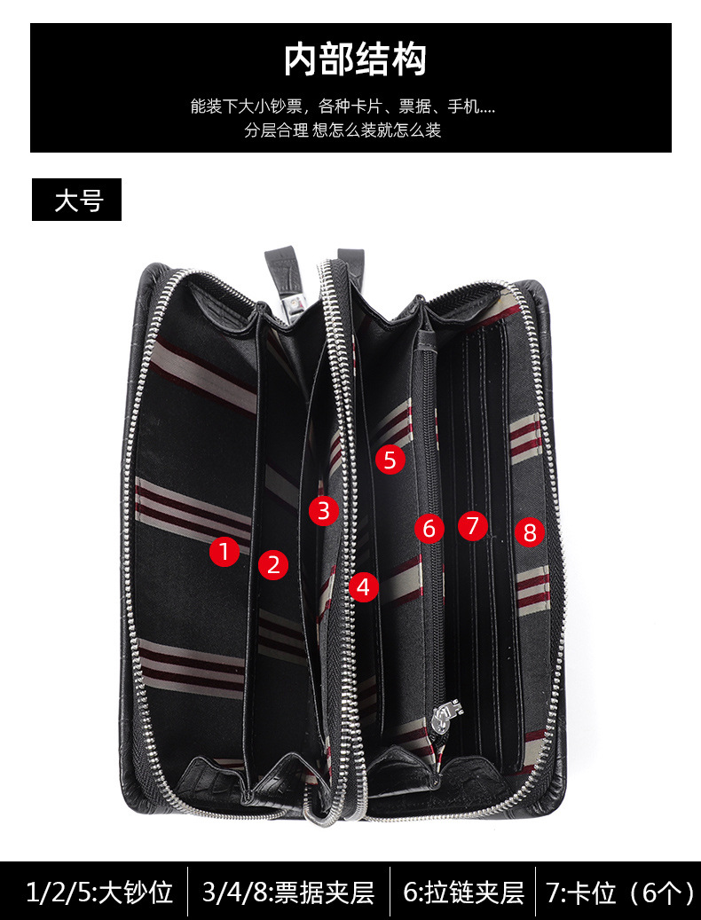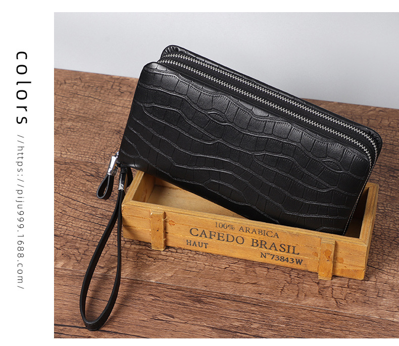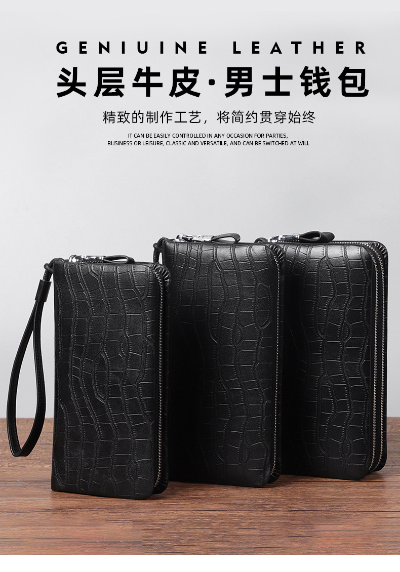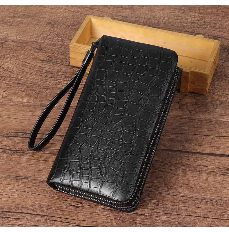 악어 패턴 남성 지갑 정품 가죽 더블 지퍼 롱 남성 지갑 멀티 카드 홀더 지갑 탑 레이어 소가죽 클러치스토어 가기