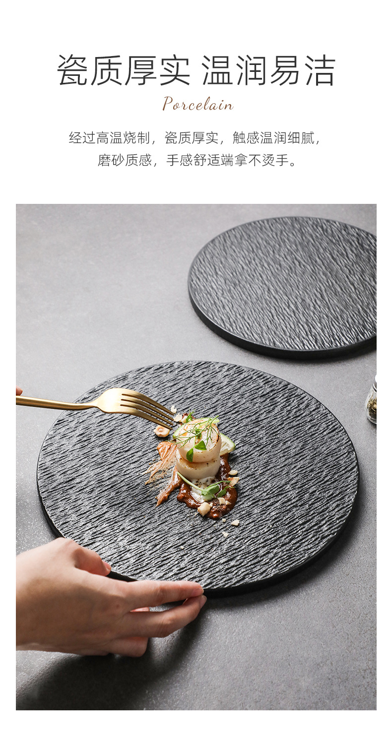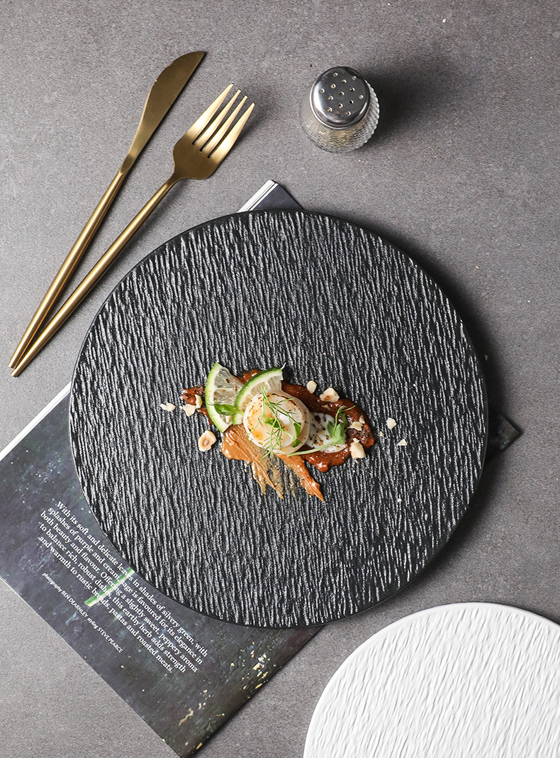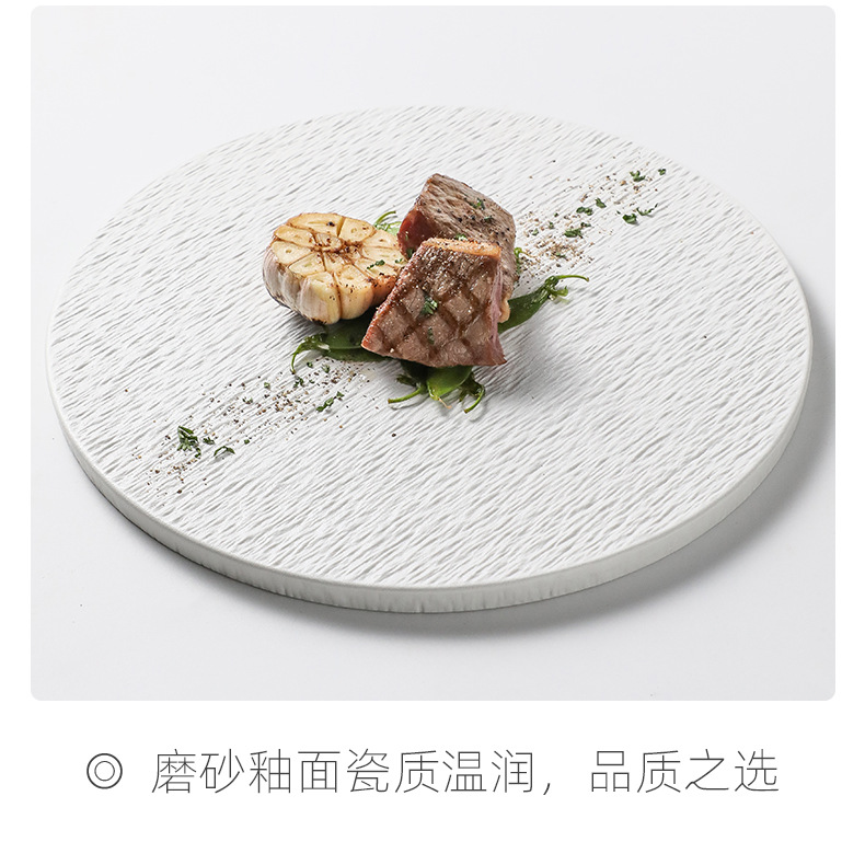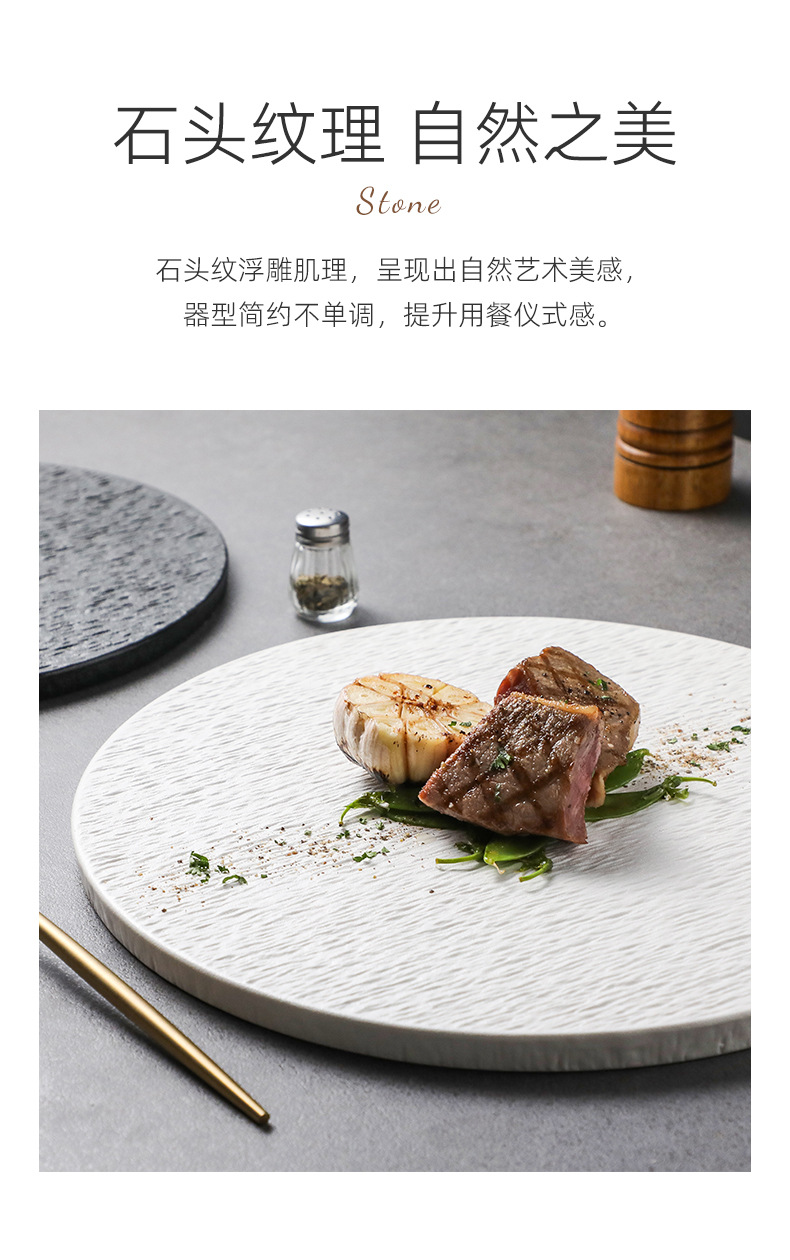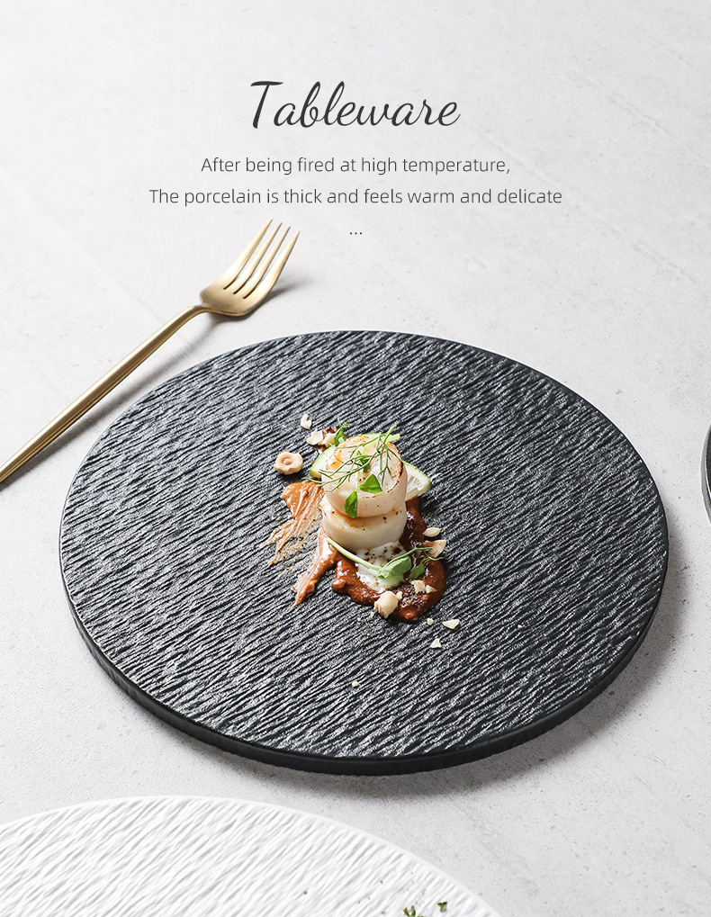솔리드 컬러 록 패턴 세라믹 웨스턴 푸드 플레이트 플랫 플레이트 라운드 케이크 플레이트 스테이크 플레이트 일본 레스토랑 플레이트