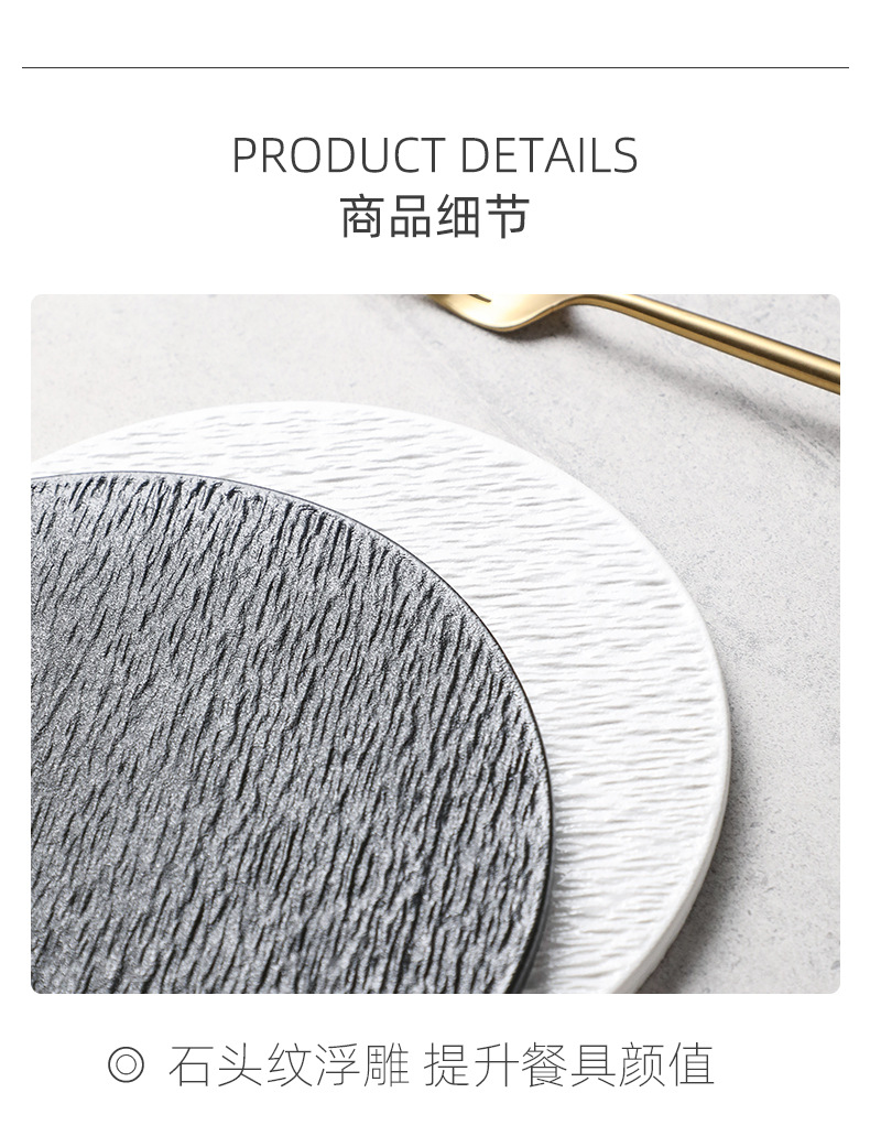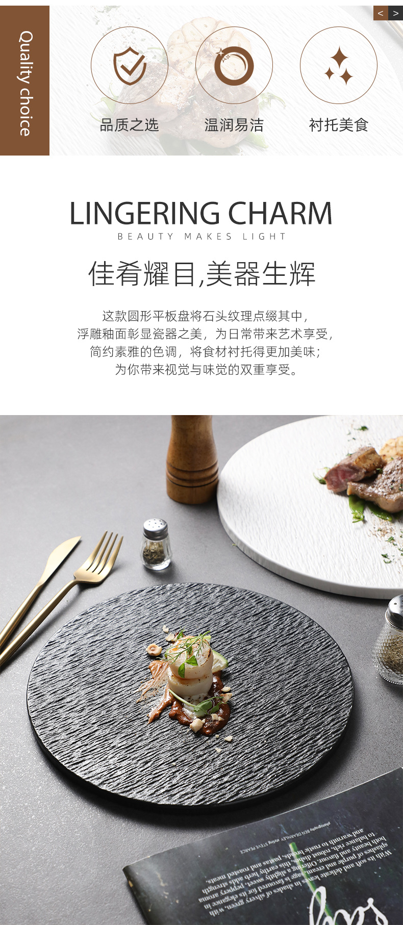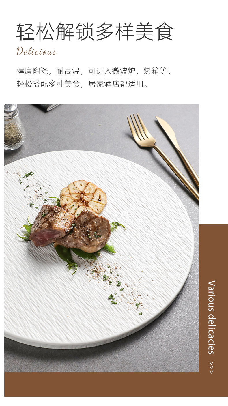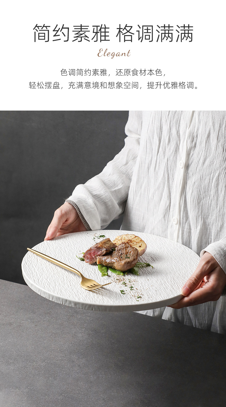 솔리드 컬러 록 패턴 세라믹 웨스턴 푸드 플레이트 플랫 플레이트 라운드 케이크 플레이트 스테이크 플레이트 일본 레스토랑 플레이트