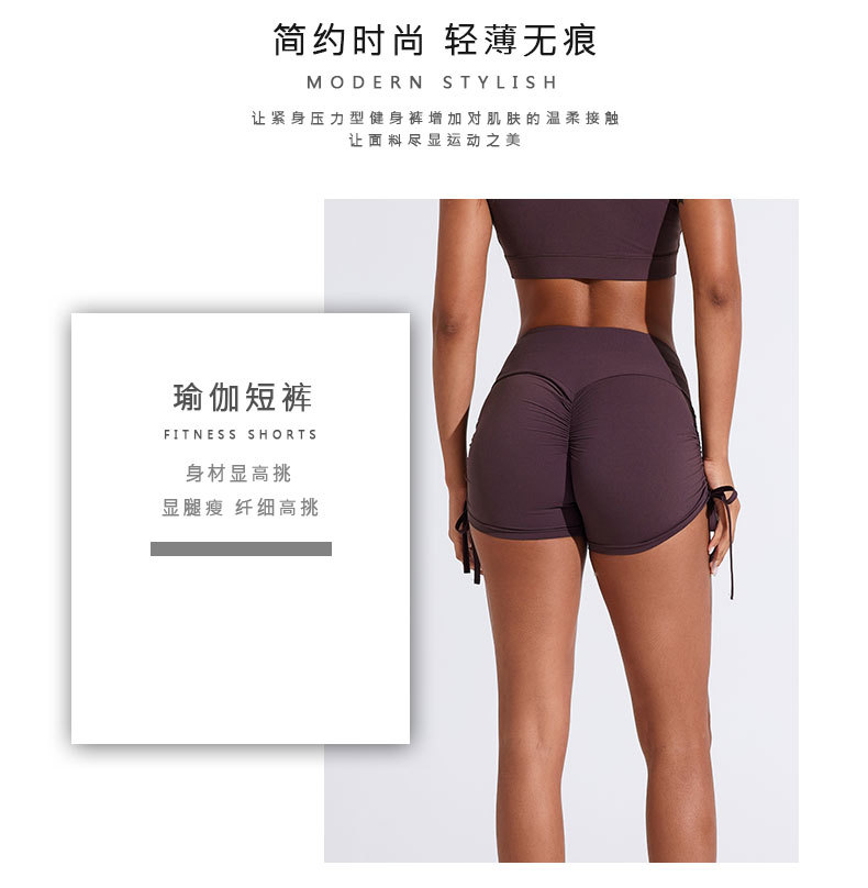 요가 졸라매는 끈 반바지 요가 의류 여성용 알몸 타이트 나일론 트리플 팬츠 피트니스 복숭아 요가 바지 스포츠 반바지스토어 가기