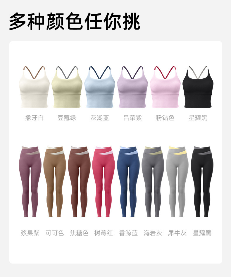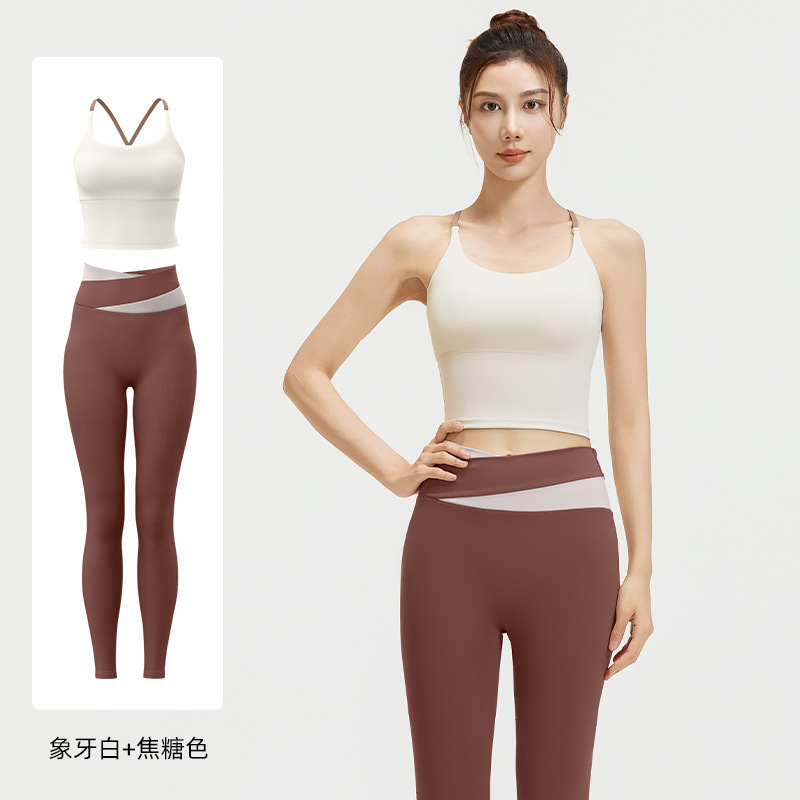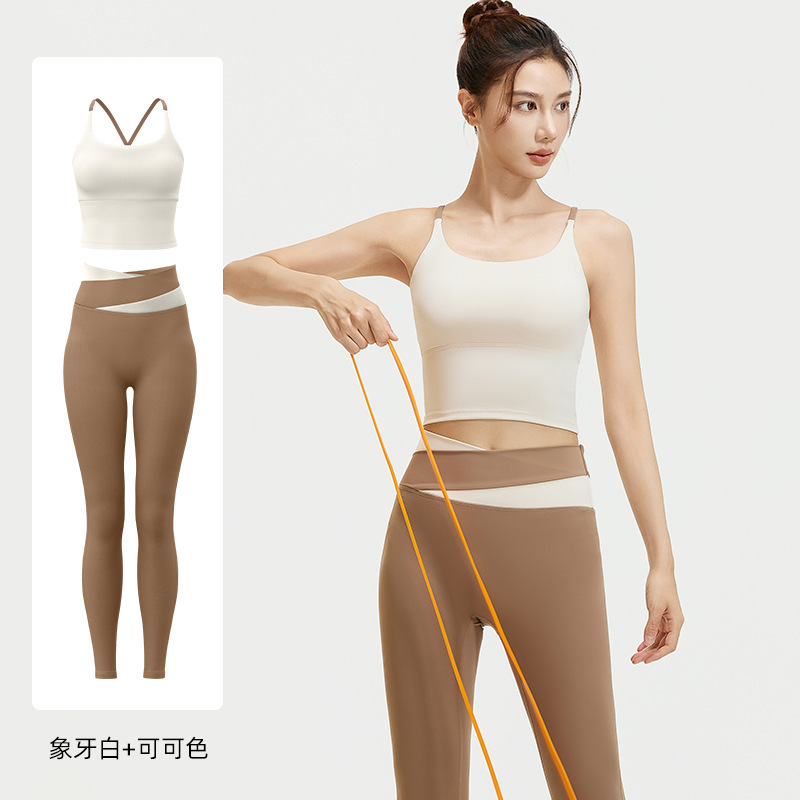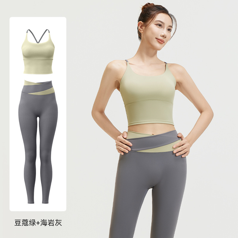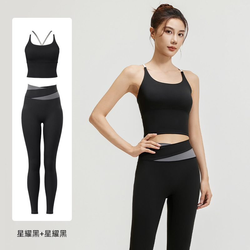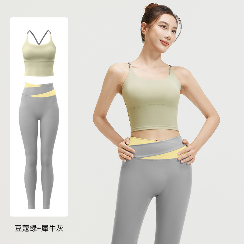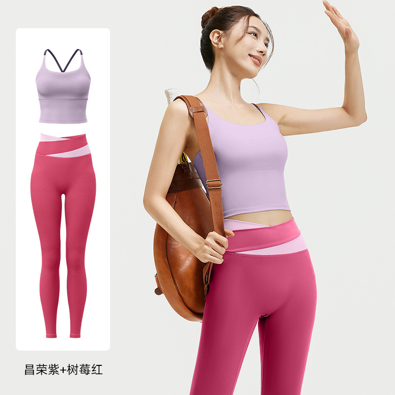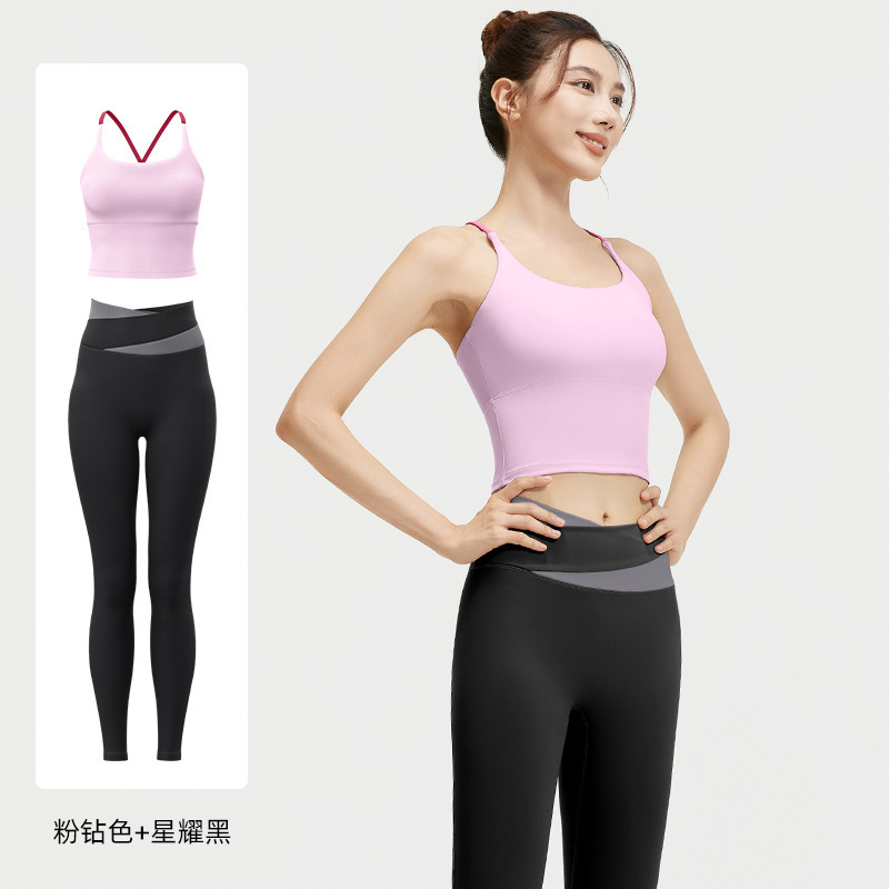 요가 얇은 어깨 크로스 아름다운 등 충격 방지 스포츠 조끼 여성의 대비 색상 하이 웨이스트 엉덩이 리프팅 꽉 실행 피트니스 바지 세트