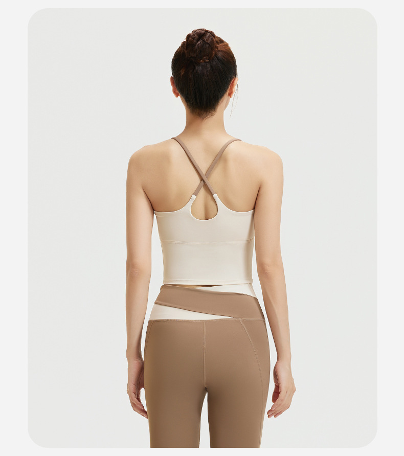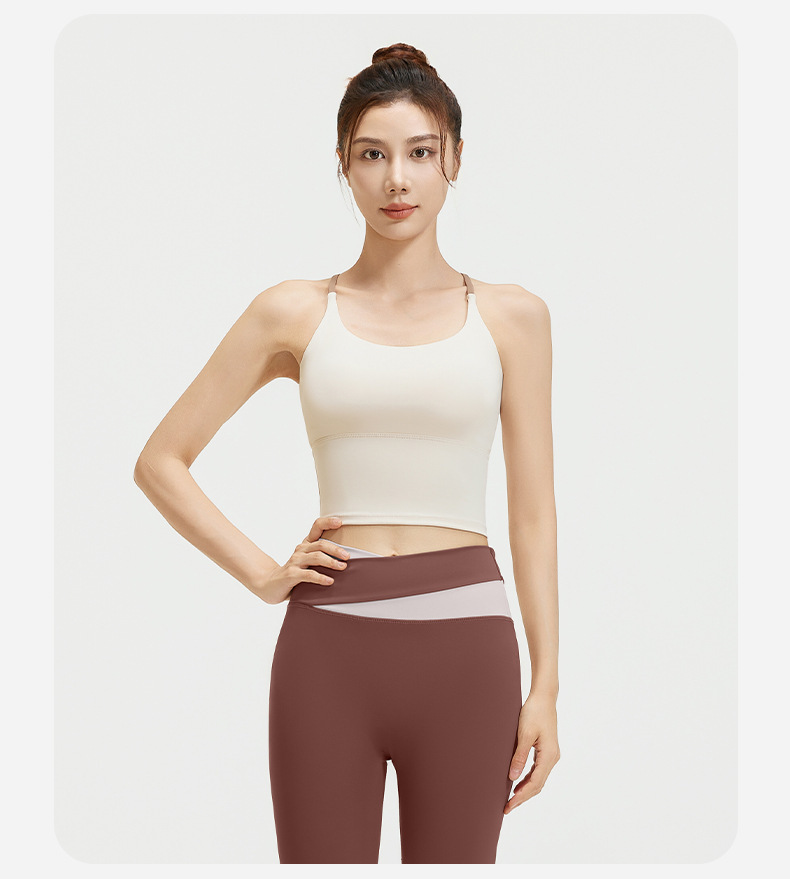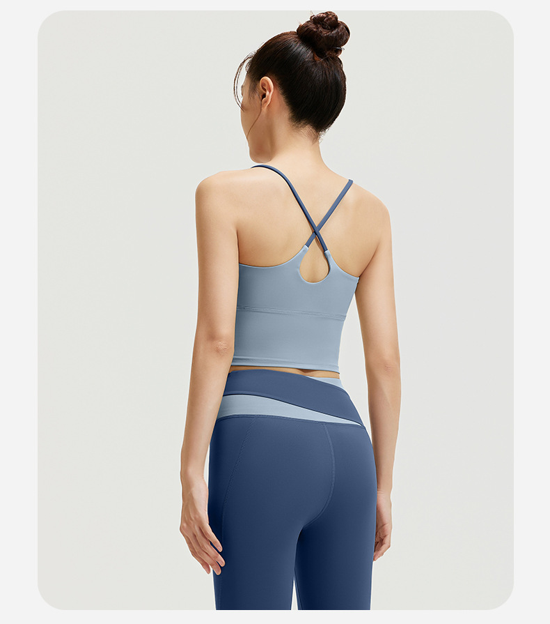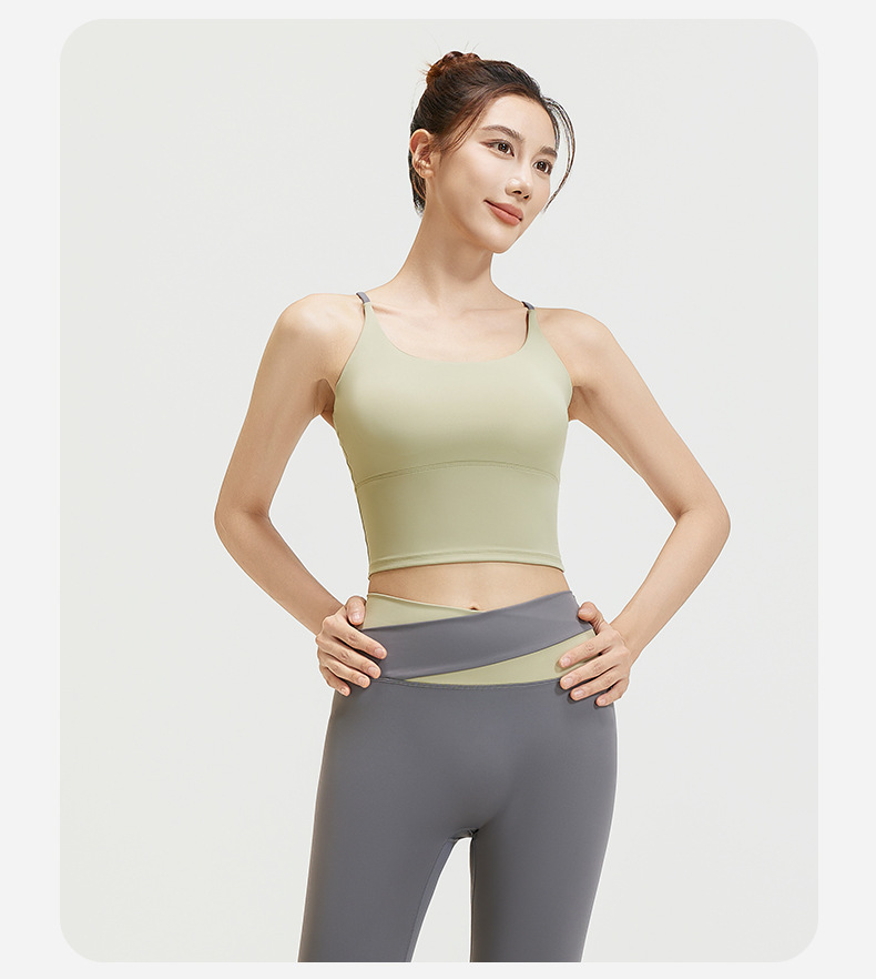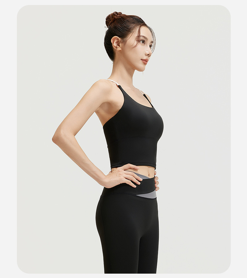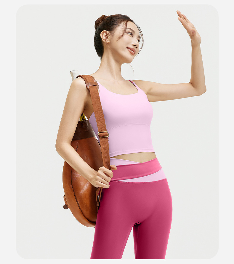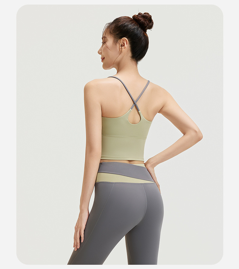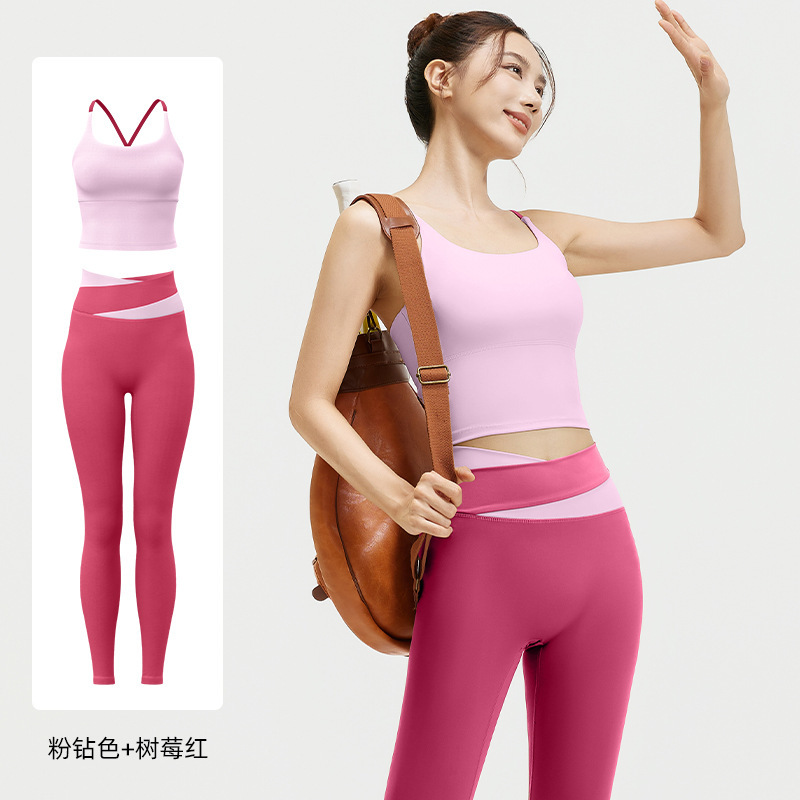 요가 얇은 어깨 크로스 아름다운 등 충격 방지 스포츠 조끼 여성의 대비 색상 하이 웨이스트 엉덩이 리프팅 꽉 실행 피트니스 바지 세트스토어 가기