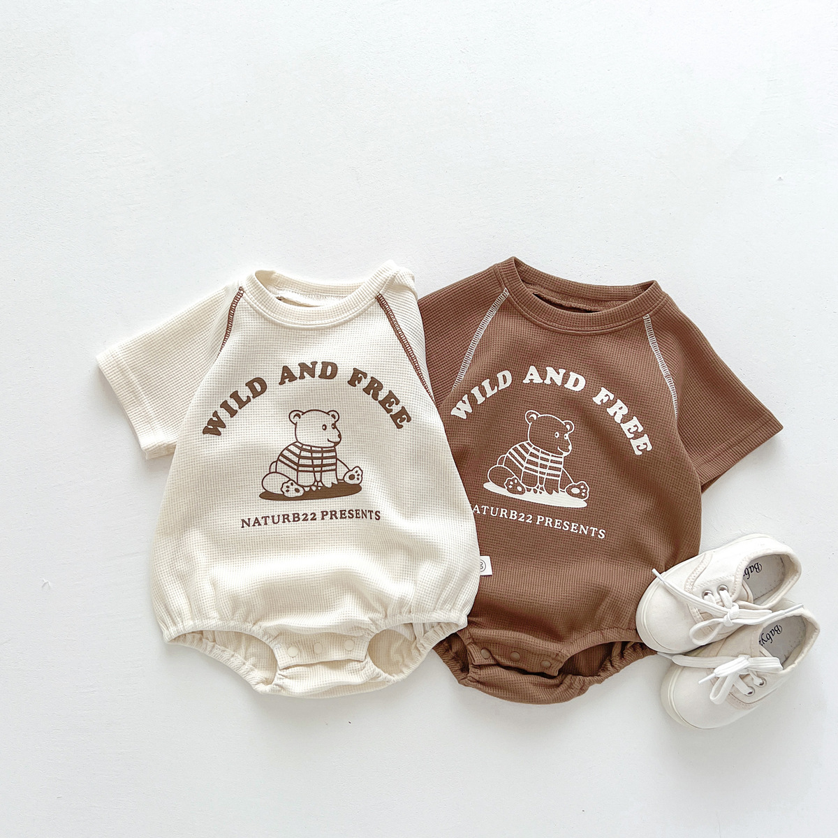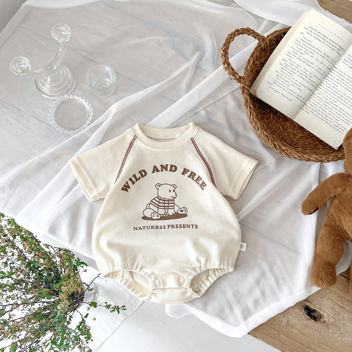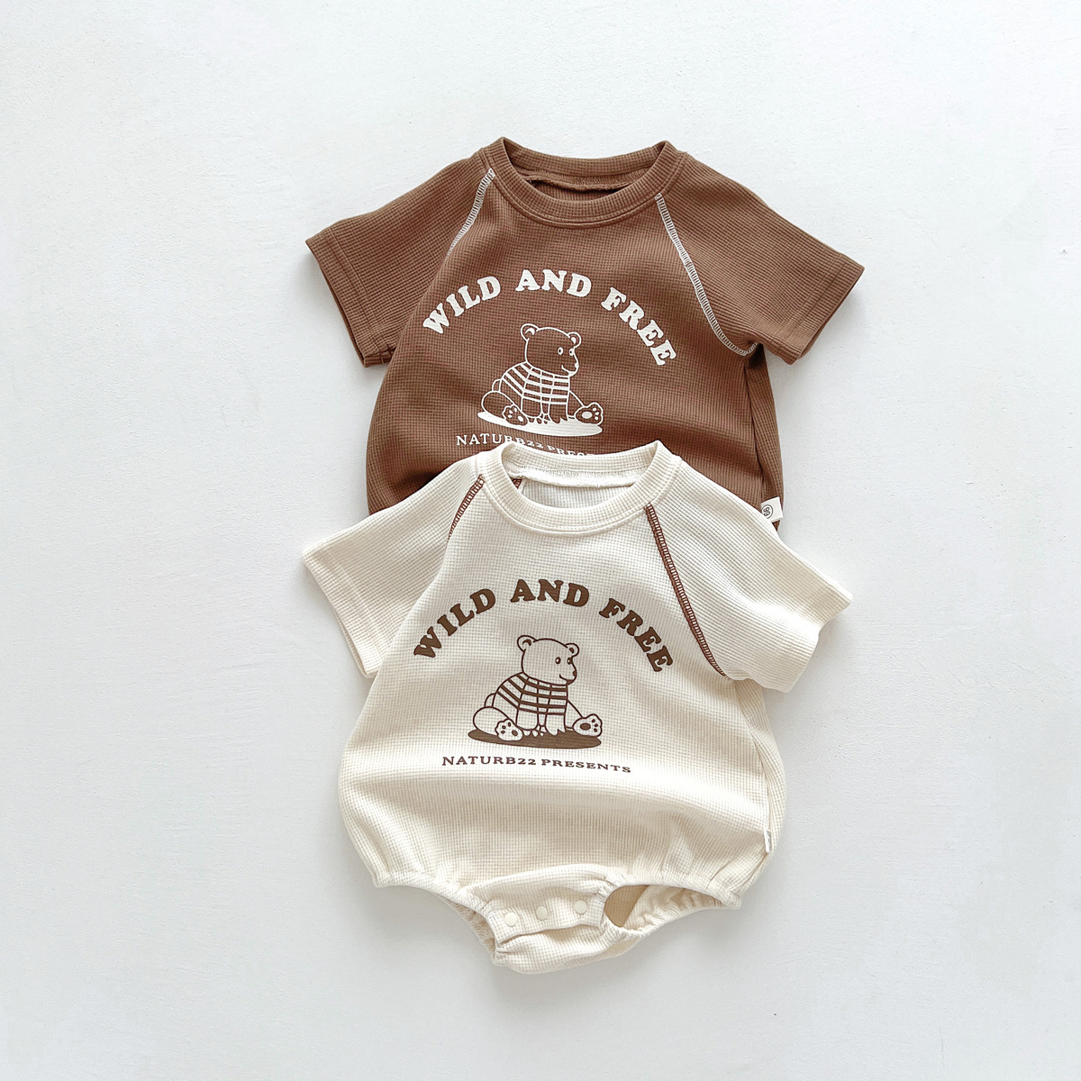 어린이 한국식 여름 라운드 넥 삼각형 가운 신생아 만화 곰 옷 외출용 원피스 크롤링 슈트