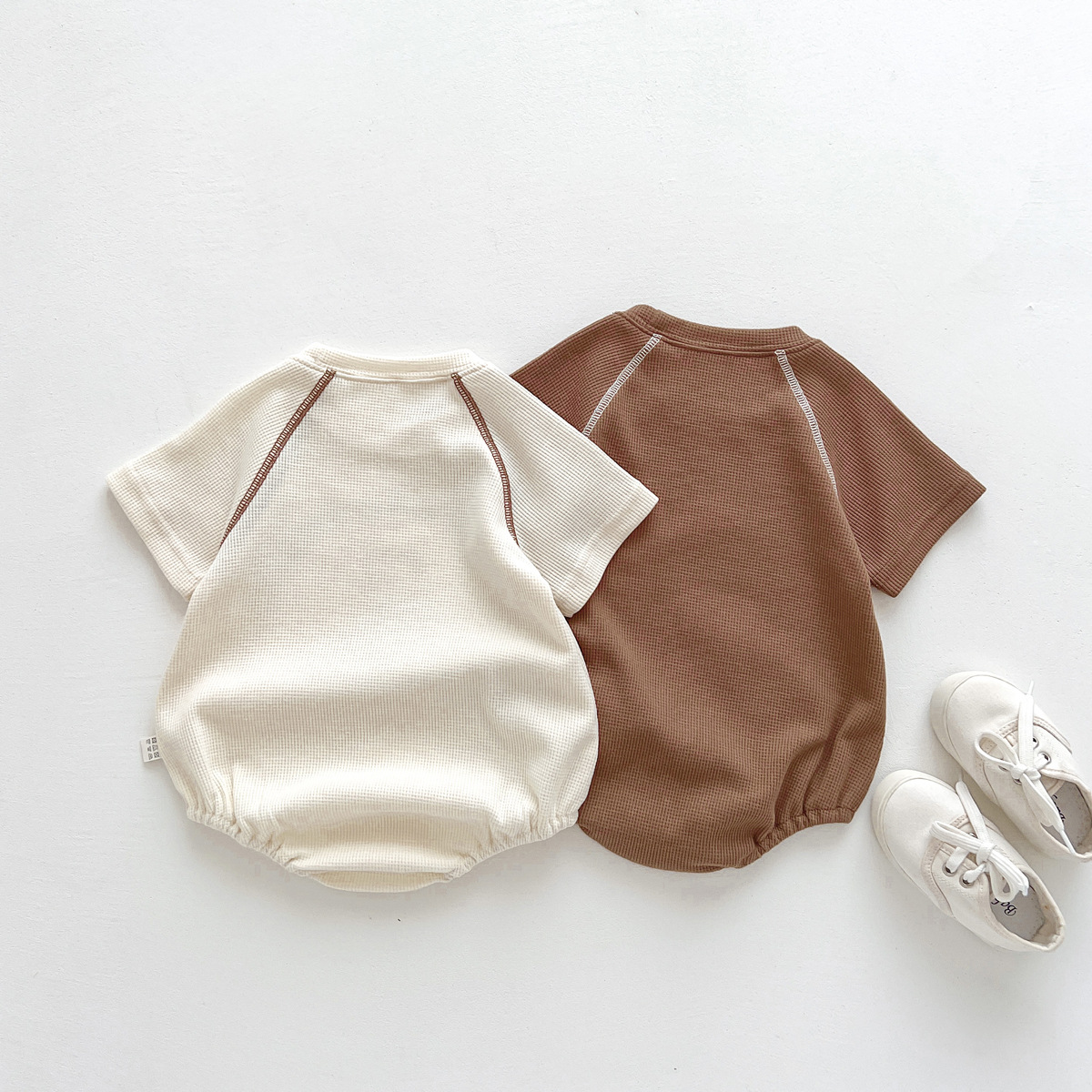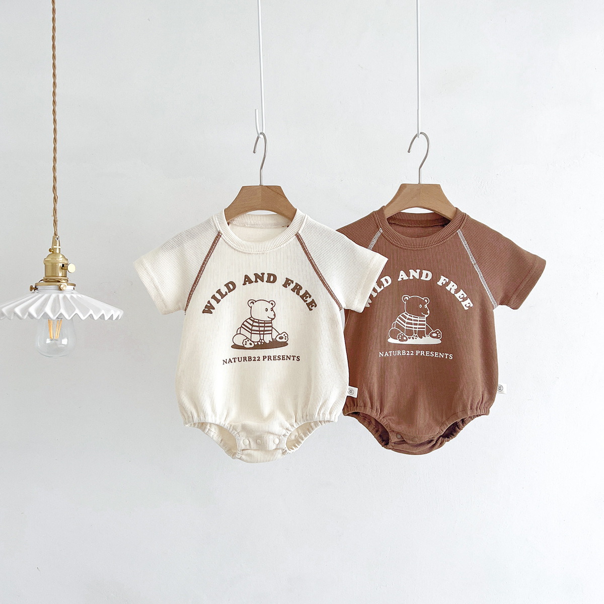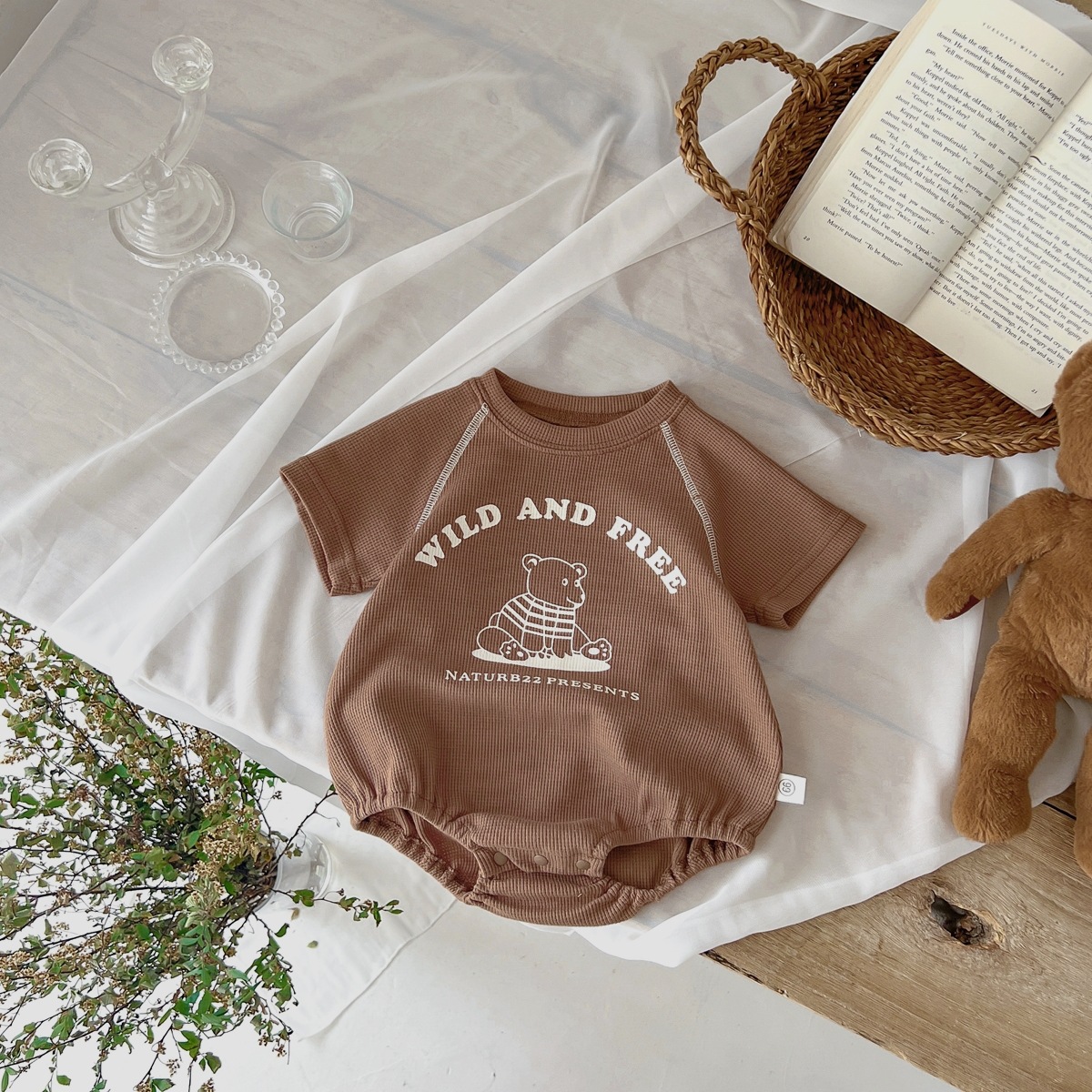 어린이 한국식 여름 라운드 넥 삼각형 가운 신생아 만화 곰 옷 외출용 원피스 크롤링 슈트