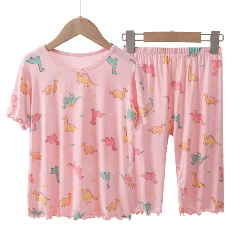 새로운 Yucos 아이들의 가정 옷 세트 부모-자식 잠옷 여자 반팔 짧은 바지 커버