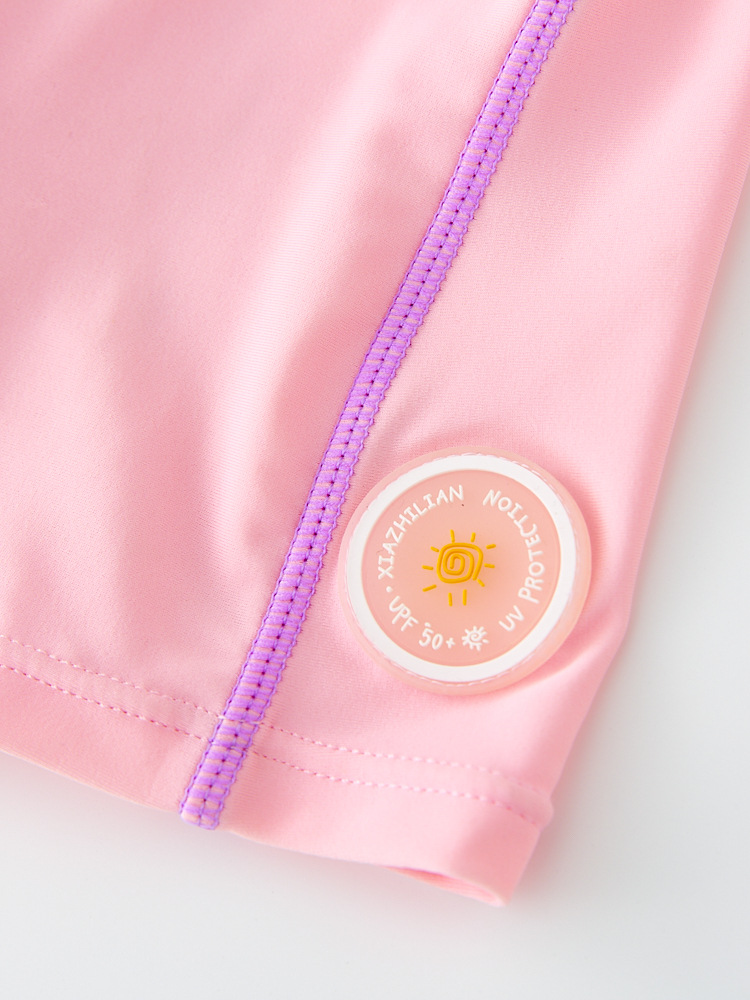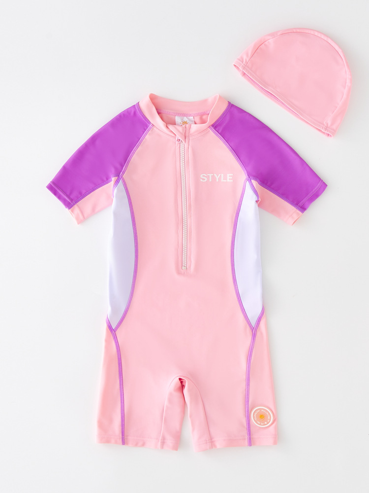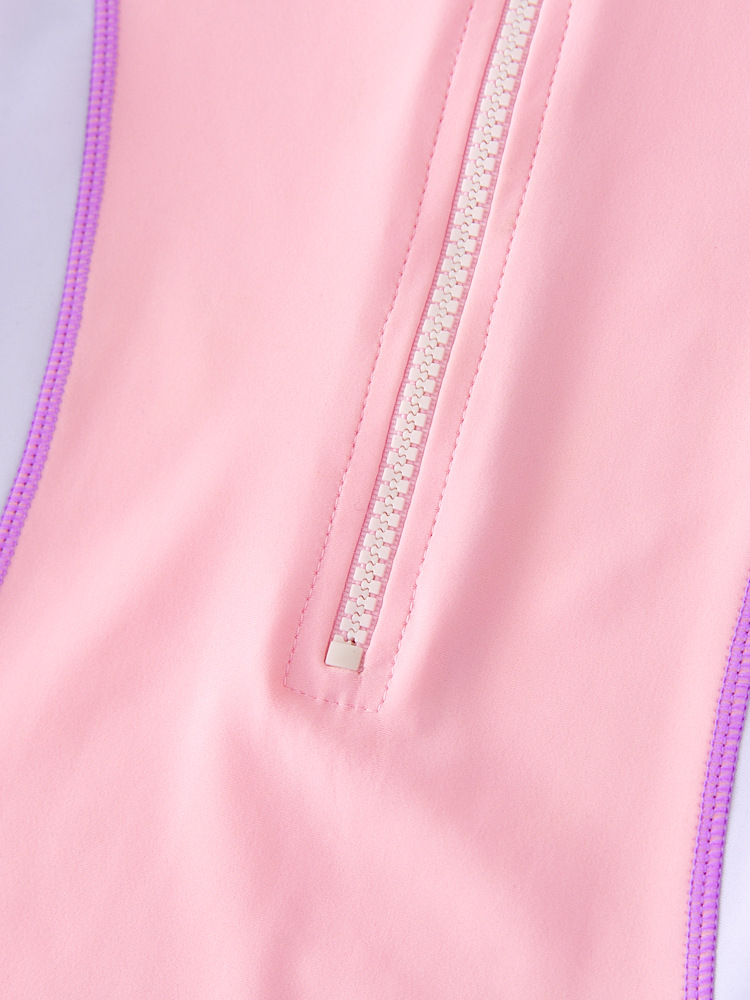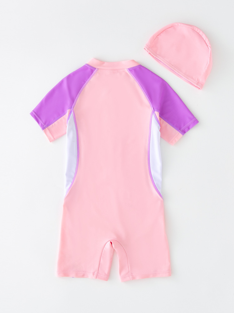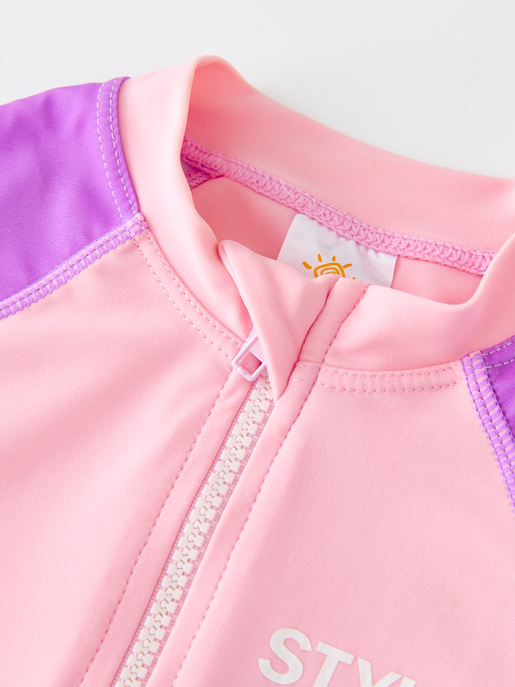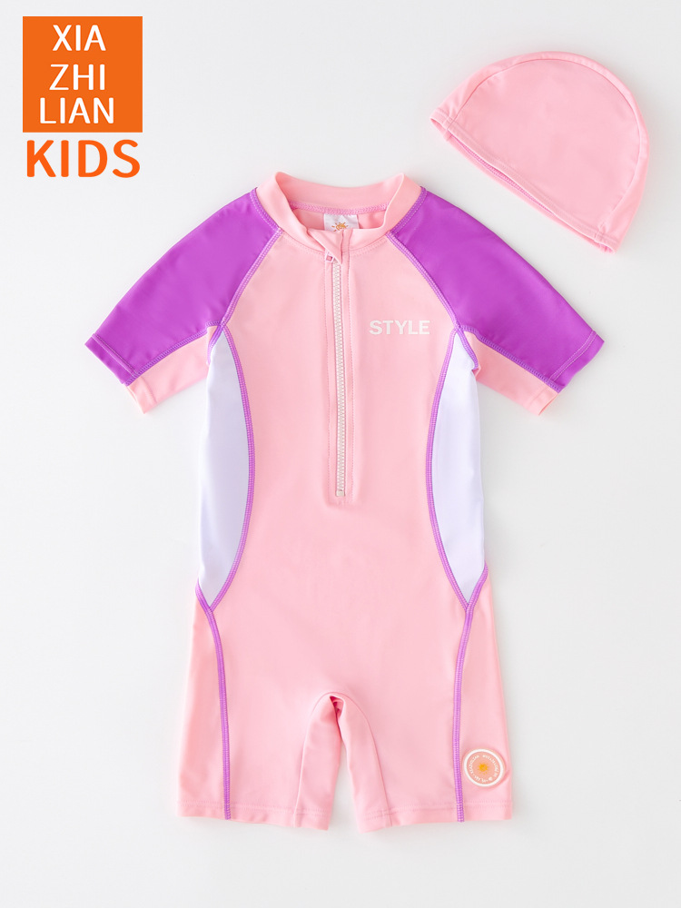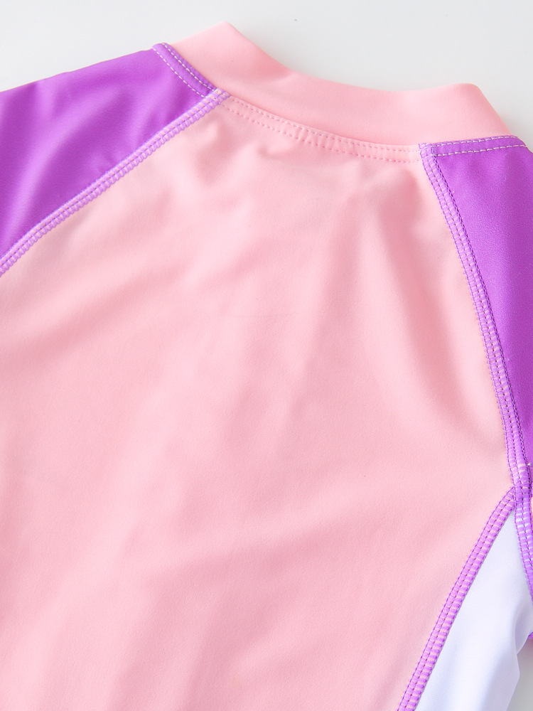 韩国儿童泳衣女童游泳衣 宝宝冲浪服防晒紫白粉拼色运动连体泳装