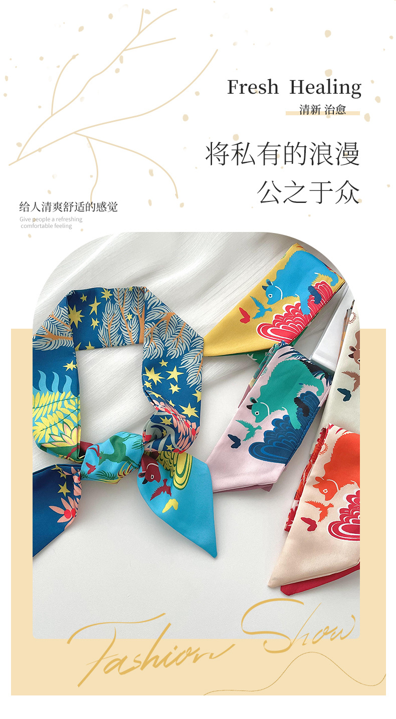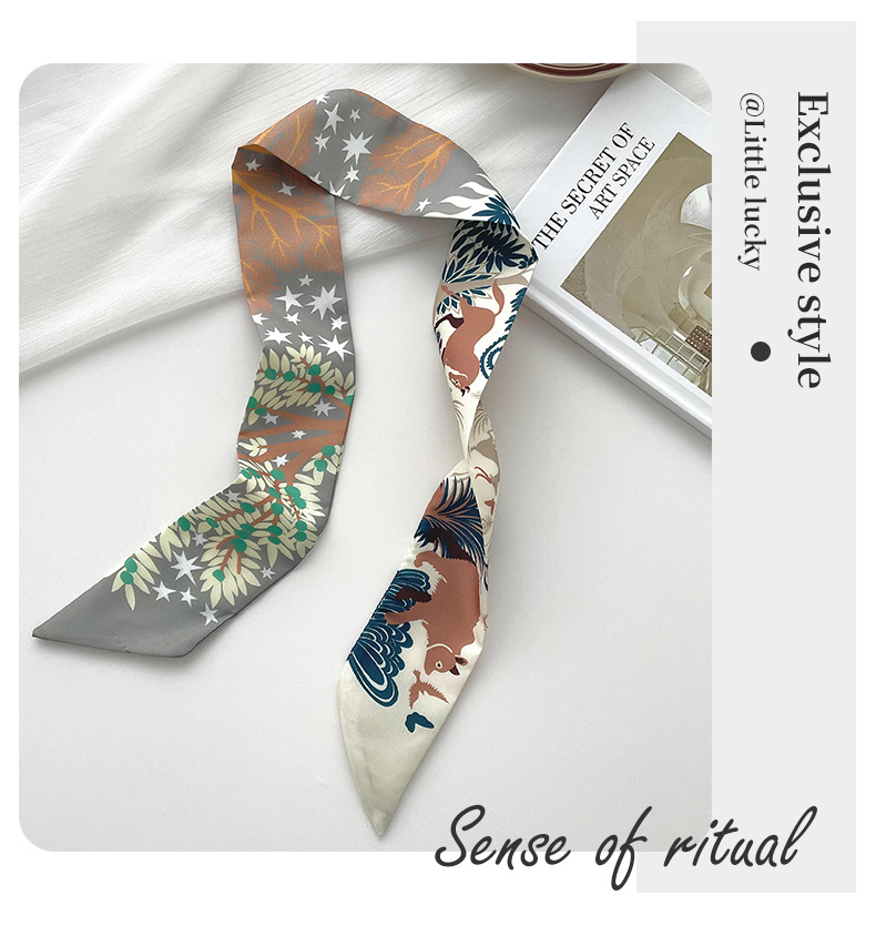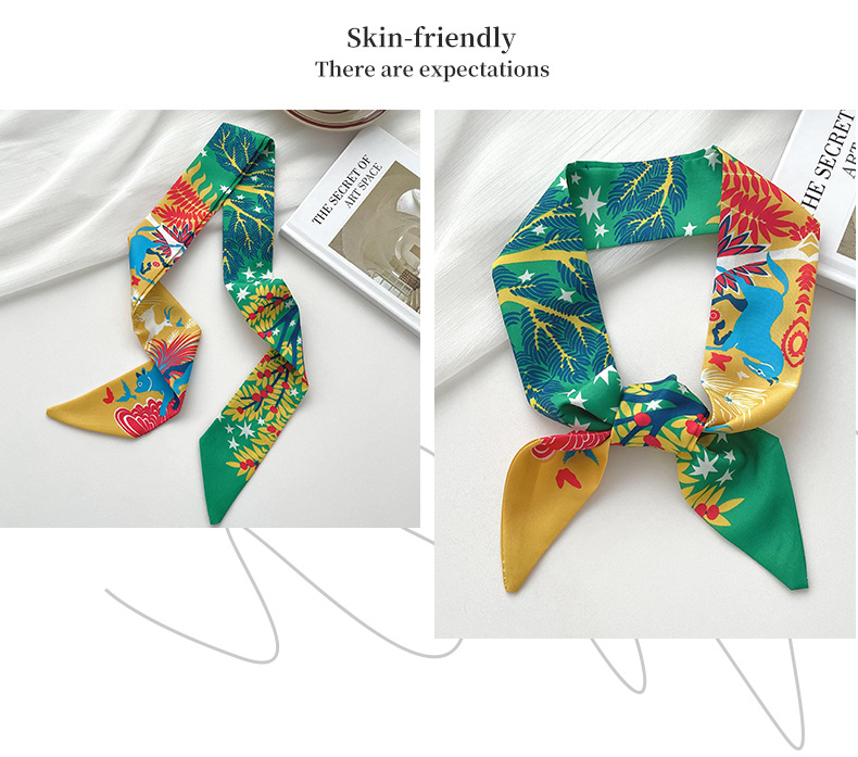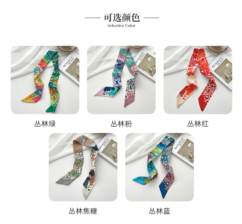 새로운 마야 정글 스키니 롱 스몰 실크 스카프 봄과 여름 한국식 모든 매치 타이 헤어 타이 백 장식 리본 헤어 밴드스토어 가기