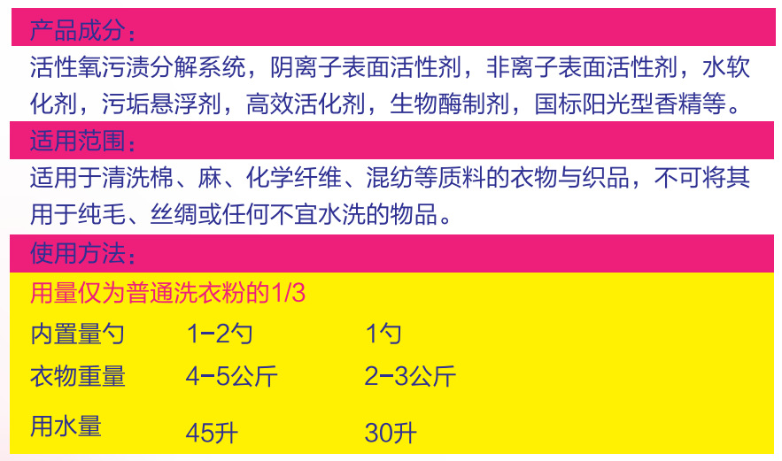 Yin Granmaya 세척 분말 효소 고농도 저거품 세척 분말 활성 산소 열화 황색 오염 제거