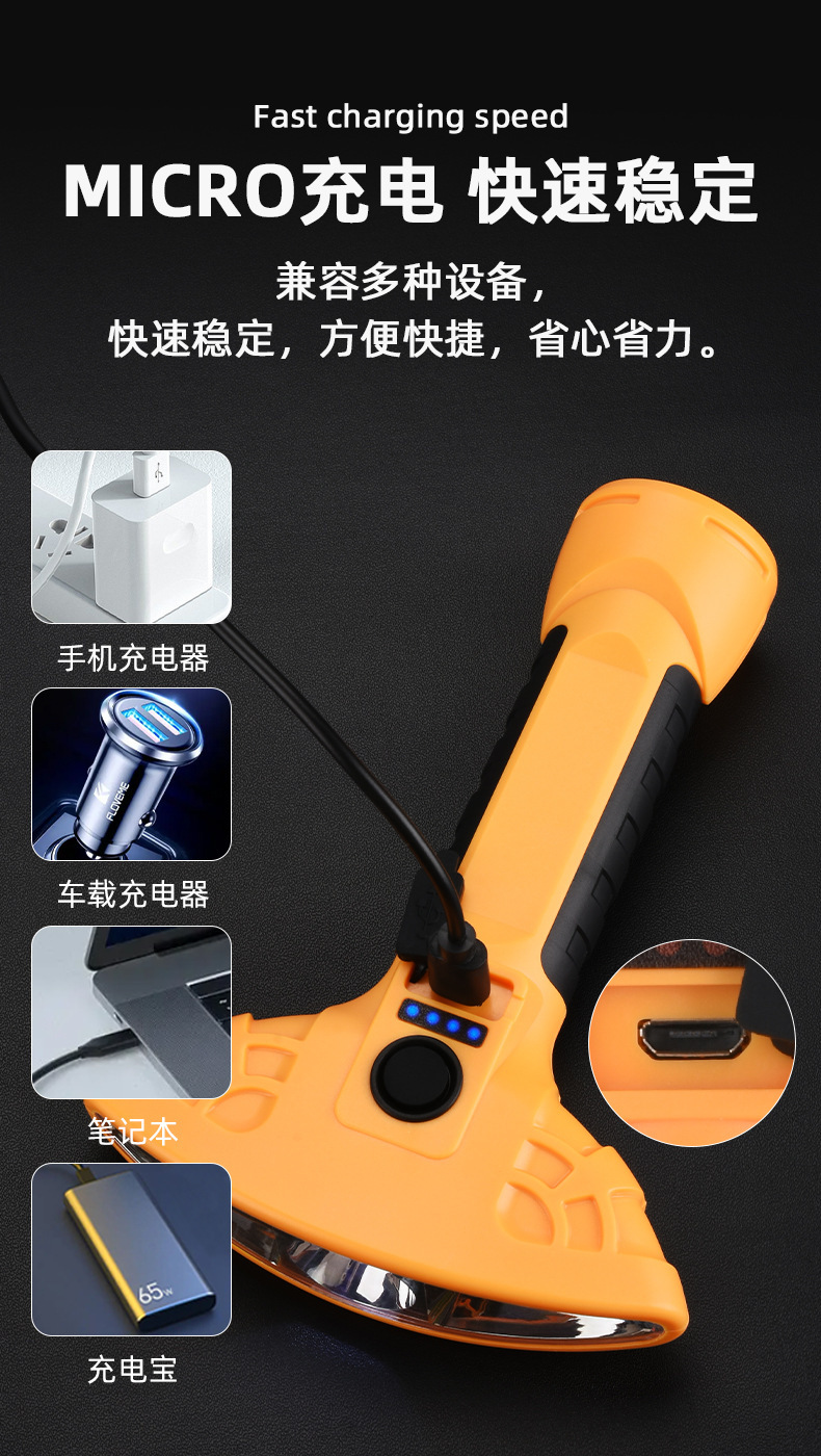 새로운 국경 3 헤드 다기능 COB 자석 자동 수리 작업 조명 LED 빨간불 경고 빛 강한 빛 손전등