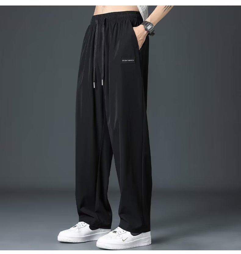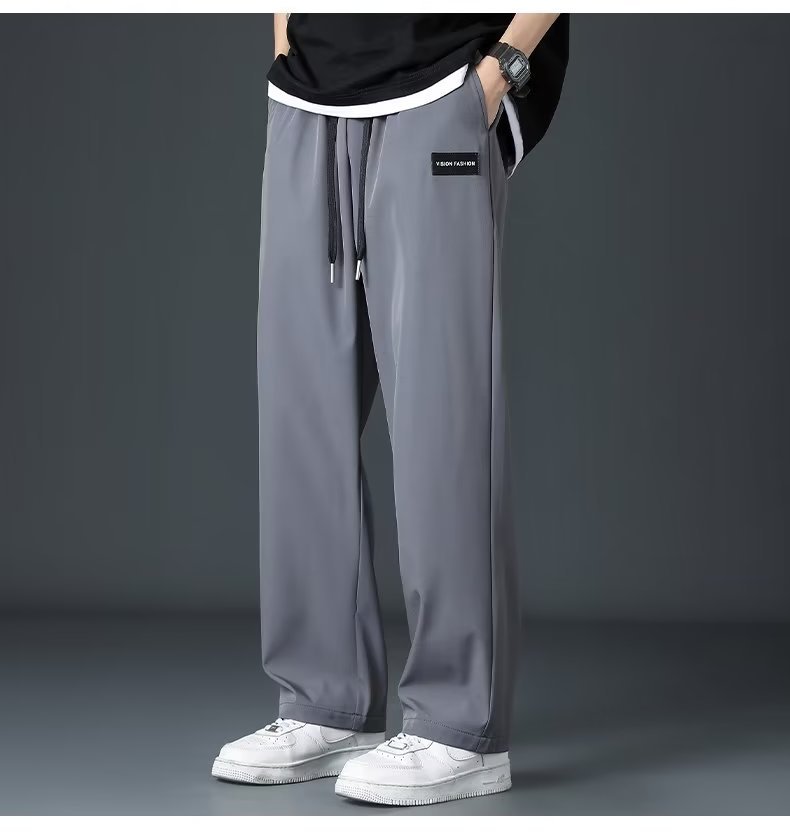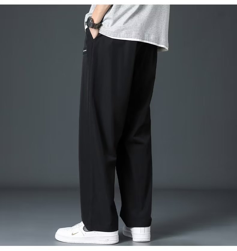 캐주얼 바지 남성용 여름 얇은 플러스 사이즈 스웨트 팬츠 한국 스타일 트렌디 모든 매치 탄성 허리 스트레이트 레그 느슨한 와이드 팬츠 남성용스토어 가기
