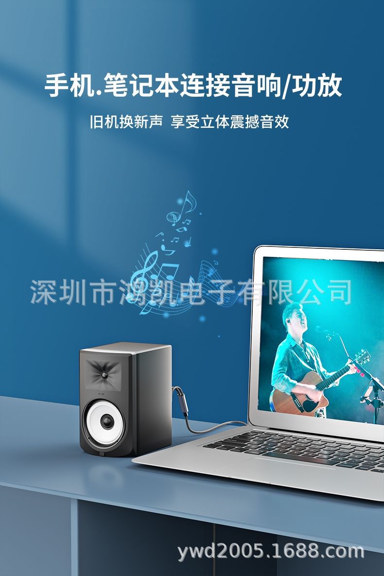Type-C音频线一分二3.5mm转双莲花头rca插头手机电脑接功放音响线