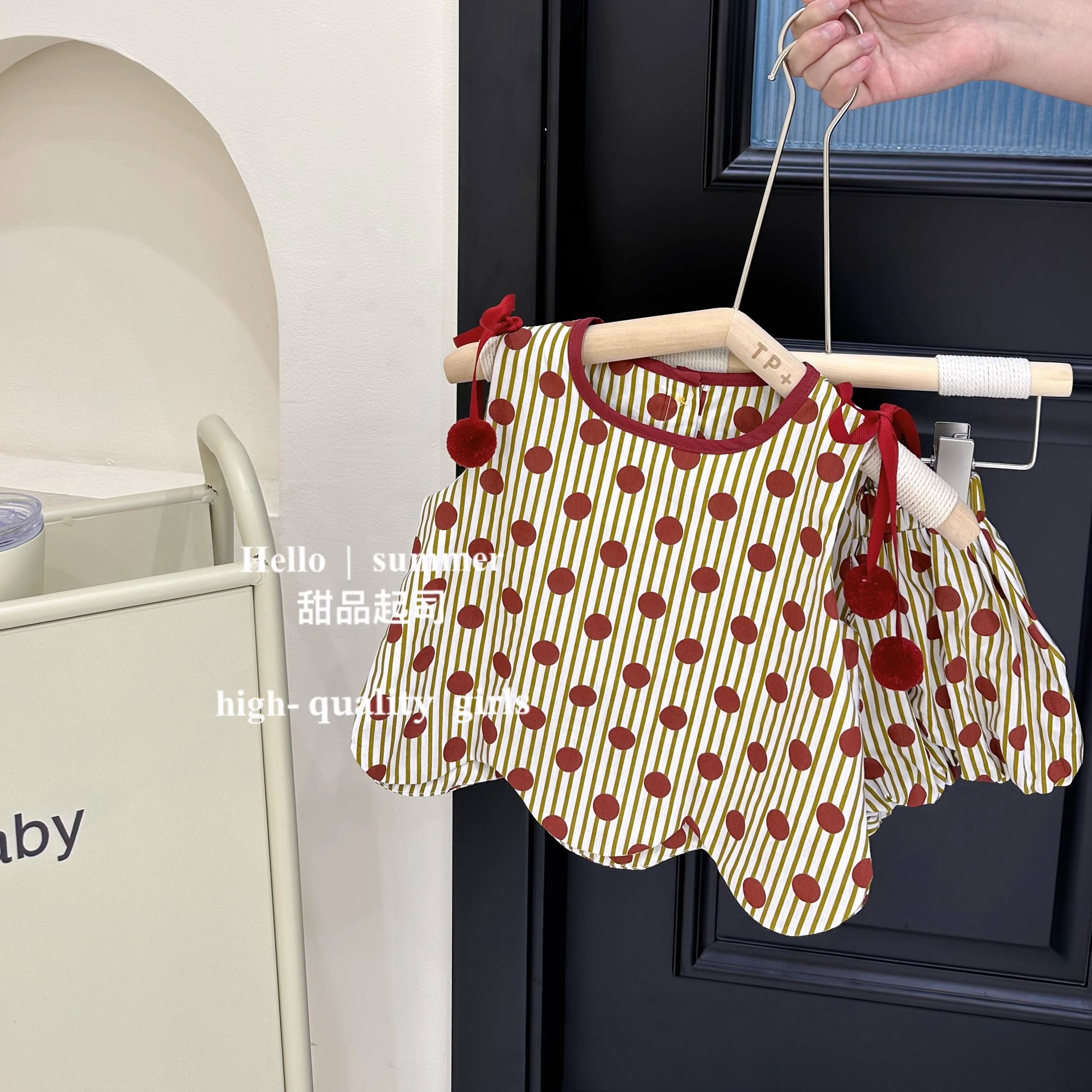 여아 세트 여름 2023 새로운 한국 스타일 아동복 아기 소녀의 서양 스타일 어린이 웨이브 도트 조끼 반바지 투피스 세트스토어 가기