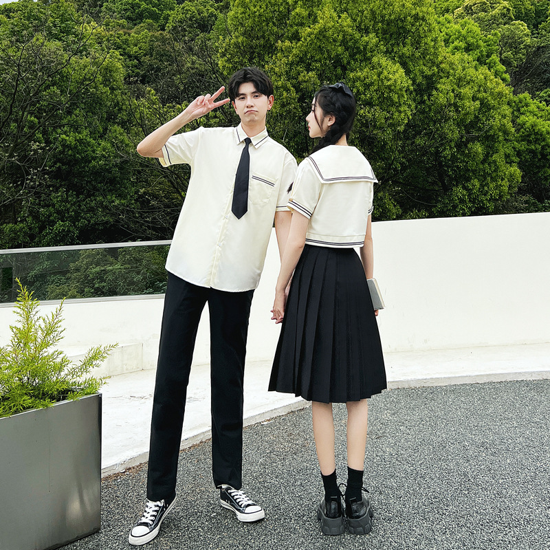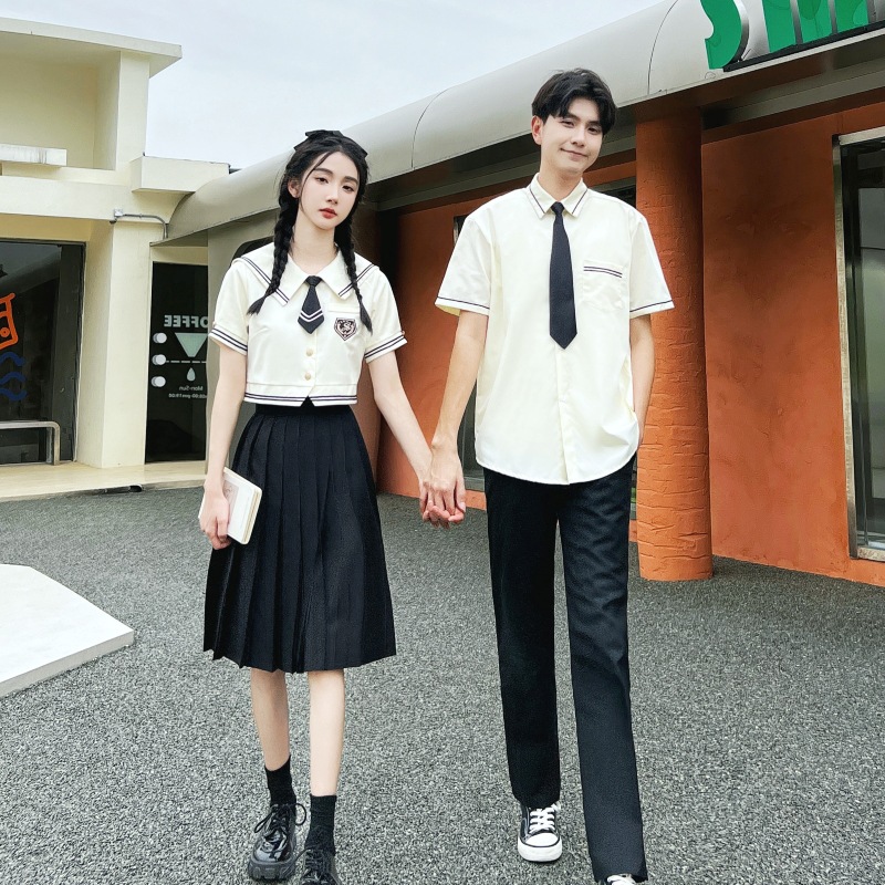 실제 촬영 2023 여름 연인 의류 학생 클래스 의류 세트 성능 의류
