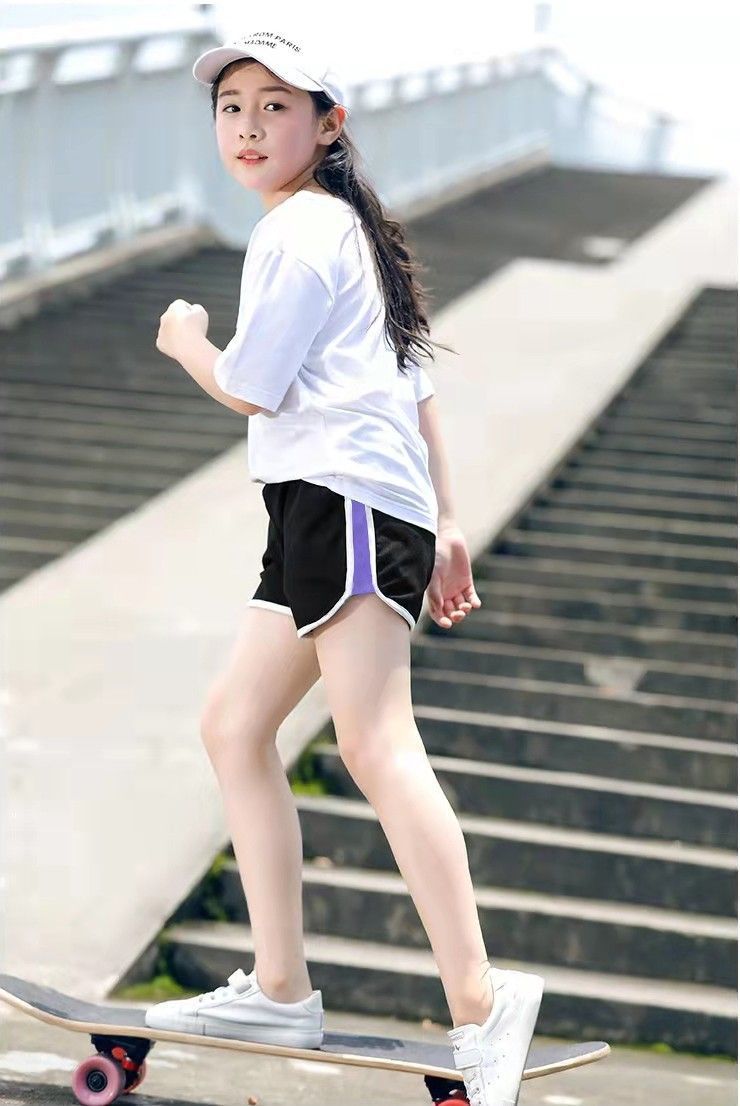 여아 스포츠 반바지 아동 여름 캐주얼 핫 팬츠 얇은 2023 신상품 중형 아동 바지 면 중간 길이 바지