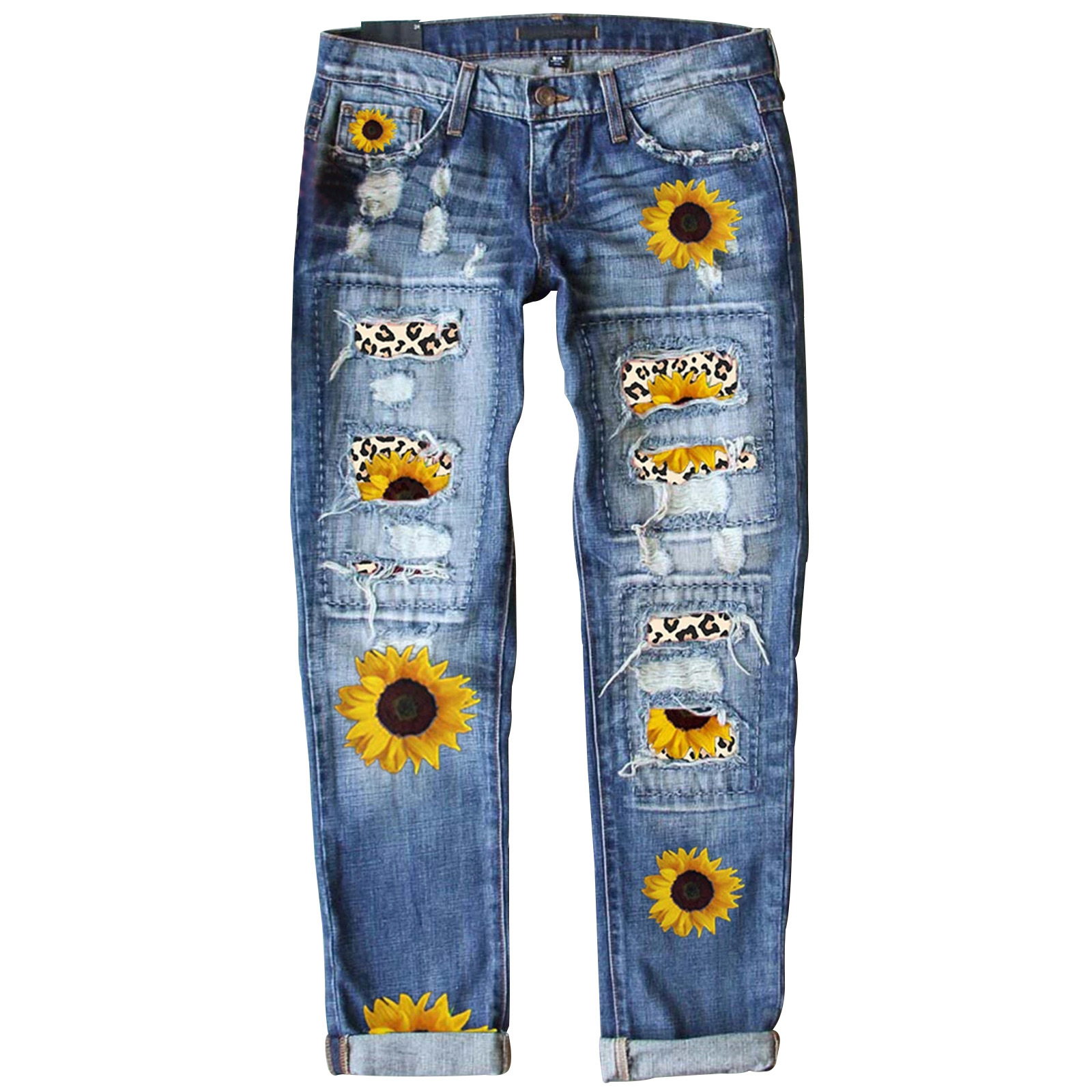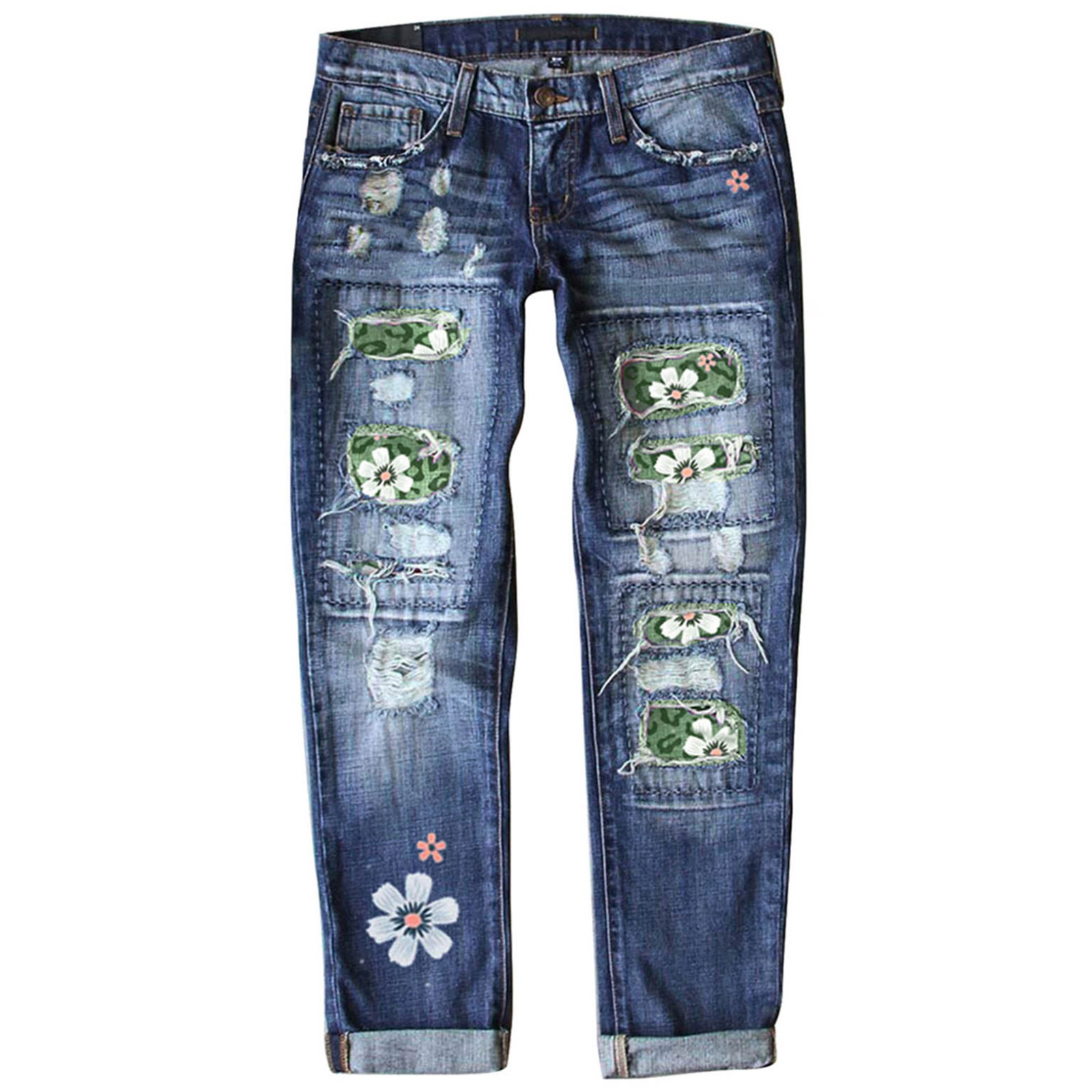 유럽과 미국 대외 무역 국경 간 공급 패션 슬림 핏 프린트 데님 바지 여성용스토어 가기