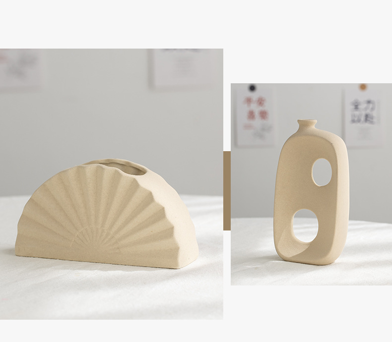 • (부채 모양) 베이지 석기 꽃병