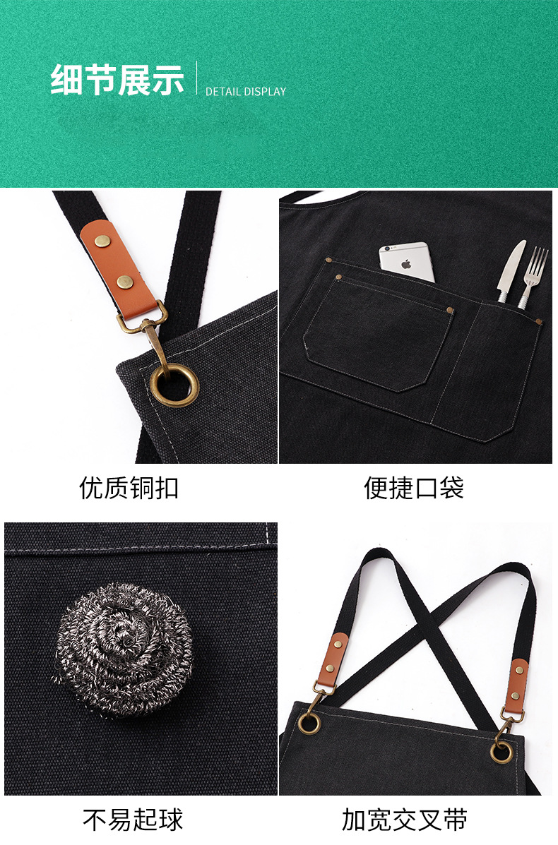 커피 숍 앞치마 캔버스 두꺼운 내마모성 주방 가정용 맞춤형 로고 인쇄 취사 여성을위한 특수 작업복
