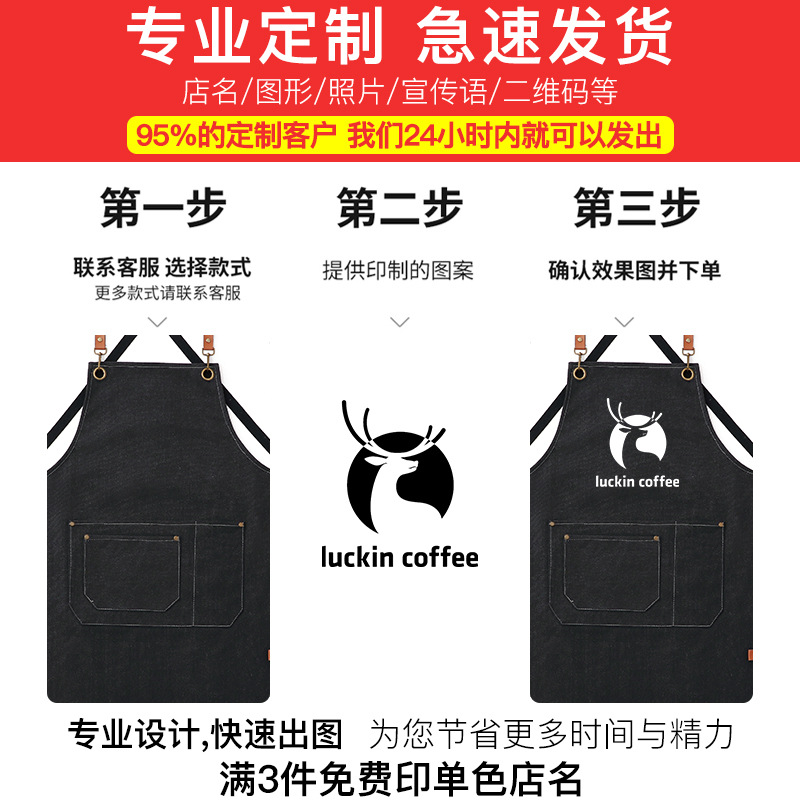 커피 숍 앞치마 캔버스 두꺼운 내마모성 주방 가정용 맞춤형 로고 인쇄 취사 여성을위한 특수 작업복스토어 가기