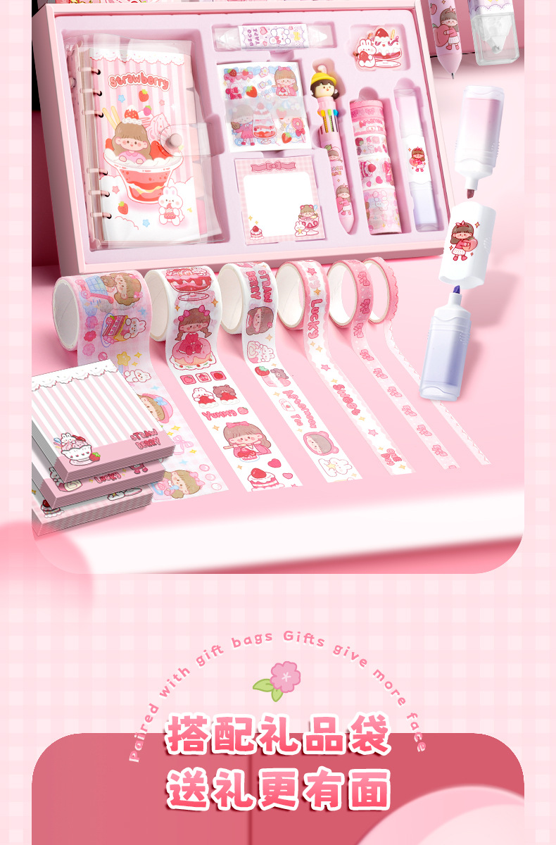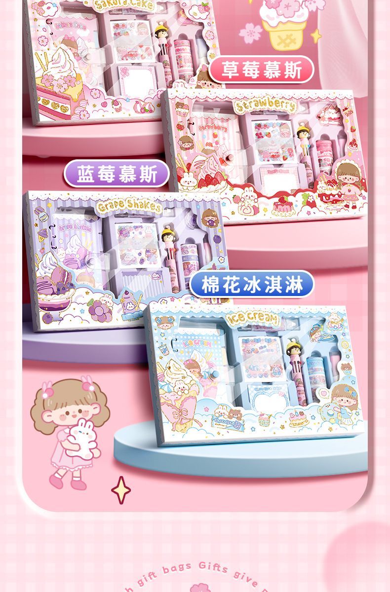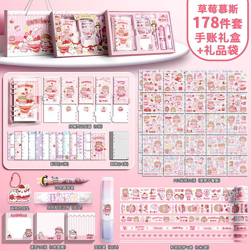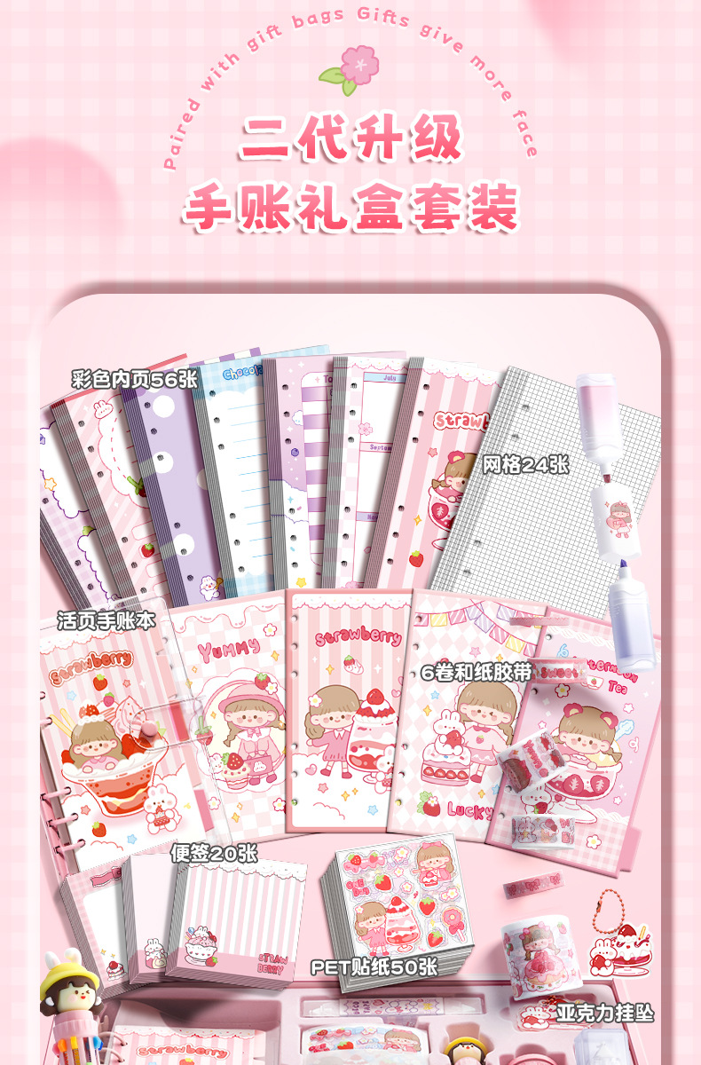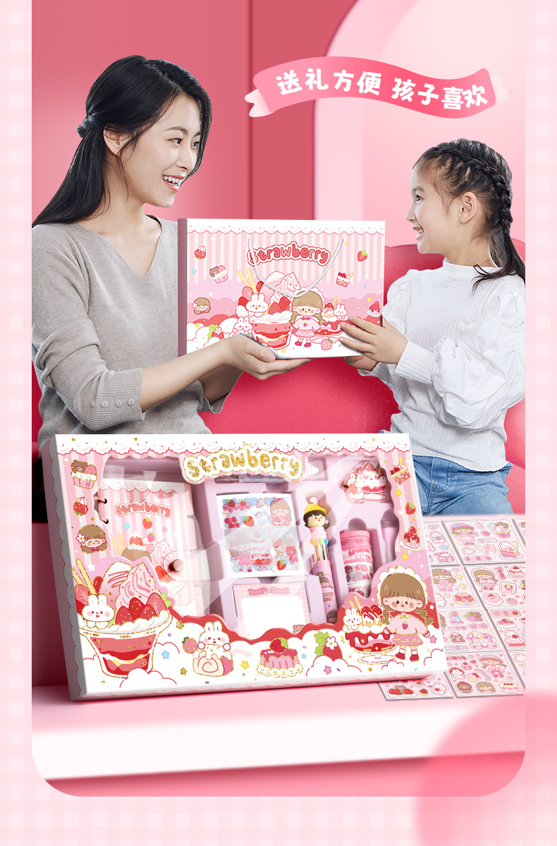 귀여운 소녀 손 장부 세트 선물 상자 소녀 스티커 테이프 소재 도구 책 어린이 루스 리프 책 전체 세트