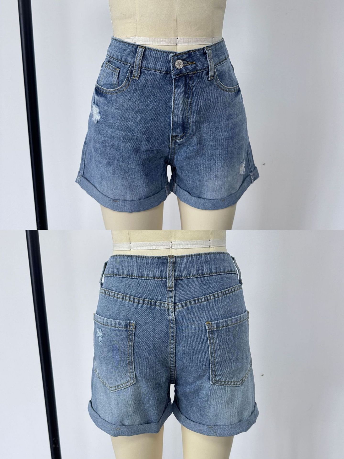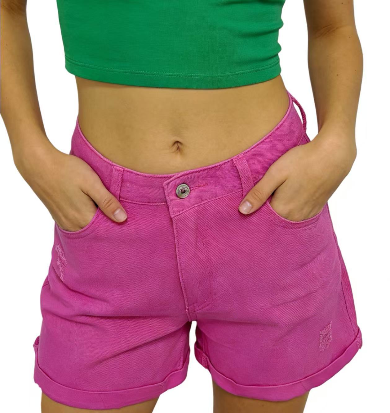 (신규 7가지 색상 추가) 유럽과 미국의 대외 무역 국경 대형 하이 웨이스트 술 찢어진 데님 반바지 여성 핫팬츠