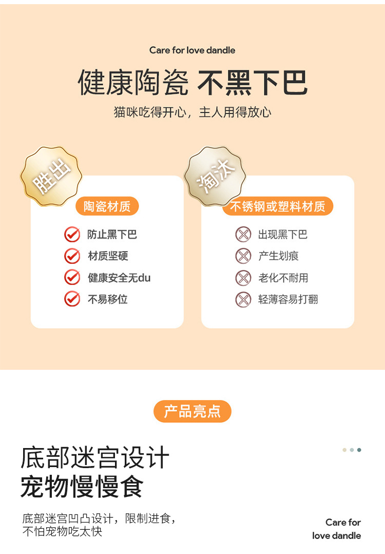 세라믹 애완 동물 고양이 그릇 개 그릇 중소 개 강아지 강아지 슬로우 푸드 그릇 질식 방지 슬로우 푸드 그릇 노크 방지 식품 그릇스토어 가기