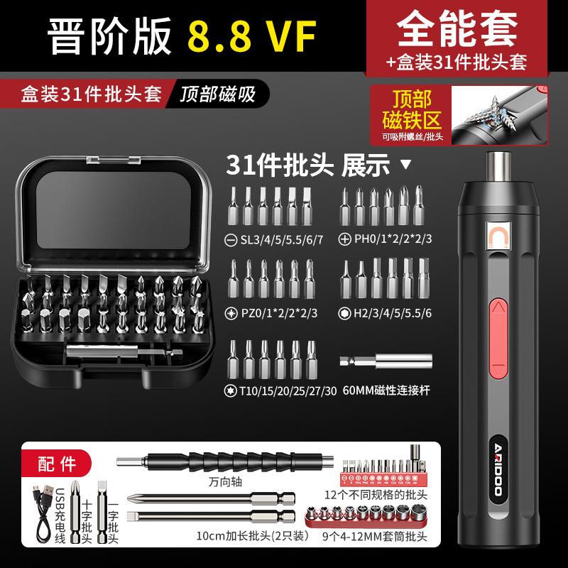 • 고급 버전 8.8Vf [상단 자기 흡입] 만능 세트 (박스형 31 피스 배치 세트)