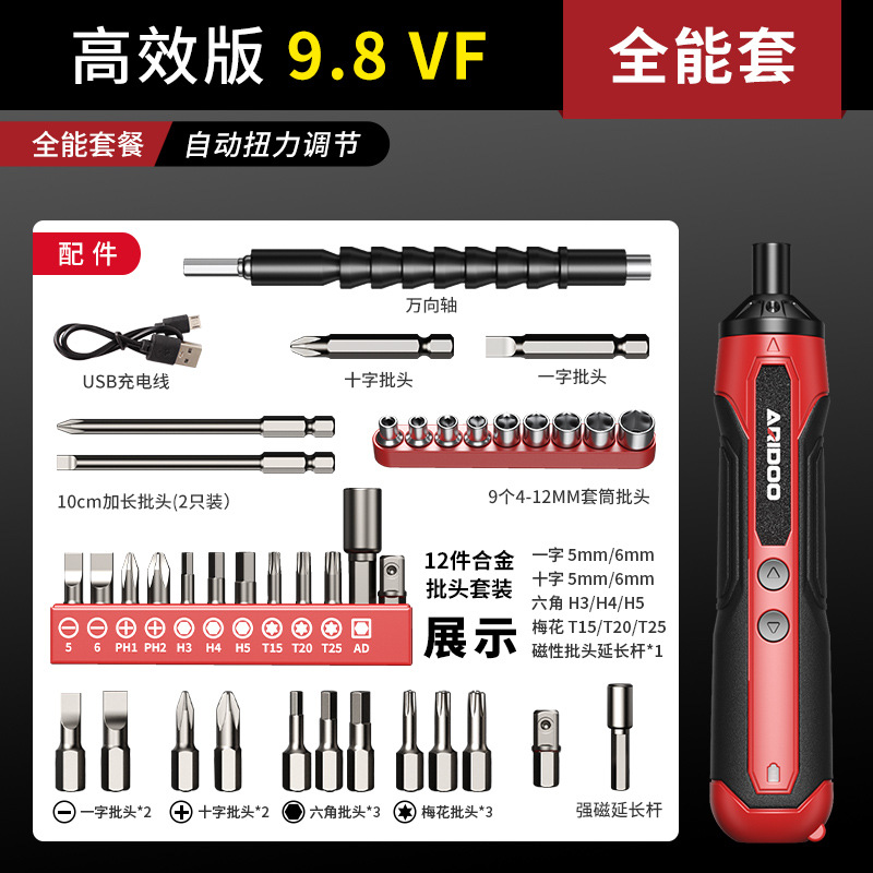 • 고효율 버전 9.8Vf [자동 토크 조정] 만능 세트 + 30 배치 헤드 기어