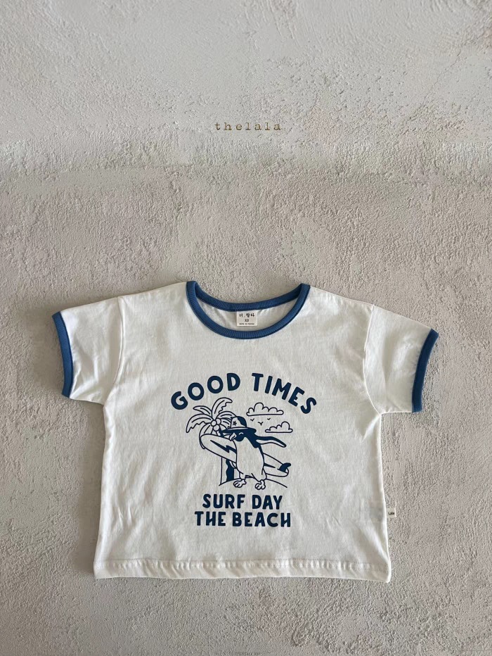 한국 스타일 여름 신상품 스위프 서핑 펭귄 영어 반팔 탑 코튼 편안한 캐주얼 아기 소년과 소녀스토어 가기