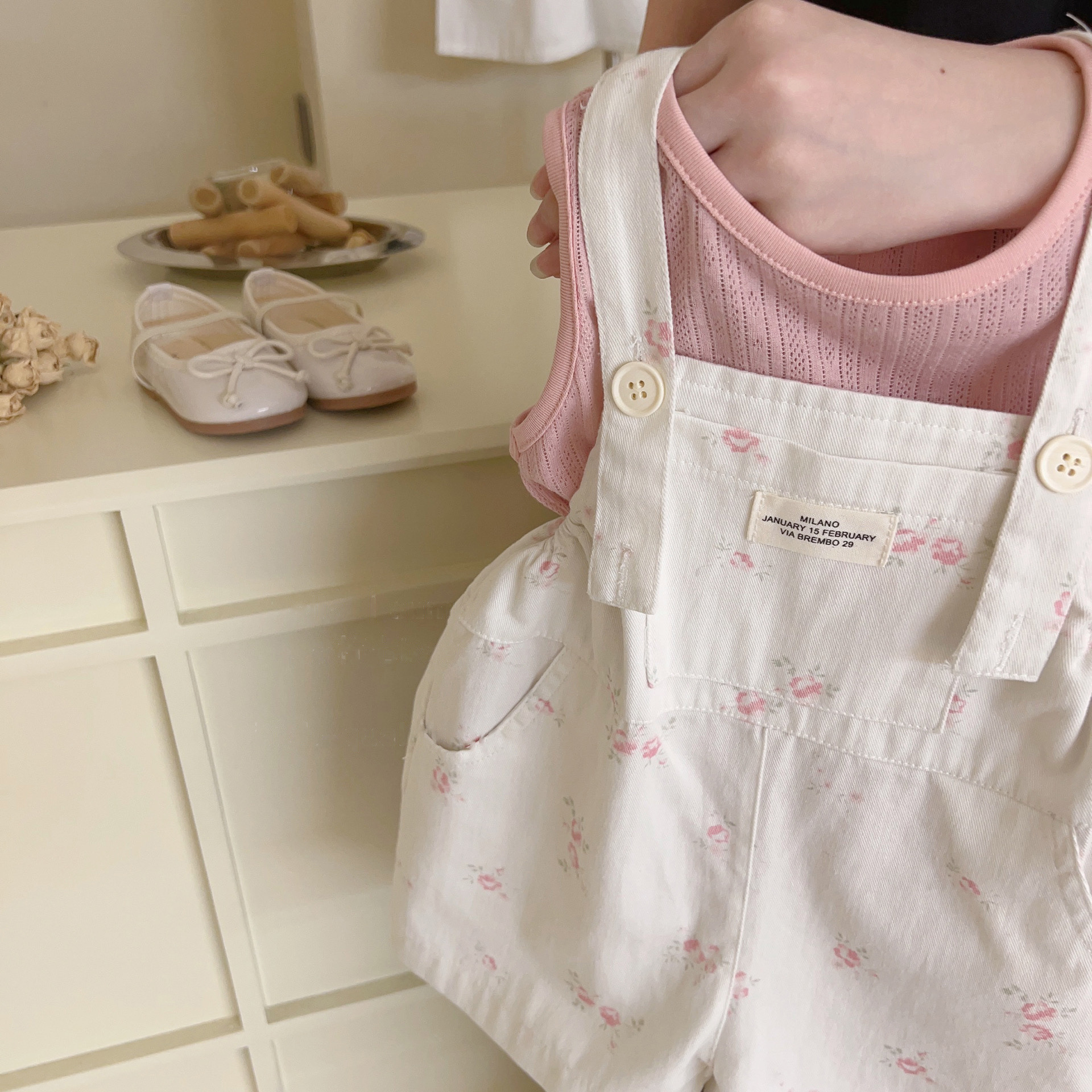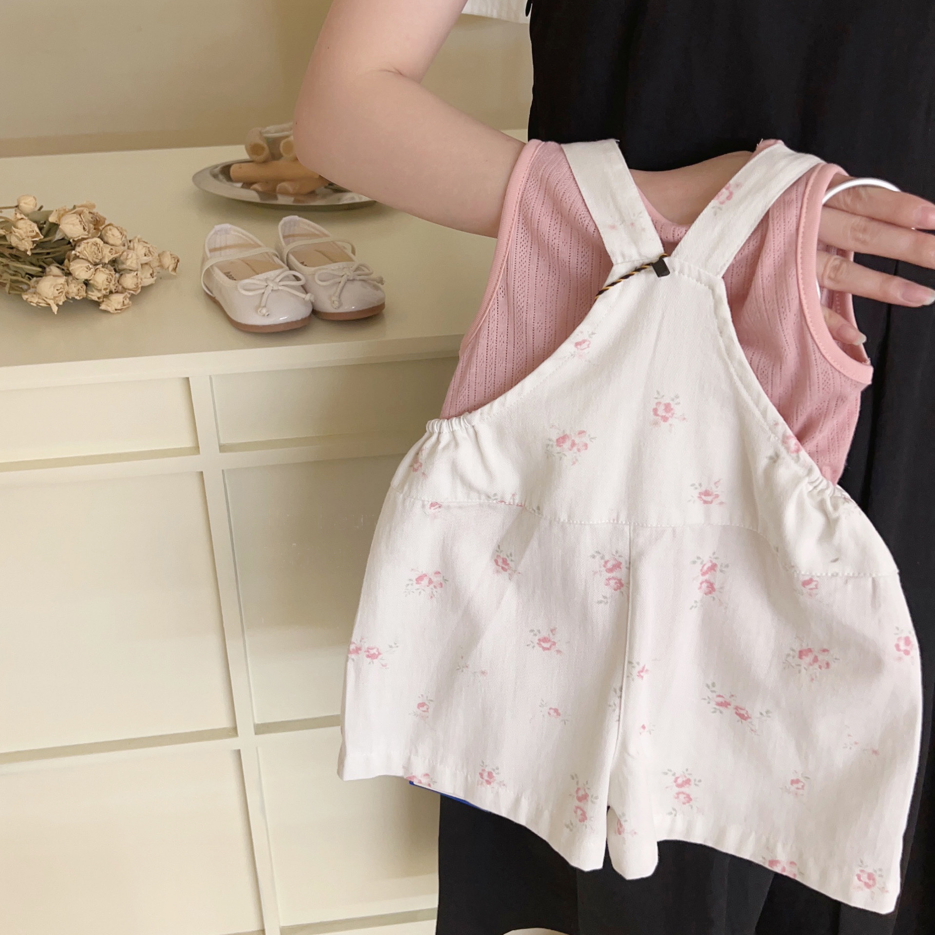 한국 스타일 아동복 소녀 여름 정장 2025 새로운 유행 조끼 꽃 무늬 서스펜더 반바지 투피스 세트