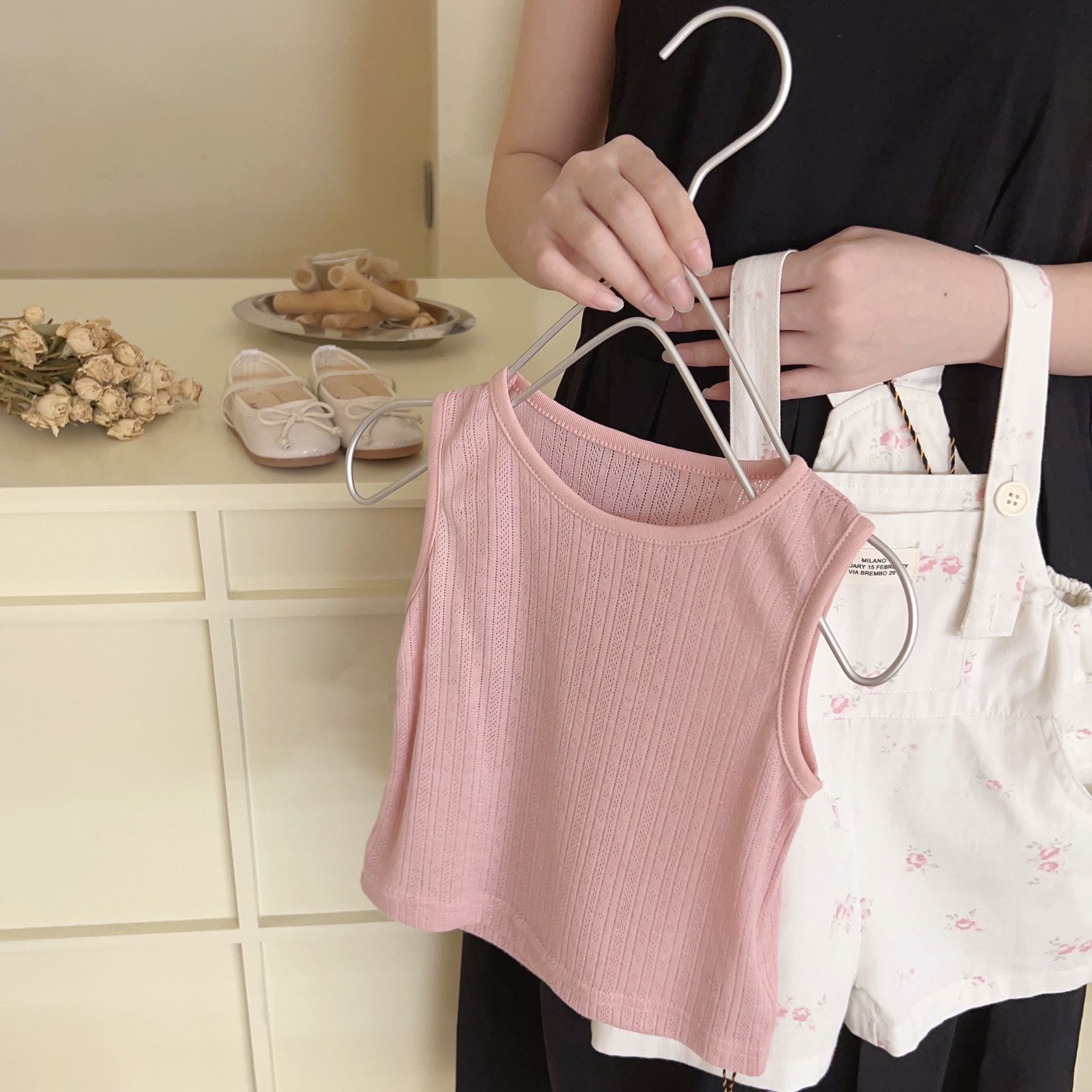 한국 스타일 아동복 소녀 여름 정장 2025 새로운 유행 조끼 꽃 무늬 서스펜더 반바지 투피스 세트스토어 가기