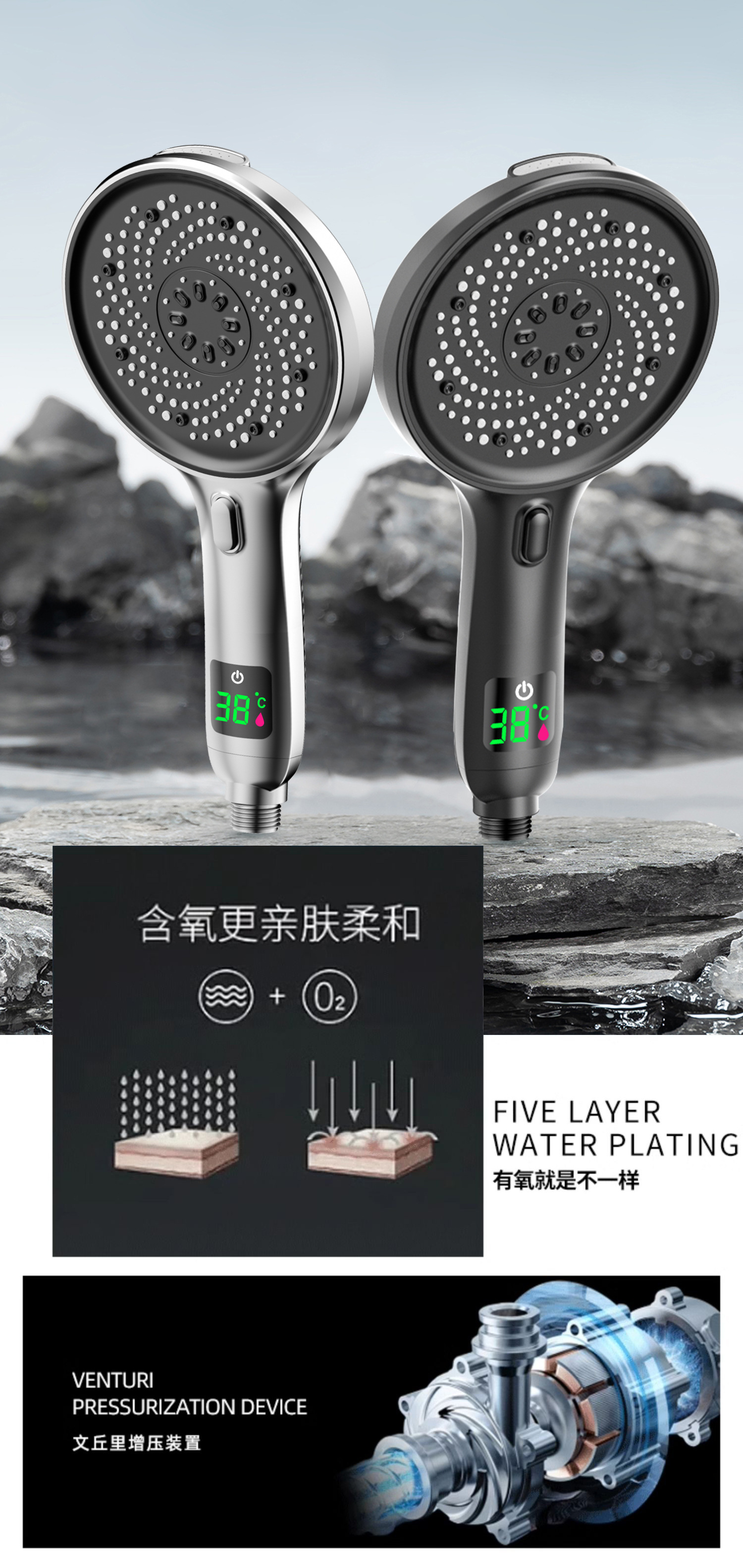• 25가지 디지털 표시 나선형 샤워기 - 실버