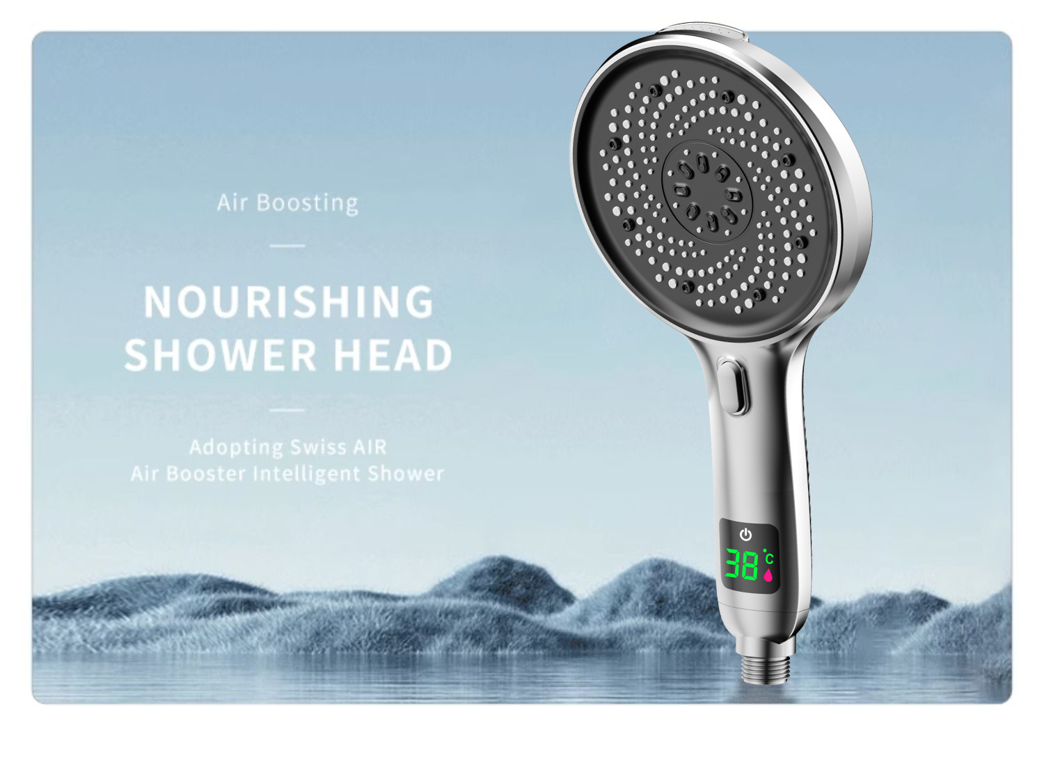 • 25가지 디지털 나선형 샤워기 헤드 - 블랙