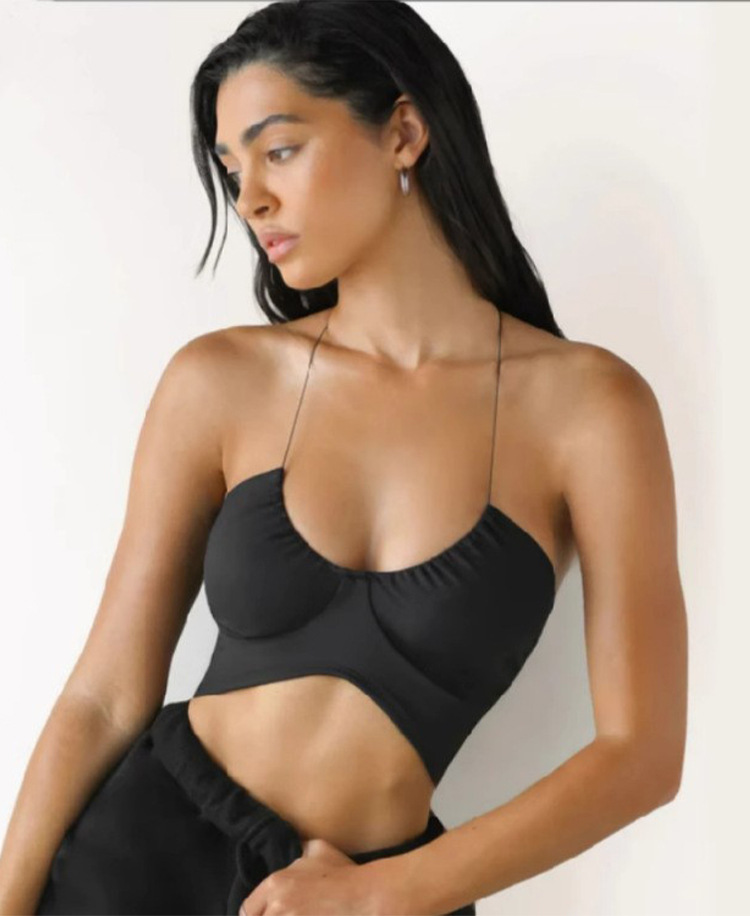 크로스 보더 새로운 피트니스 스포츠 섹시한 뷰티 백 재킷 여성용 요가 의류 교수형 목 멜빵 댄스 가슴 한 세대의 머리카락을 감싸십시오.스토어 가기