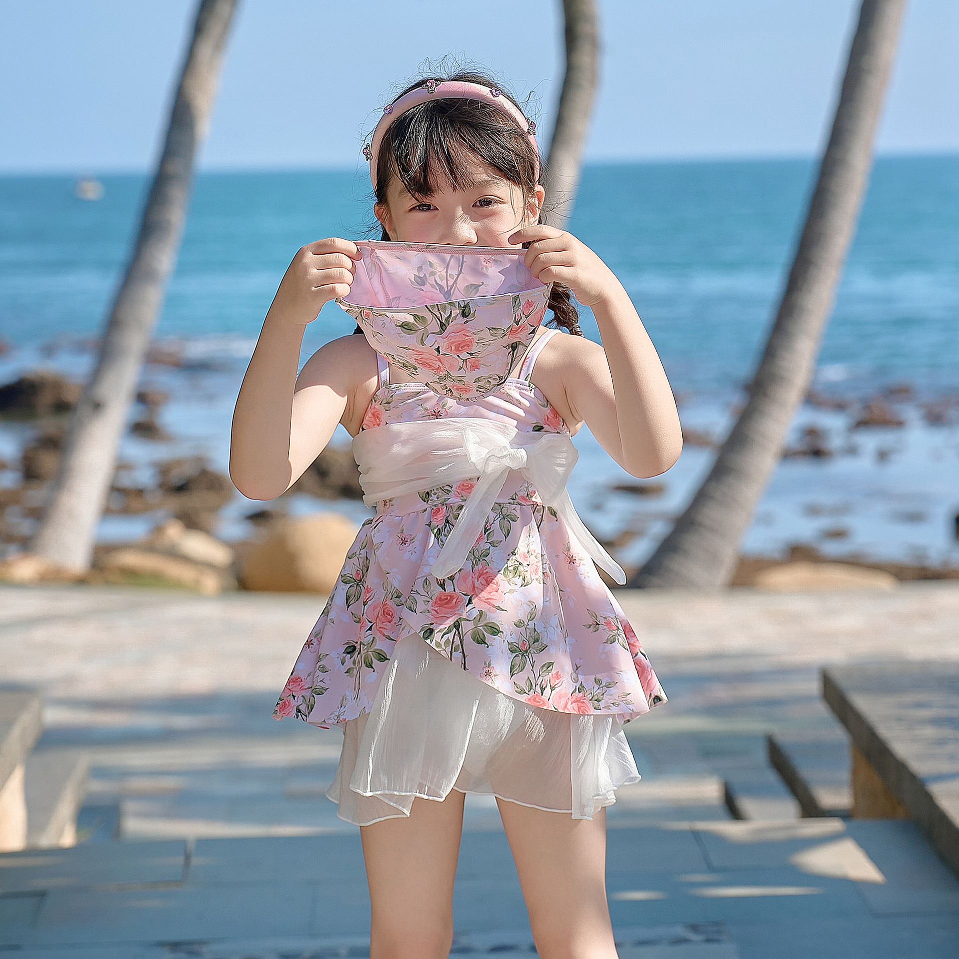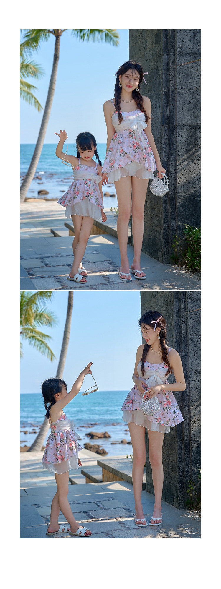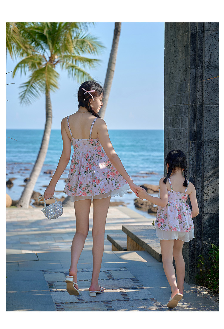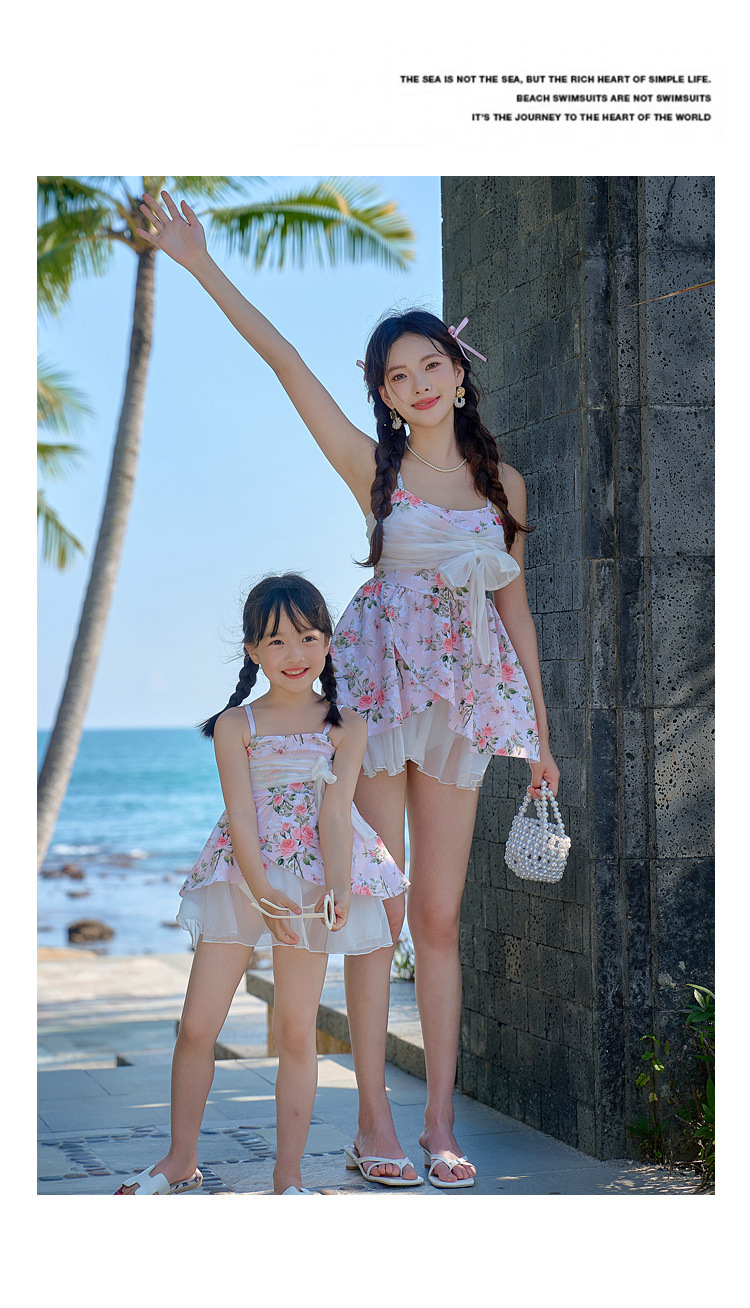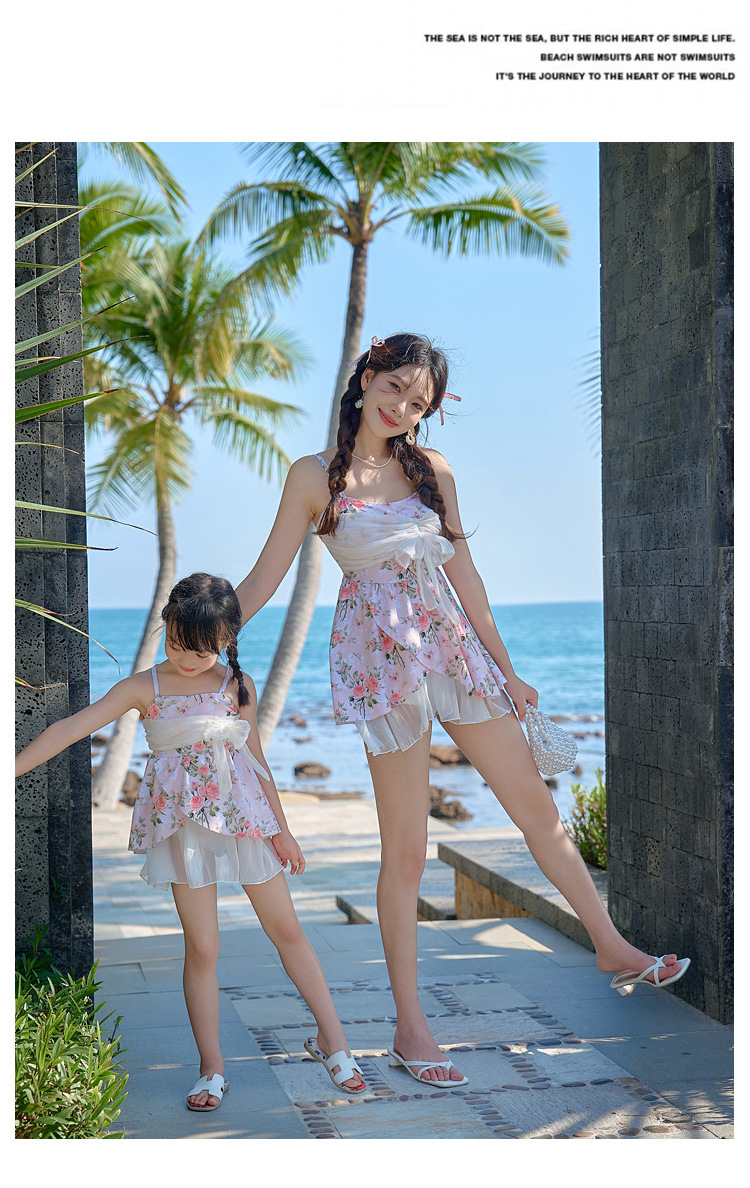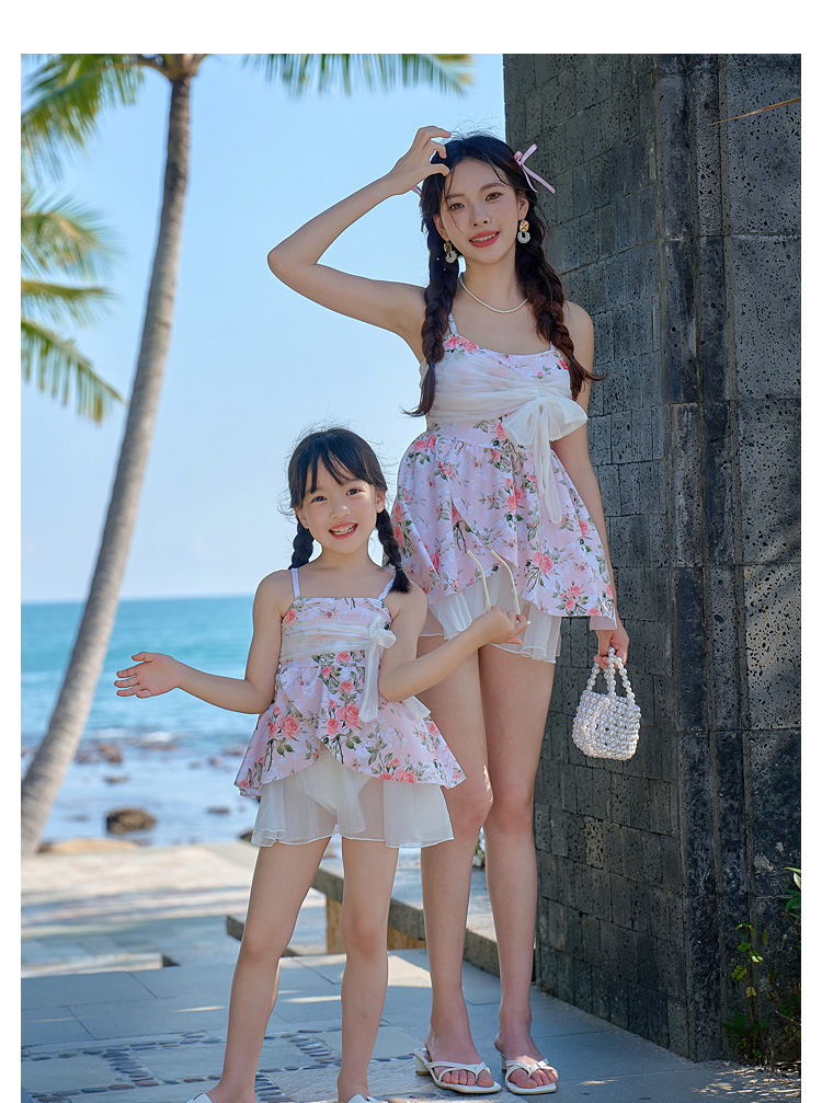 2023 새로운 부모-자식 수영복 어머니-딸 원피스 스커트 보수적 인 슬림하고 귀여운 대형 어린이 온천 부모-자식 수영복스토어 가기