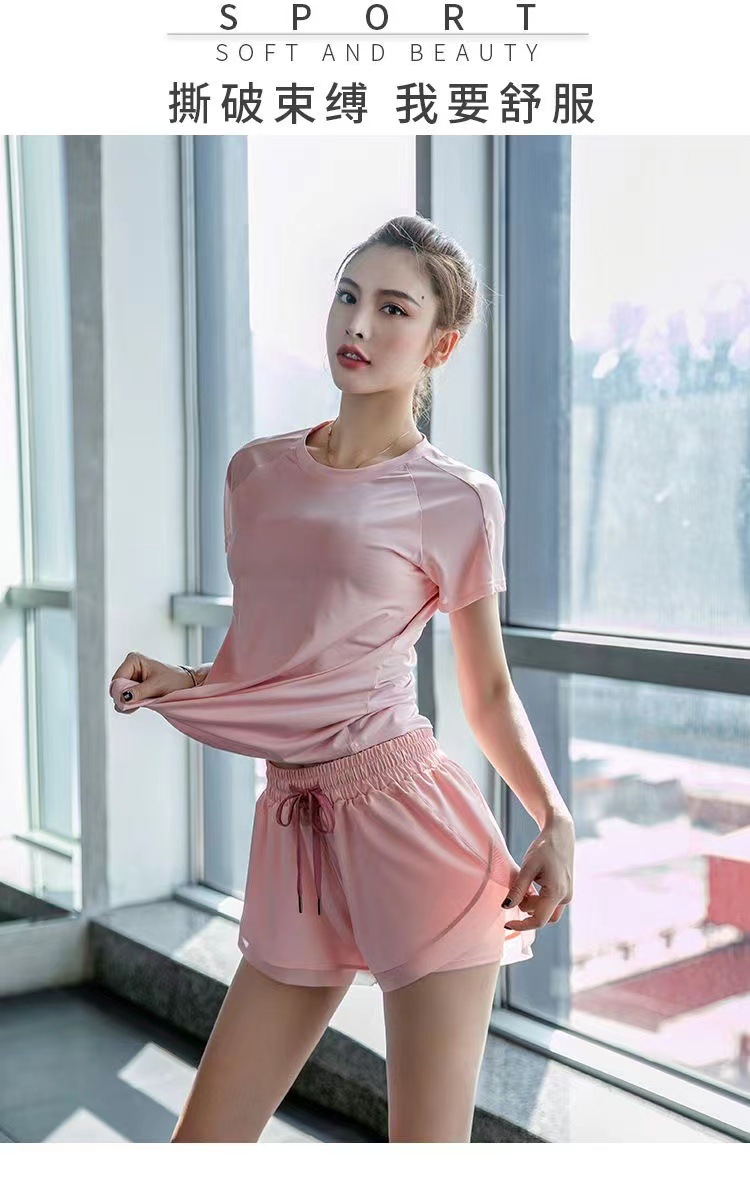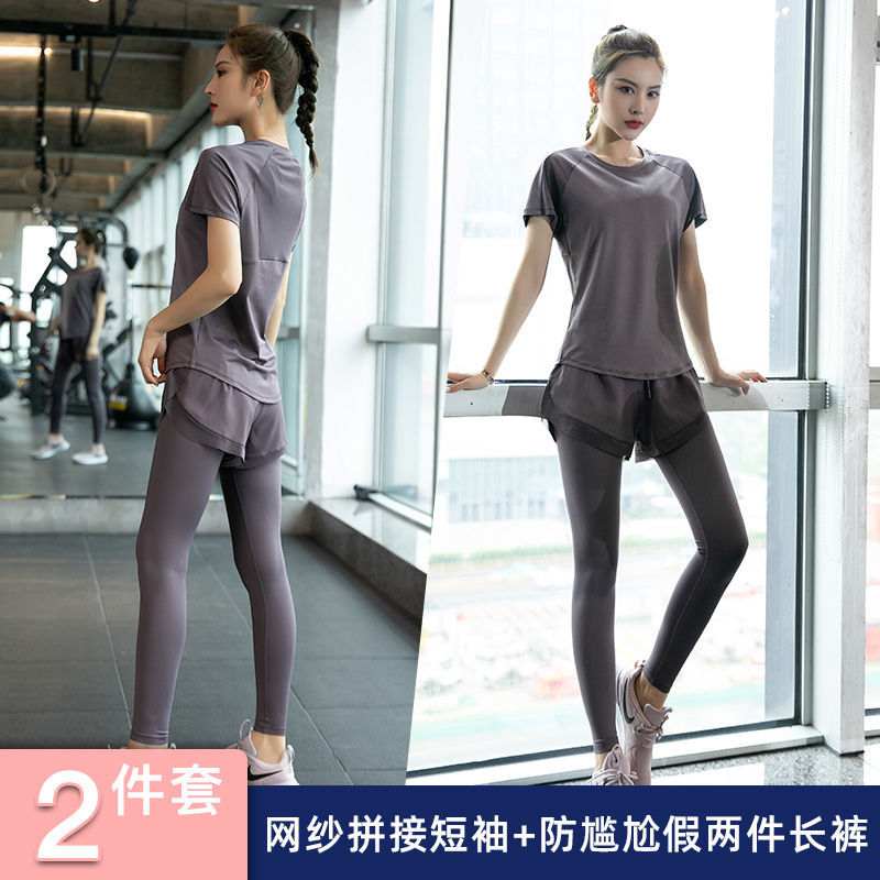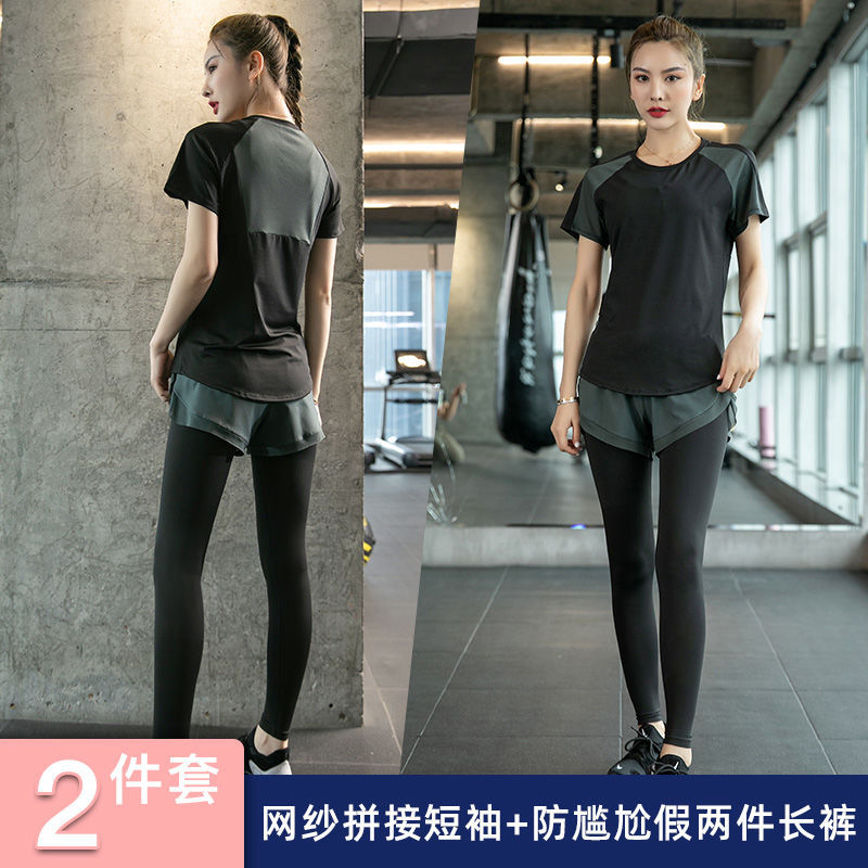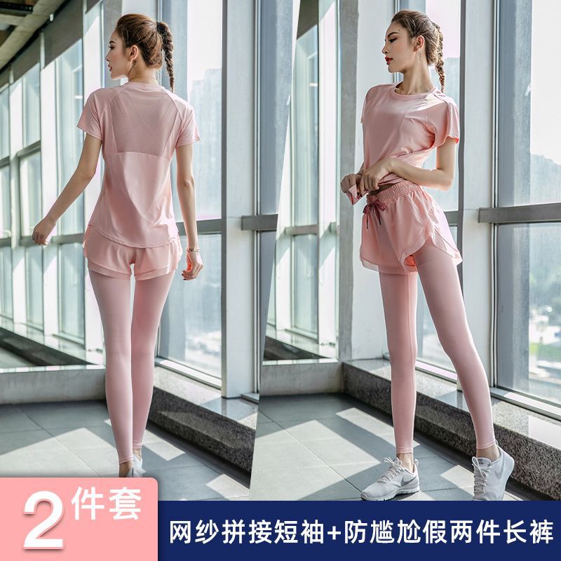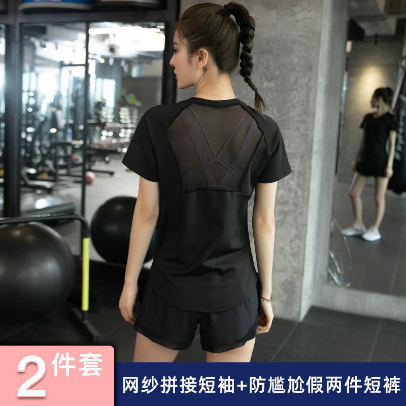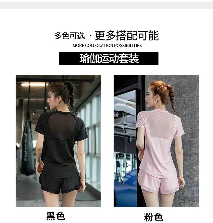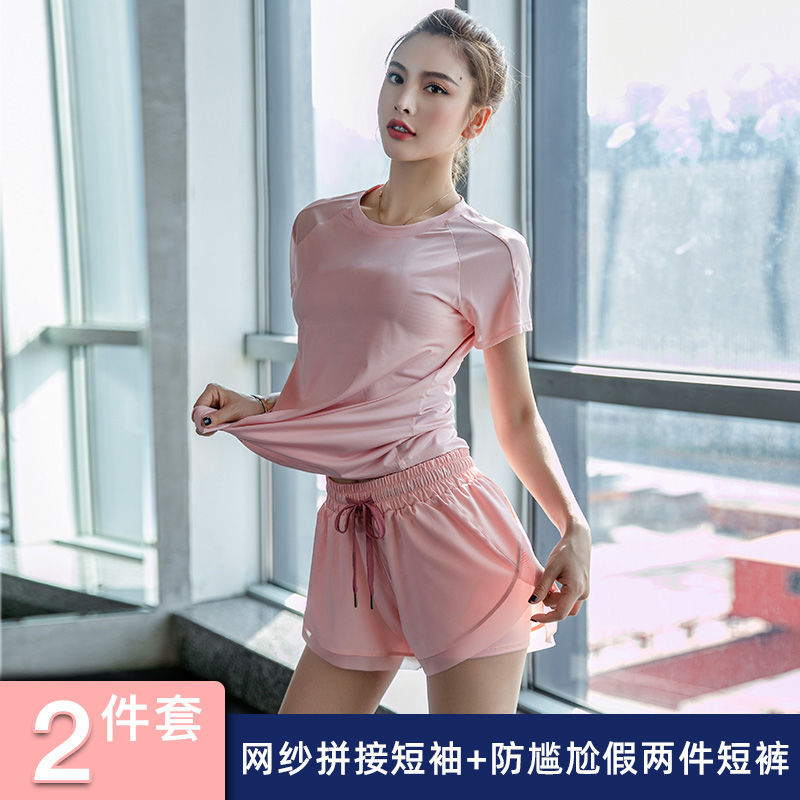 세트 실행 여성의 아침 실행 여름 새로운 요가 의류 여성의 피트니스 의류 탄성 느슨한 얇은 통기성 속건 의류 여성용