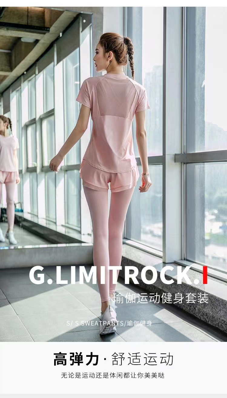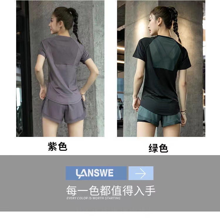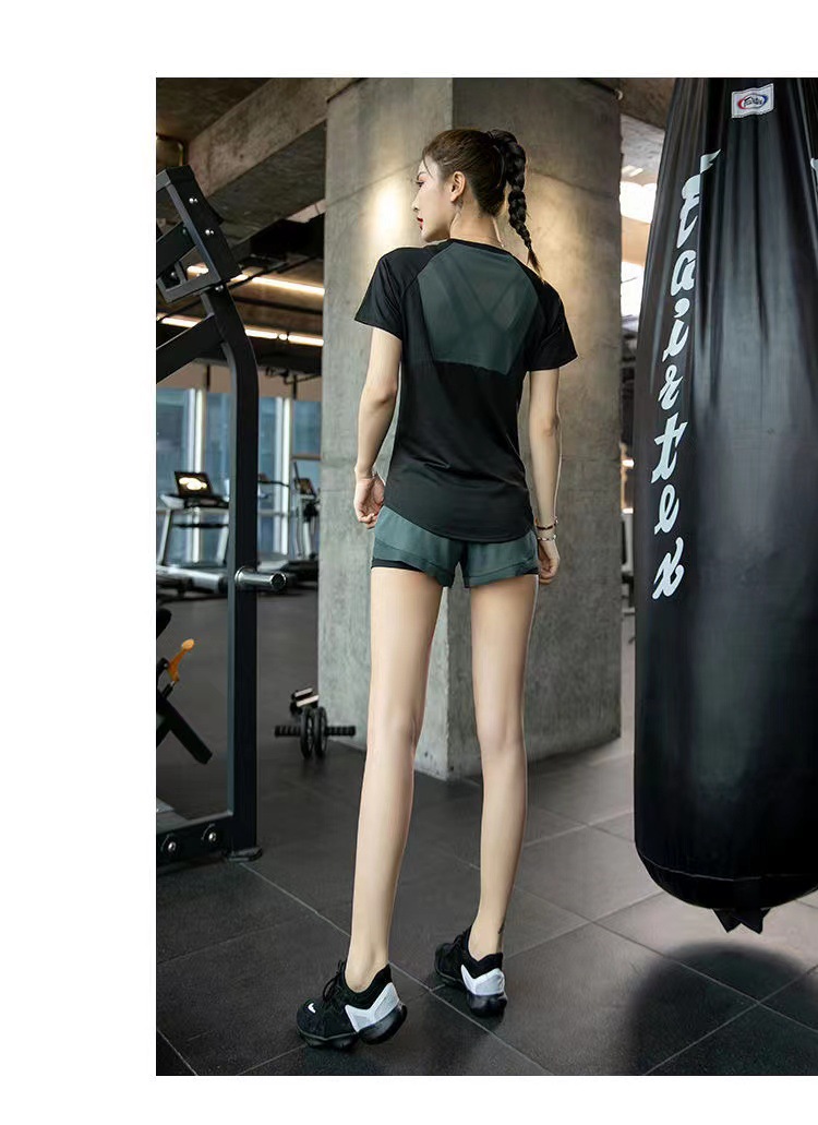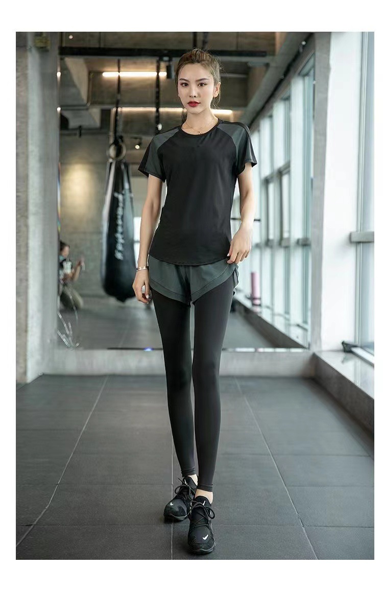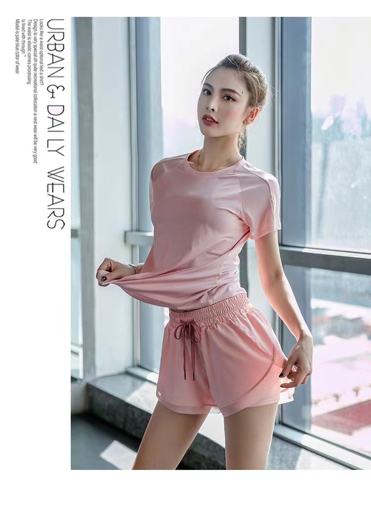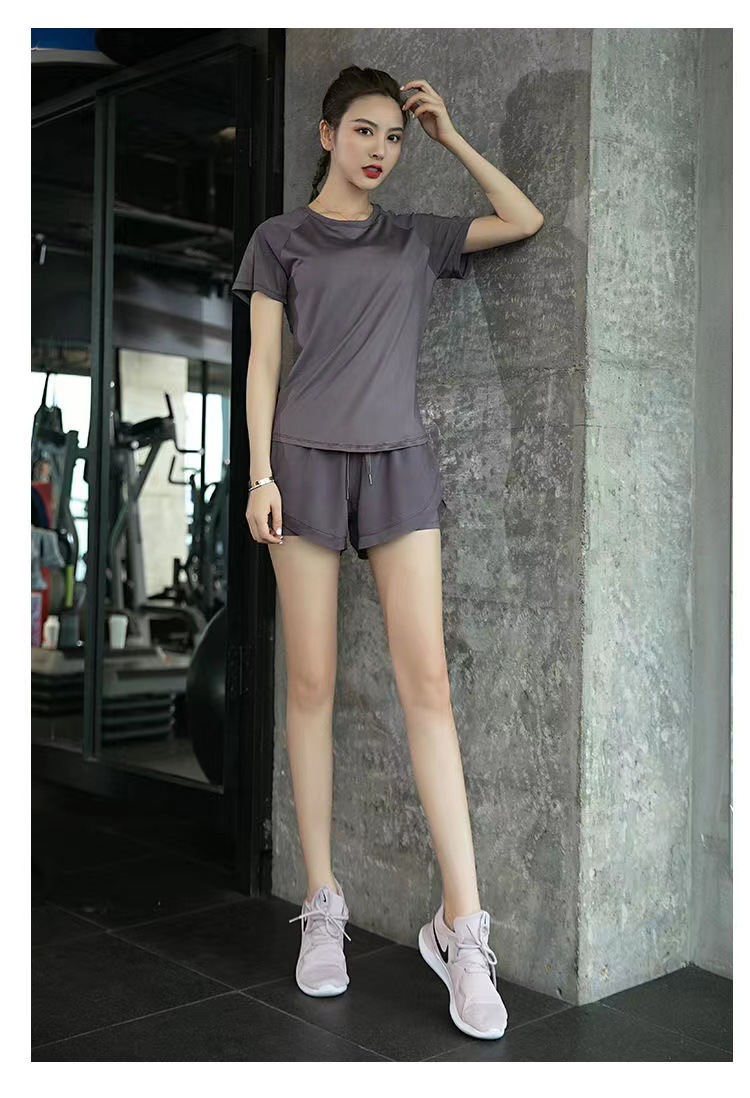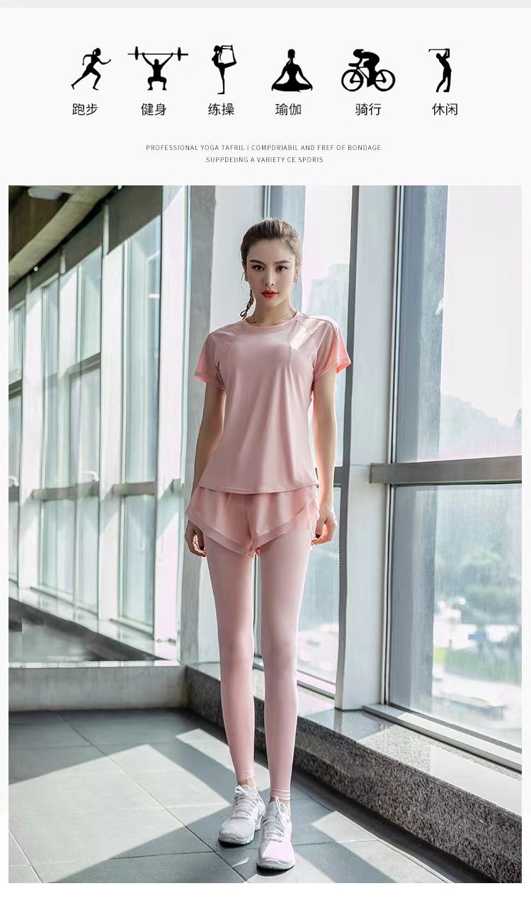 세트 실행 여성의 아침 실행 여름 새로운 요가 의류 여성의 피트니스 의류 탄성 느슨한 얇은 통기성 속건 의류 여성용