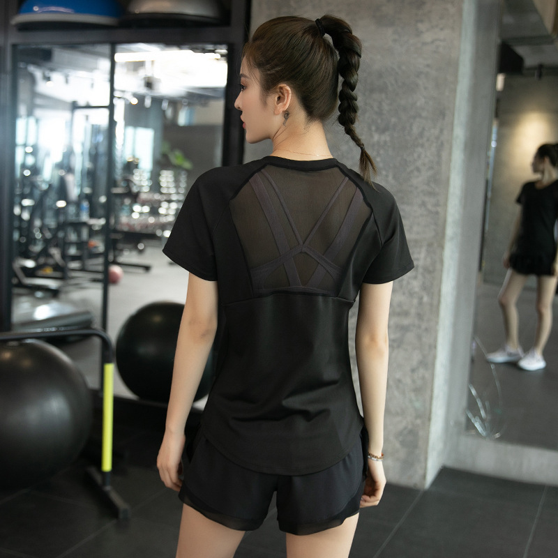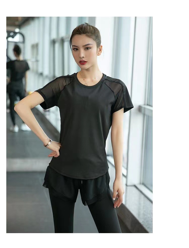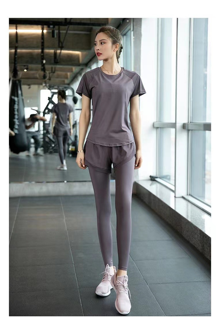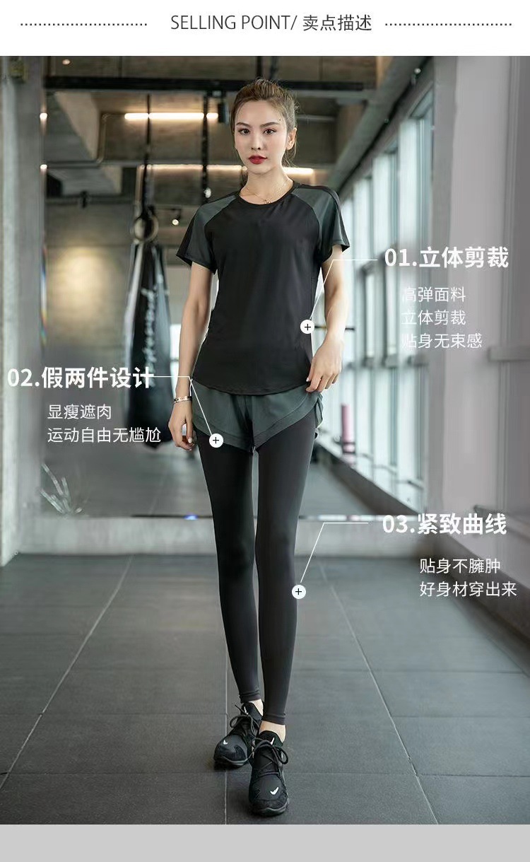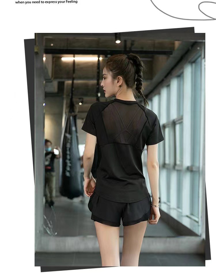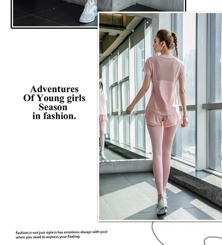 세트 실행 여성의 아침 실행 여름 새로운 요가 의류 여성의 피트니스 의류 탄성 느슨한 얇은 통기성 속건 의류 여성용