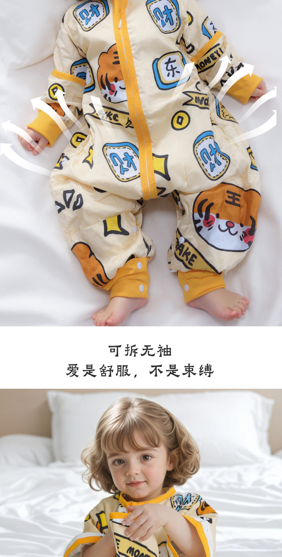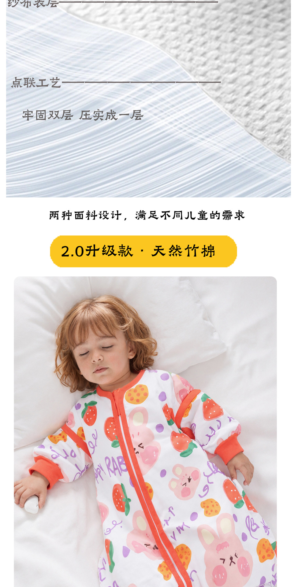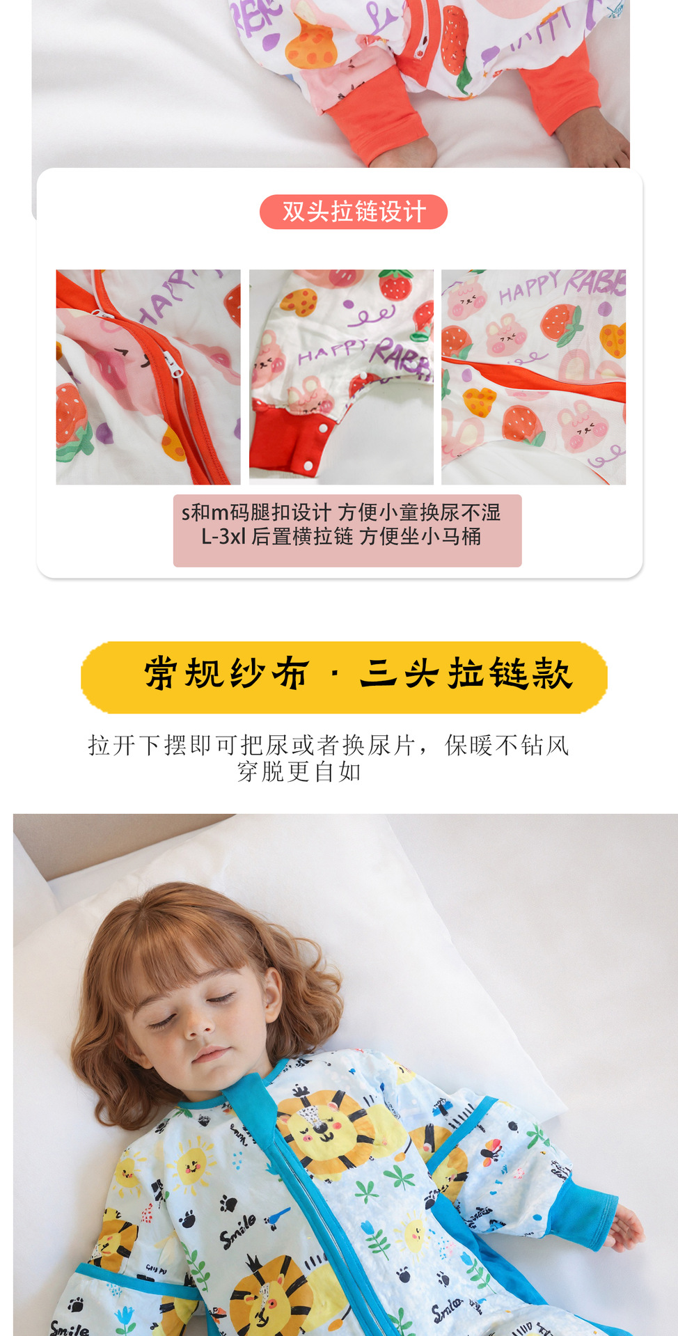 纯棉(没有备注竹棉的都是纯棉):百分百纯棉纱布,三头竖拉链设计