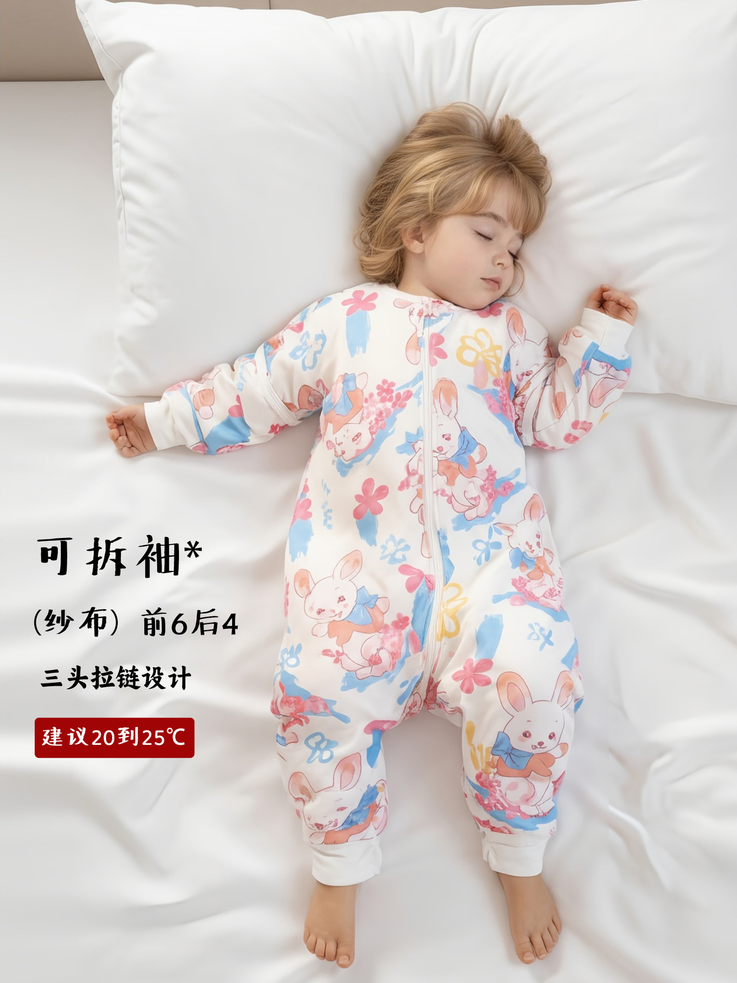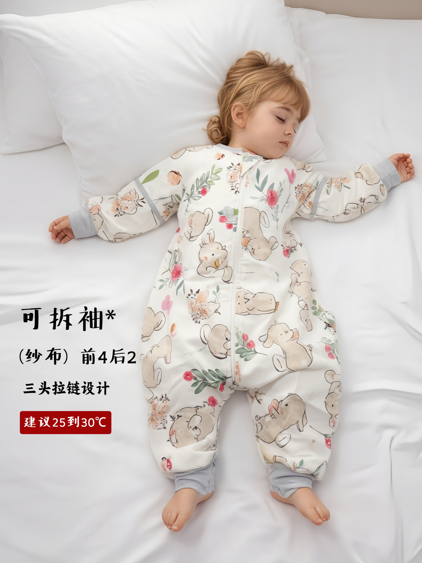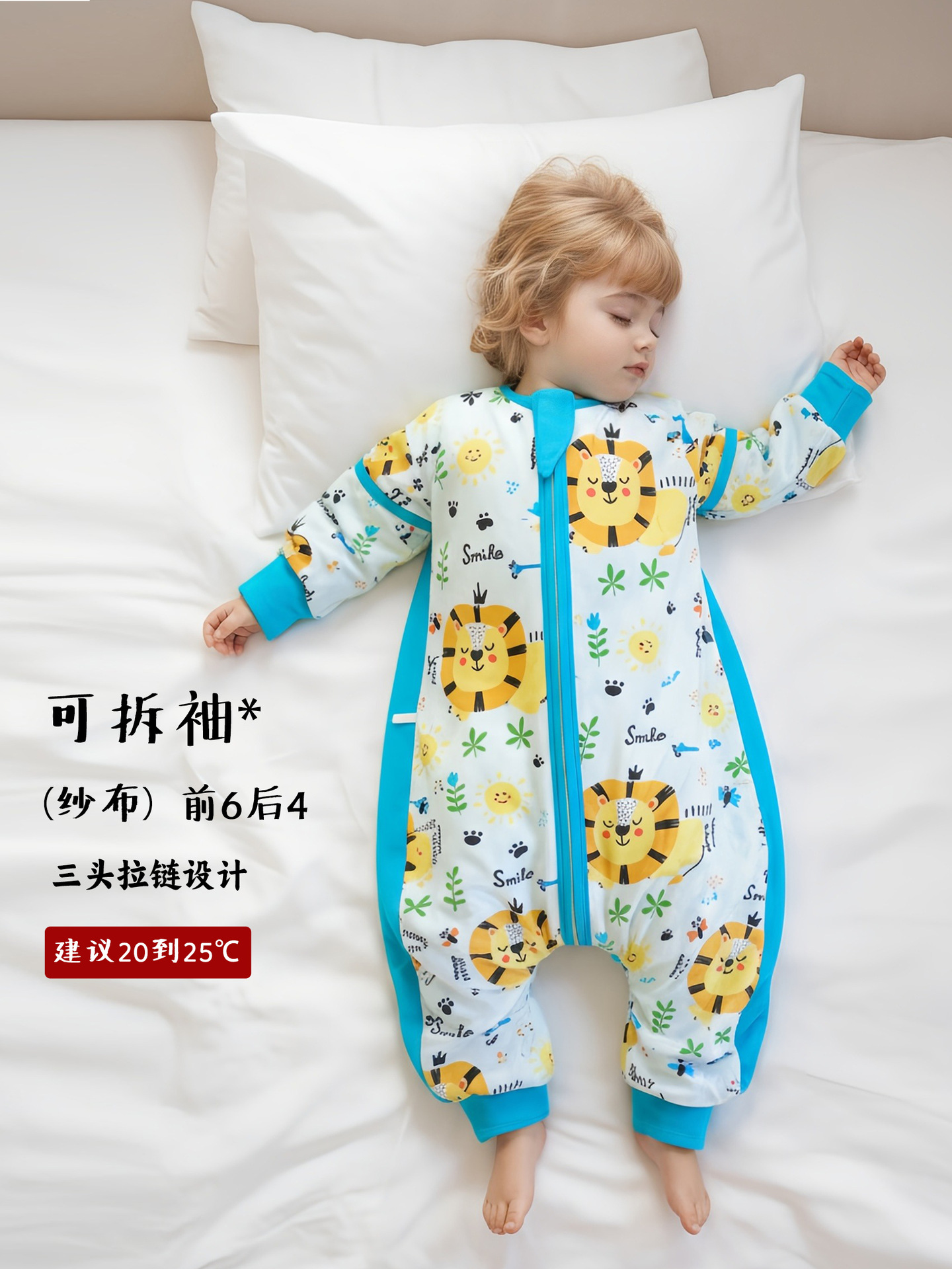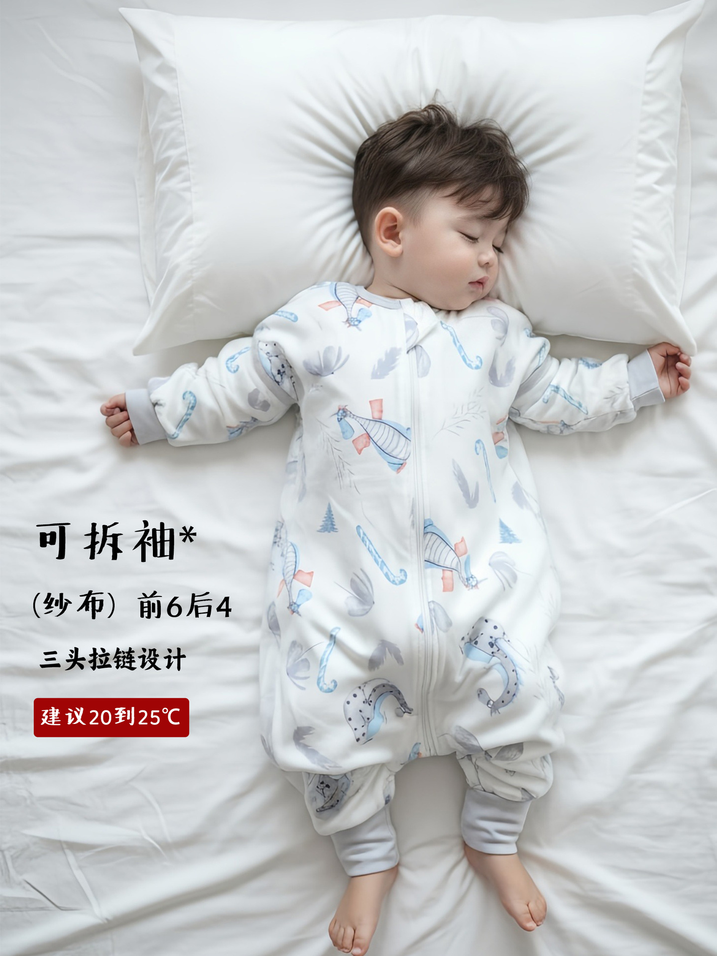纯棉(没有备注竹棉的都是纯棉):百分百纯棉纱布,三头竖拉链设计