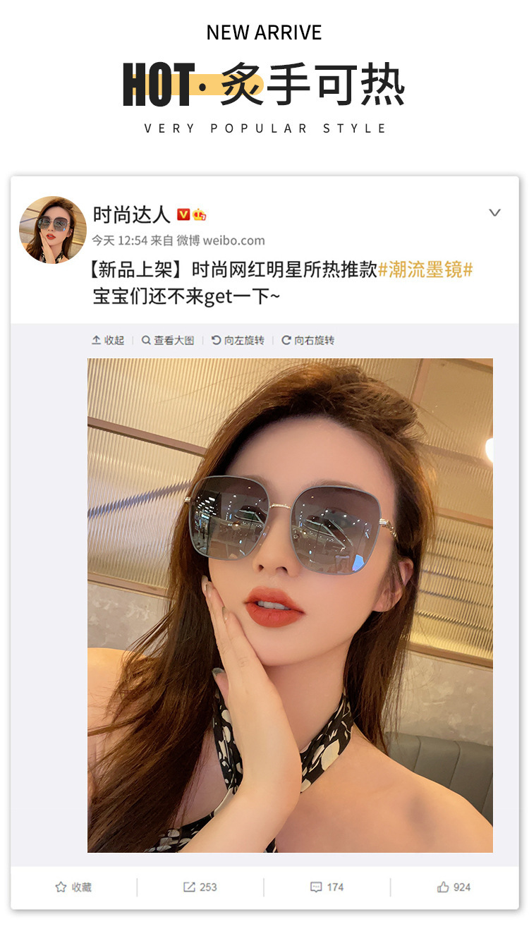 2023 새로운 인터넷 축하 같은 스타일 관대 한 프레임 여성용 자외선 차단 선글라스 패션 야외 여행 선글라스 트렌디스토어 가기