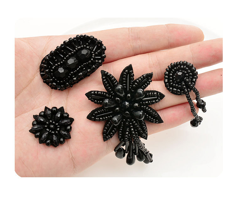 수제 구슬 블랙 간단한 구슬 튜브 꽃 잎 별 스몰 사이즈 천 스티커 옷 바지 장식 구멍 패치스토어 가기