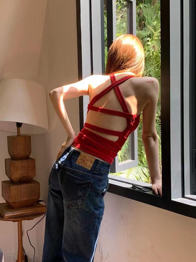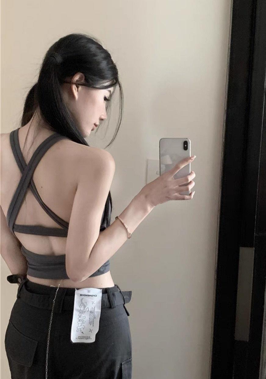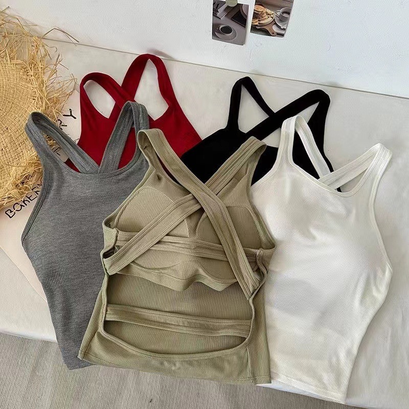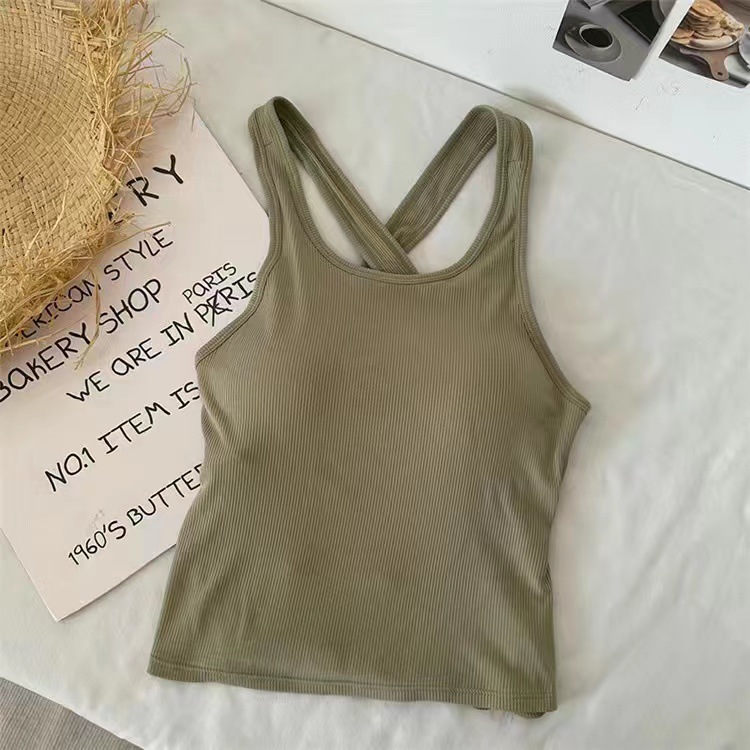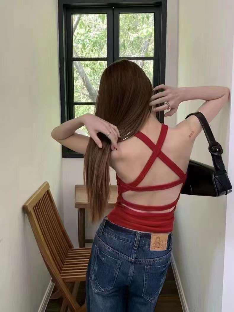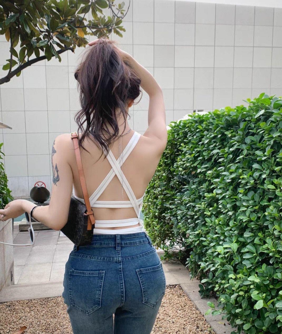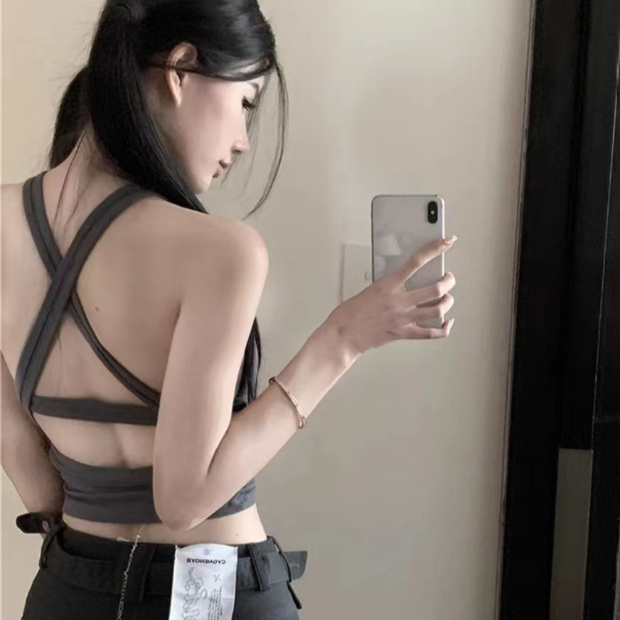 가슴 패드가 있는 홀터넥 캐미솔 여성 여름 디자인 감각 있는 니치 스타일 이너웨어 숏탑 외출복스토어 가기