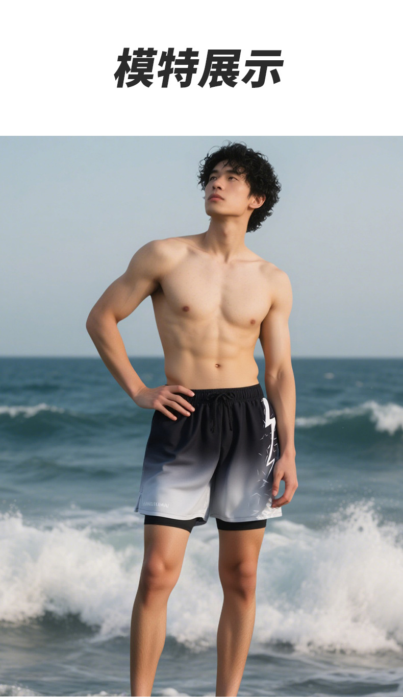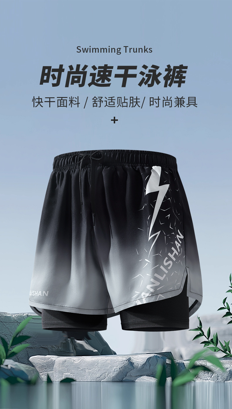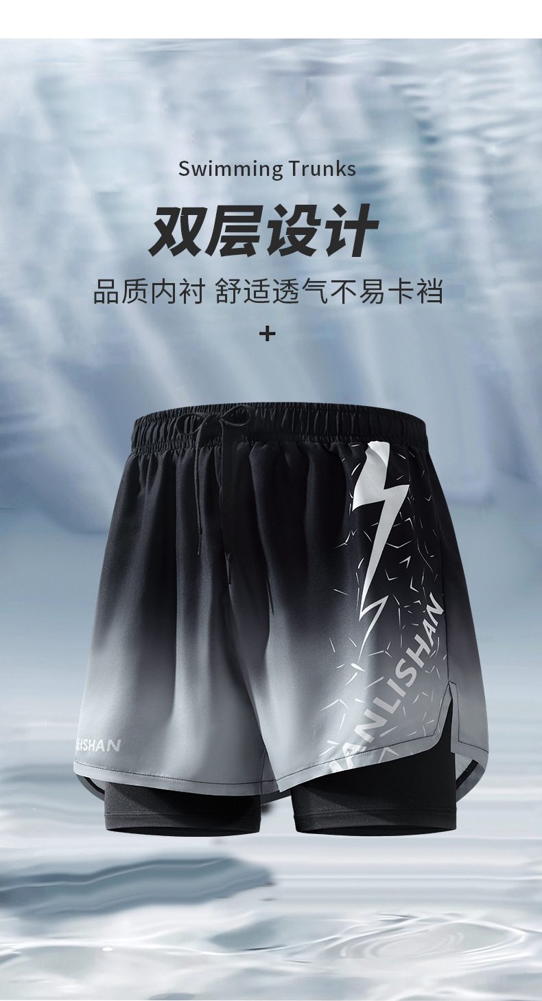 남자의 가짜 두 조각 더블 레이어 속건 수영 트렁크 플러스 사이즈 통기성 안티 당황 수영 트렁크 새로운 느슨한 수영 스포츠 트렁크스토어 가기